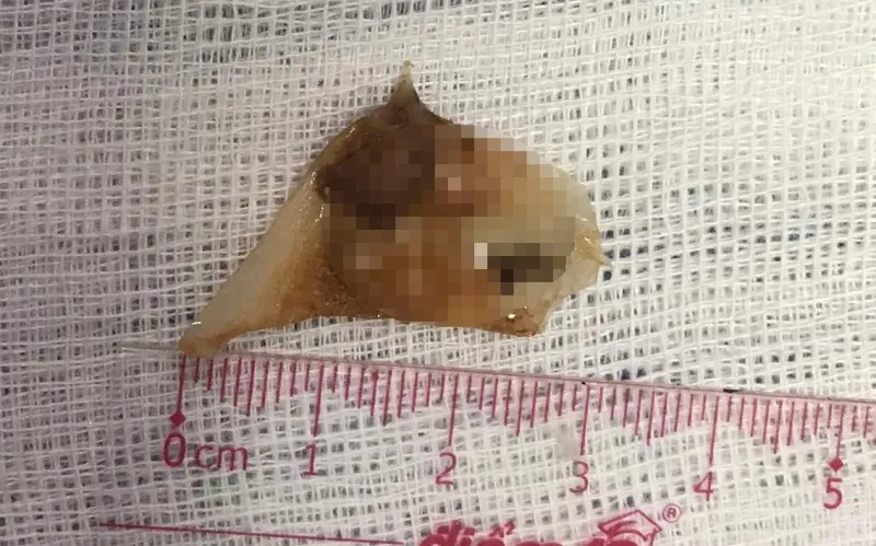 Tại bệnh viện, sau khi tiến hành thăm khám và khai thác thông tin kỹ lưỡng, các bác sĩ đã ra chỉ định nội soi và phát hiện dị vật thực quản đoạn 1/3 dưới, loét nông niêm mạc thực quản tại vị trí dị vật kẹt, loét nông đoạn 2/3 trên thực quản, có ít mủ ở một cạnh xương nhọn đâm.