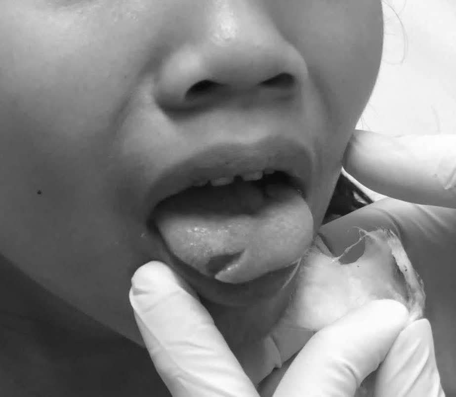 Nghỉ hè, trong lúc nô đùa cùng bạn, bé gái 7 tuổi nghịch kéo cắt vào lưỡi, phải đi viện cấp cứu.
