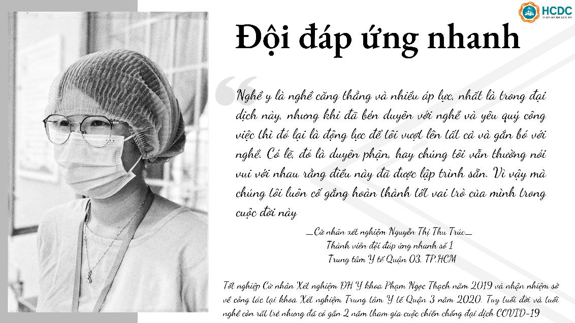 Hãy cùng nhau đọc những lời nhắn gửi của đội đáp ứng nhanh thuộc TTYT Quận 3 đến chúng ta. Mọi người có thể chia sẻ câu chuyện của mình qua dự án của chúng tôi “Chia sẻ câu chuyện của tôi trong đại dịch COVID-19” qua đường link sau: https://forms.gle/FJ4JaSgVy99z8Uub7