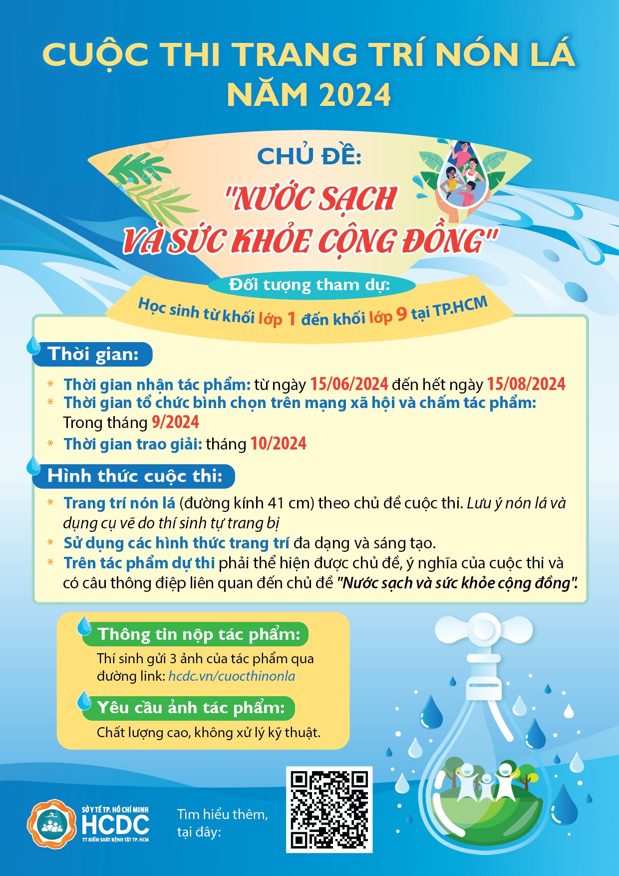 Cuộc thi chào đón các bạn học sinh từ lớp 1 đến lớp 9 trên địa bàn Thành phố Hồ Chí Minh. Đây là cuộc thi do Trung tâm Kiểm soát bệnh tật Thành phố tổ chức nhằm nâng cao nhận thức của cộng đồng về tầm quan trọng của nước sạch và vệ sinh môi trường đối với sức khỏe. Đồng thời khuyến khích sự sáng tạo, khích lệ khả năng nghệ thuật và tạo sân chơi bổ ích dành cho học sinh.