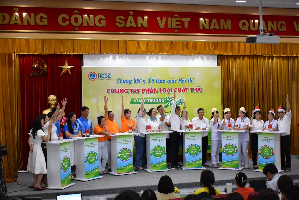 Hội thi “Chung tay phân loại chất thải – Vì môi trường xanh” là hoạt động do HCDC tổ chức, phát động từ ngày 25/8/2025. Sau gần hai tháng triển khai, hội thi đã nhận được sự hưởng ứng nhiệt tình của 33 đơn vị, bao gồm các Bệnh viện và Trung tâm Y tế khu vực trên địa bàn Thành phố Hồ Chí Minh. Vòng 1 là phần thi trắc nghiệm lý thuyết được tổ chức trực tiếp vào ngày 9/10/2025 đã chọn ra 07 đội có điểm số cao nhất bước vào Vòng chung kết “Thực tiễn hành động”.