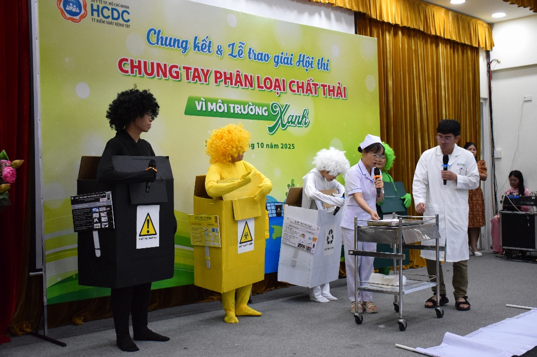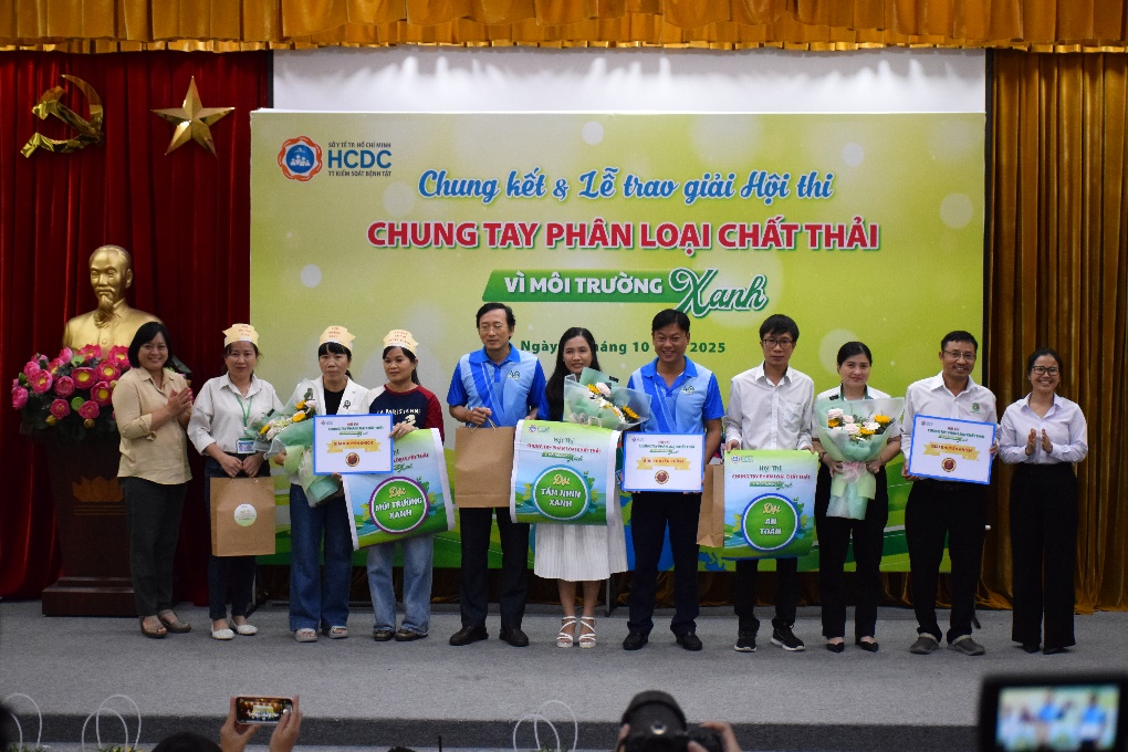 Sáng ngày 28/10/2025, tại Trung tâm Kiểm soát bệnh tật Thành phố Hồ Chí Minh (HCDC) đã tổ chức Vòng chung kết và Lễ trao giải hội thi “Chung tay phân loại chất thải – Vì môi trường xanh” năm 2025. Tham dự chương trình có TS. Vũ Xuân Đán – Phó Giám đốc HCDC, cùng Ban Tổ chức, Ban Giám khảo, đại diện các Bệnh viện, Trung tâm Y tế khu vực và các đội thi vào vòng chung kết. Sự hiện diện của các đơn vị thể hiện tinh thần đồng hành, hưởng ứng mạnh mẽ phong trào chung tay phân loại chất thải đúng quy định trong toàn ngành.