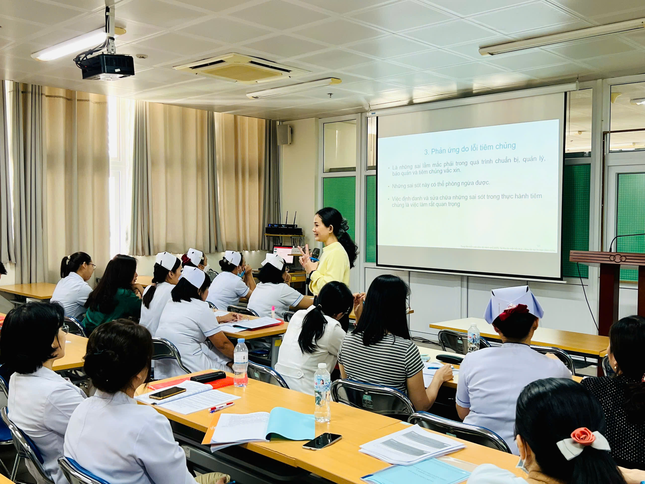 Khi tham gia lớp đào tạo, học viên sẽ được tiếp cận chương trình đào tạo với các nội dung gồm Các quy định về hoạt động tiêm chủng; Vắc-xin và lịch tiêm chủng; Bảo quản và sử dụng dây chuyền lạnh; Khám sàng lọc và chỉ định tiêm chủng; Thực hiện tiêm chủng. Sự cố bất lợi sau tiêm chủng.