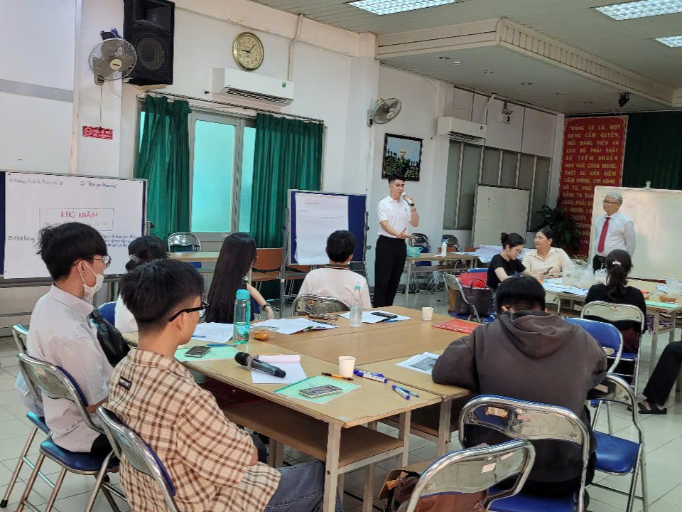 Ảnh: Học viên tham gia trình bày sau phần thảo luận nhóm (Ảnh chụp: Thu Loan)
