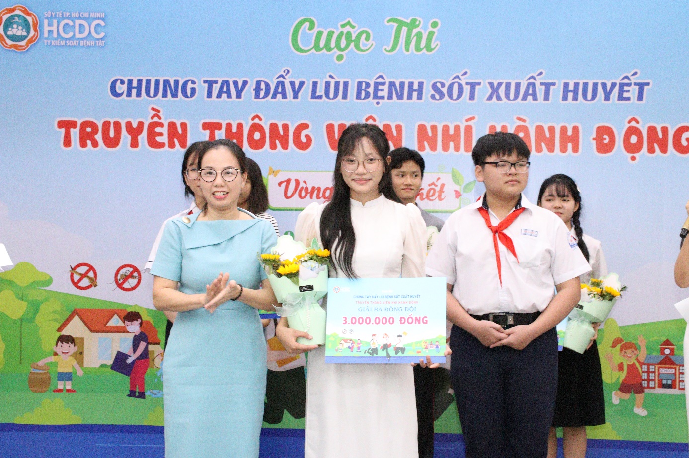 Cuộc thi “Chung tay đẩy lùi bệnh sốt xuất huyết - Truyền thông viên nhí hành động” do Trung tâm Kiểm soát bệnh tật Thành phố Hồ Chí Minh (HCDC) tổ chức đã chính thức bế mạc, ghi nhận và vinh danh những truyền thông viên nhí xuất sắc nhất trong công tác phòng chống sốt xuất huyết.
