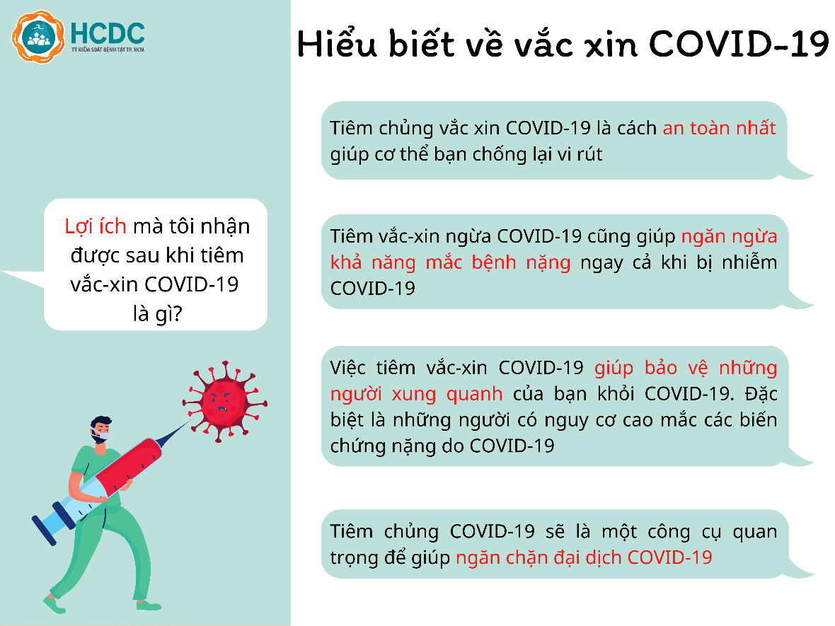 Vắc-xin phòng COVID-19 sẽ phát triển khả năng miễn dịch chống lại vi-rút gây bệnh, giúp giảm số người nhiễm bệnh và làm giảm số trường hợp bị biến chứng nặng do mắc bệnh, giảm nguy cơ tử vong. Tiêm vắc-xin phòng COVID-19 là một trong những biện pháp giúp cuộc sống của chúng ta trở lại bình thường.