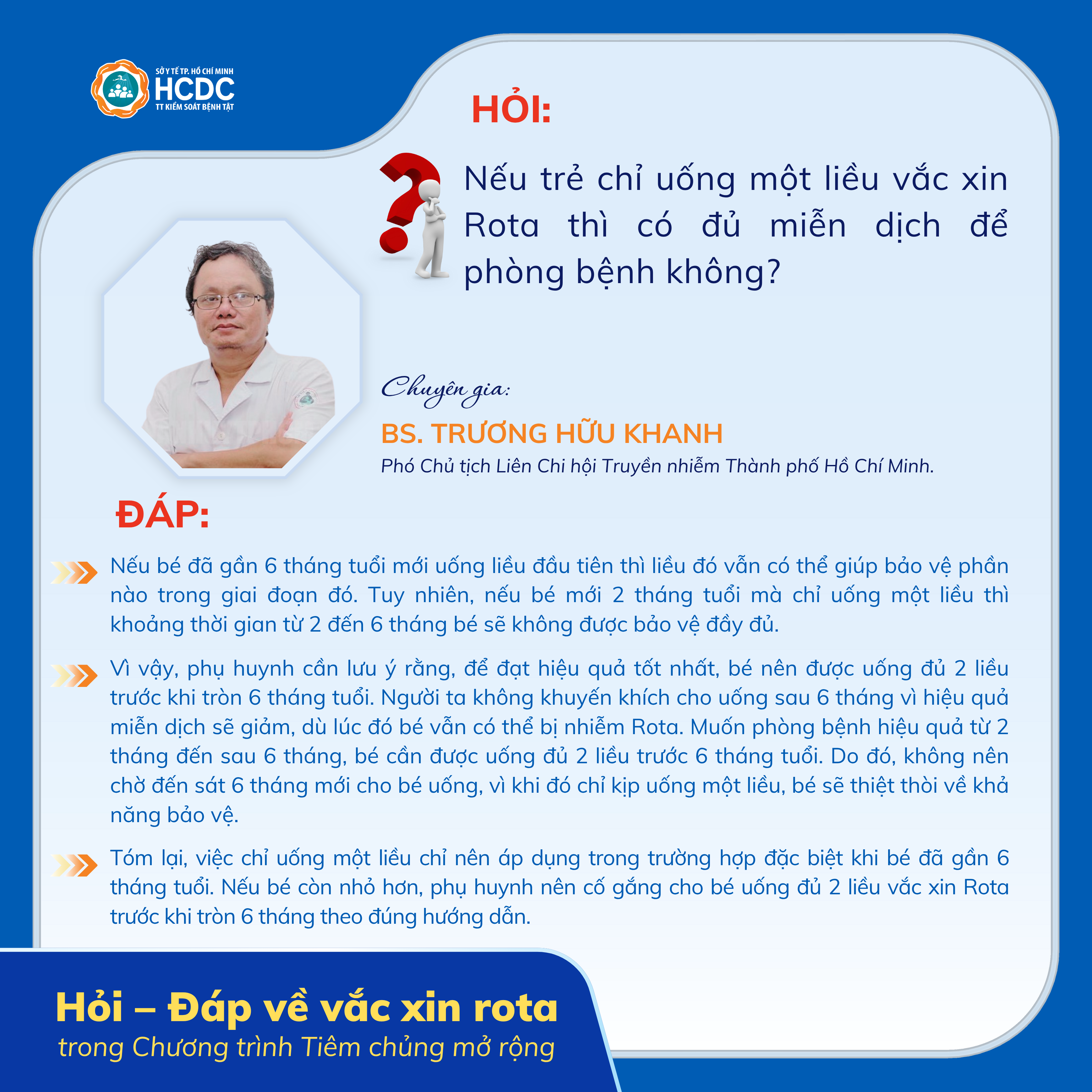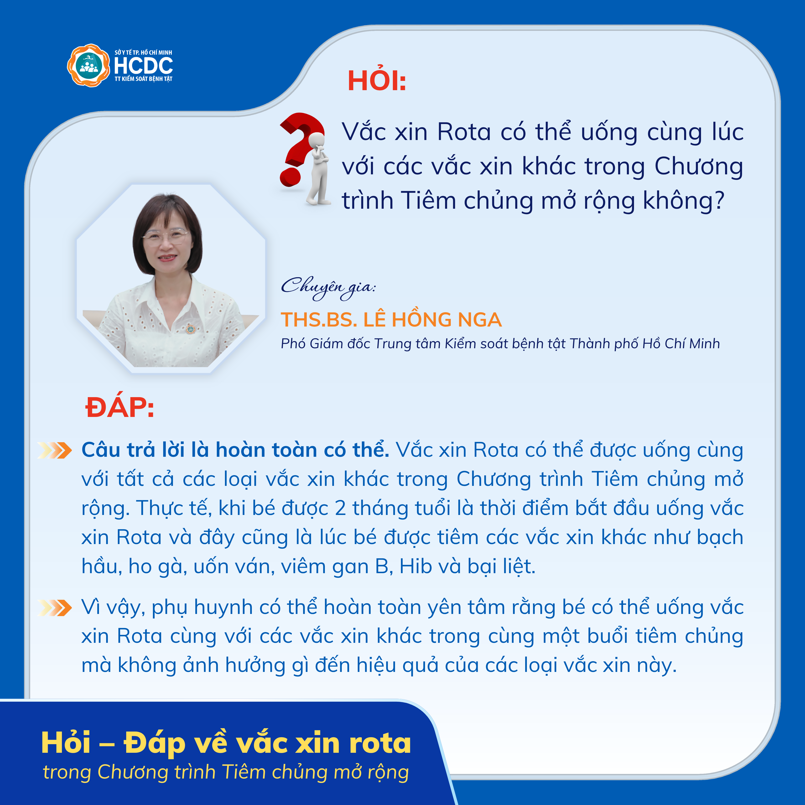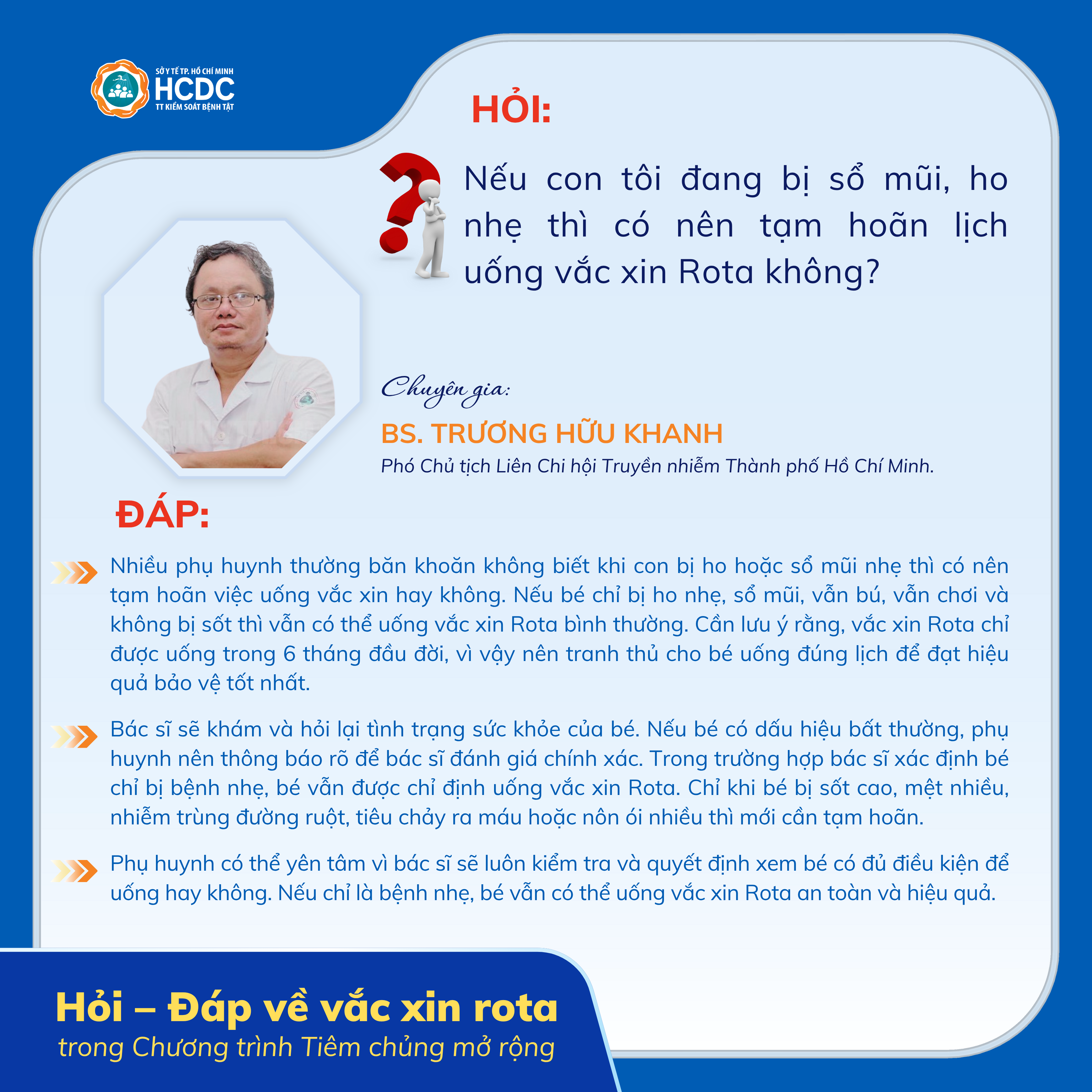 Tọa đàm trực tuyến với chủ đề “Vắc xin Rota: Vì sao có trong Tiêm chủng mở rộng?” do Trung tâm Kiểm soát bệnh tật Thành phố Hồ Chí Minh tổ chức đã thu hút sự quan tâm của đông đảo phụ huynh. Nhiều câu hỏi thiết thực liên quan đến việc uống vắc xin Rota, hiệu quả bảo vệ và những lưu ý khi sử dụng cho trẻ nhỏ đã được gửi đến chương trình.