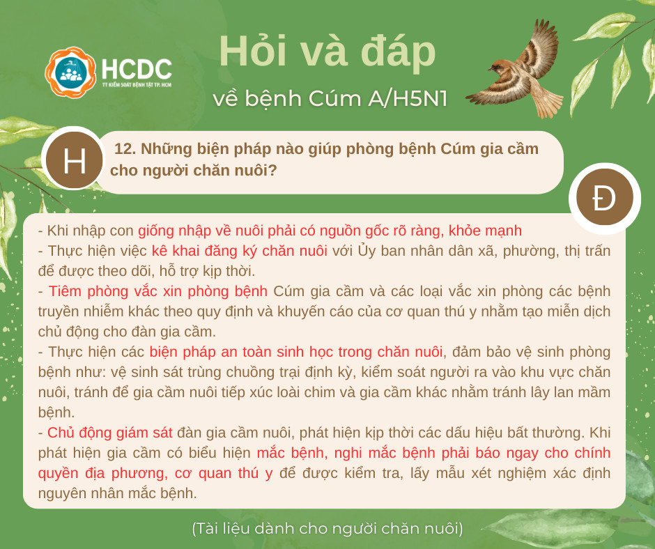 12. Những biện pháp nào giúp phòng bệnh Cúm gia cầm cho người chăn nuôi?
