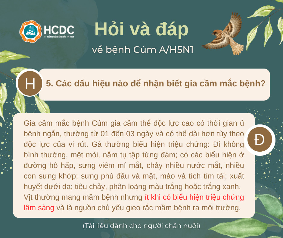 5. Các dấu hiệu nào để nhận biết gia cầm mắc bệnh?