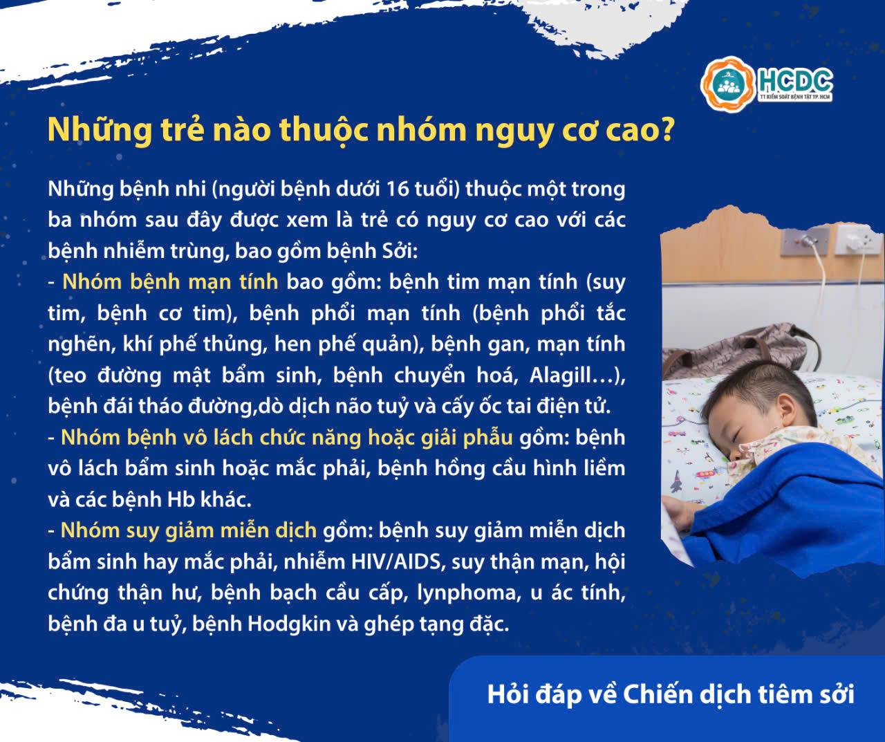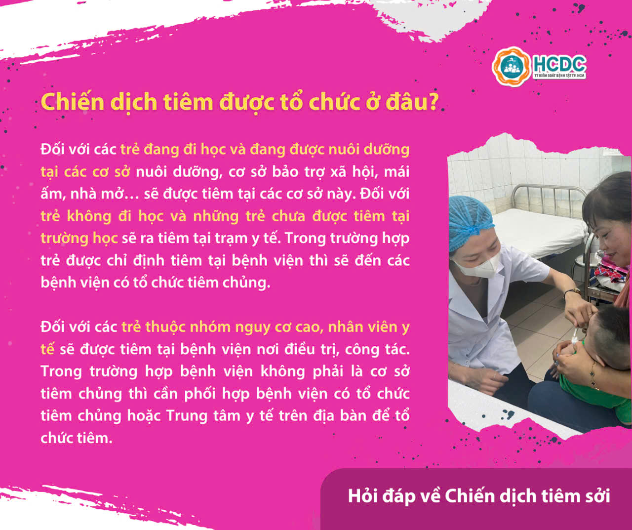 TP. Hồ Chí Minh đang triển khai chiến dịch tiêm vắc xin sởi từ ngày 31/8/2024 với mục đích nâng cao miễn dịch cộng đồng, ngăn chặn dịch sởi.
