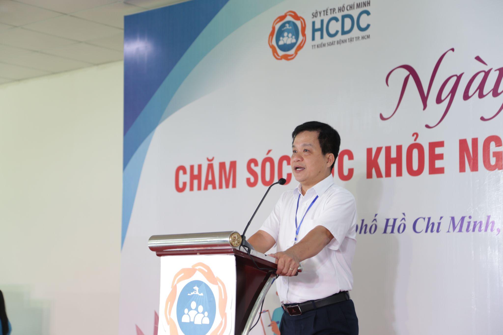 Ảnh: BS. CKII. Nguyễn Hồng Tâm - Giám đốc Trung tâm Kiểm soát bệnh tật Thành phố phát biểu tại Ngày hội Chăm sóc sức khỏe người lao động năm 2024