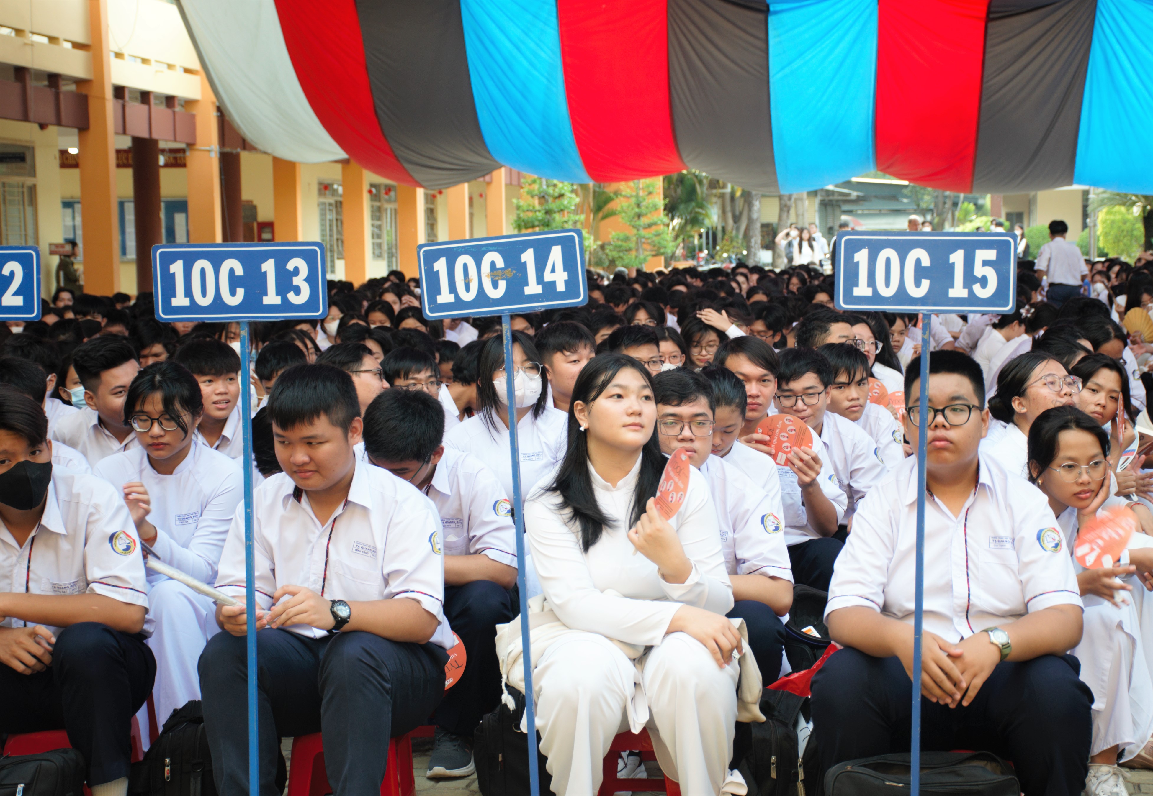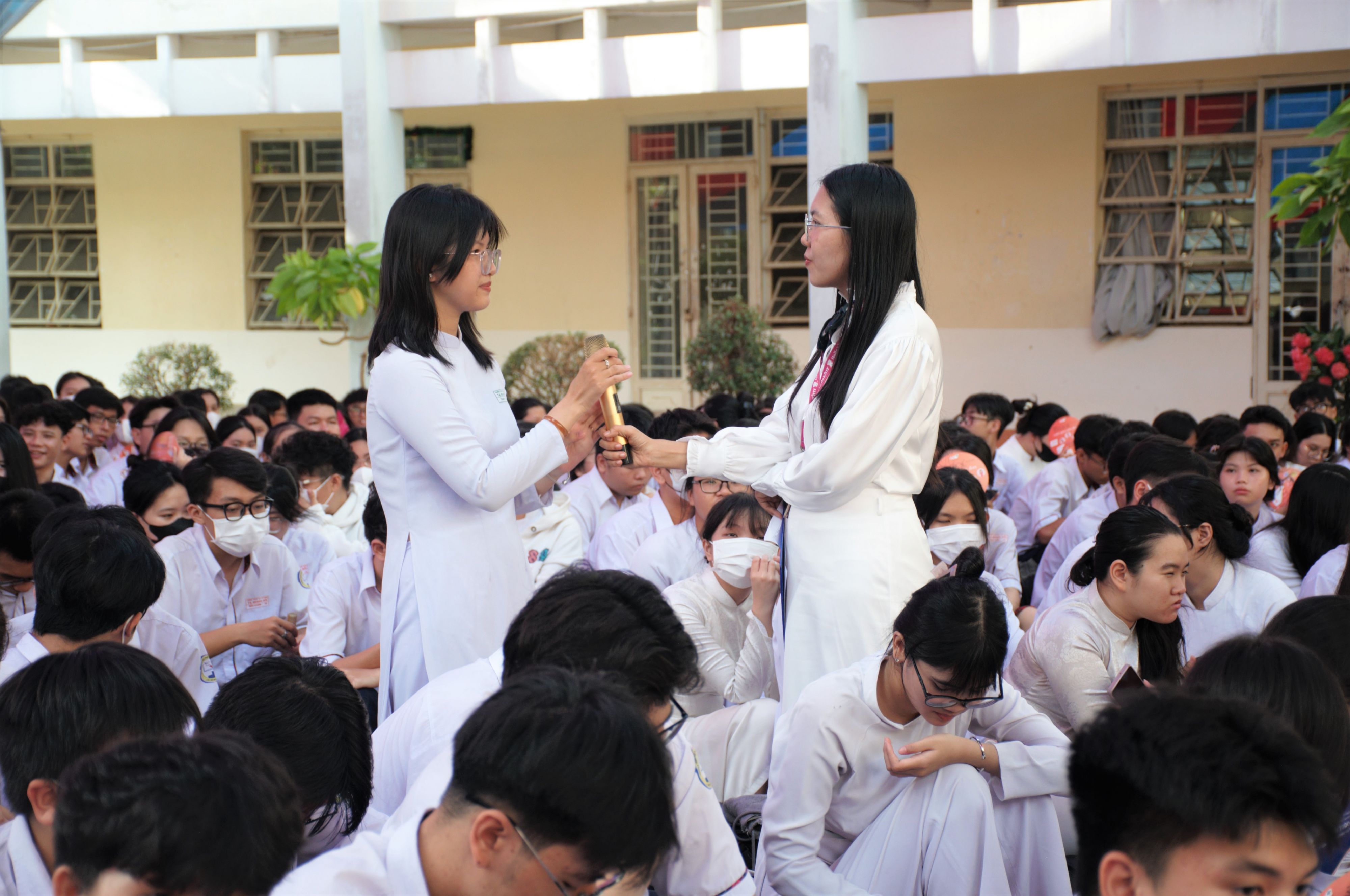 Ảnh: Đông đảo học sinh tham dự buổi truyền thông trong ngày đầu tuần