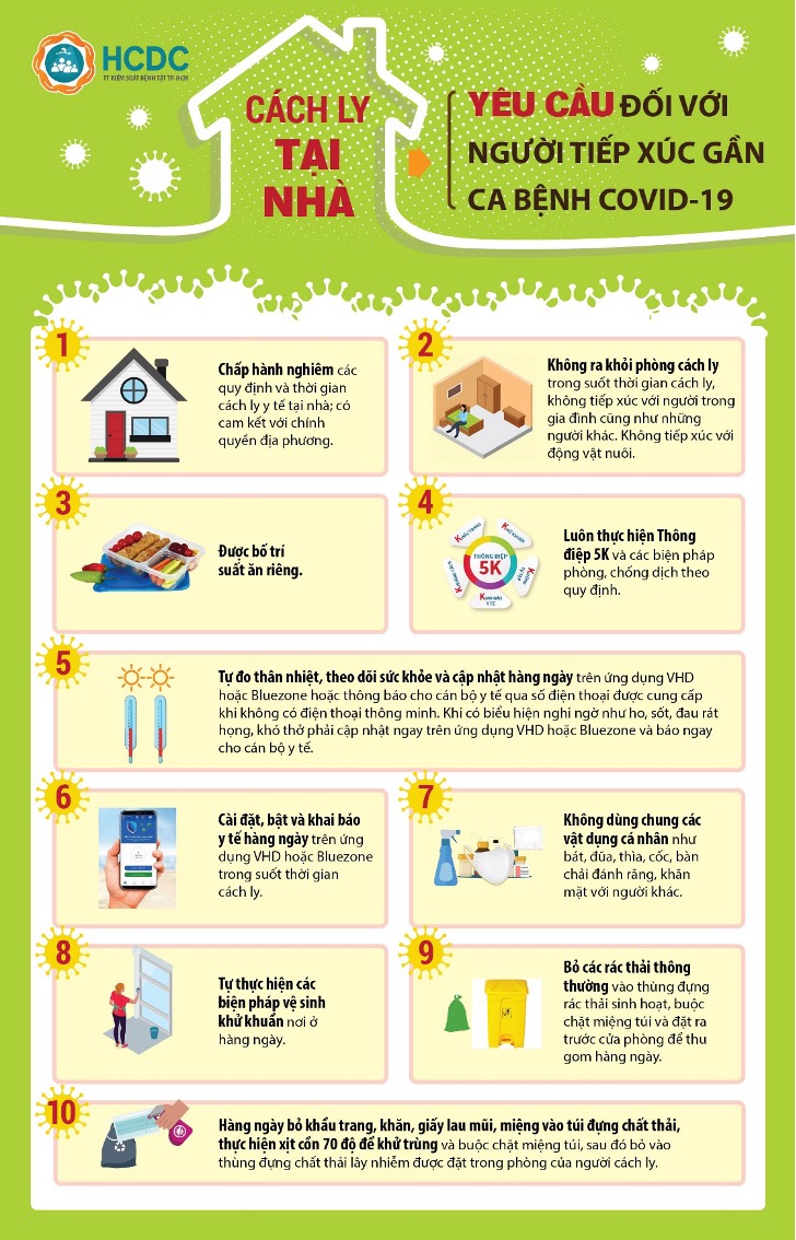 Hướng dẫn cách ly y tế tại nhà cho người tiếp xúc gần ca bệnh COVID-19