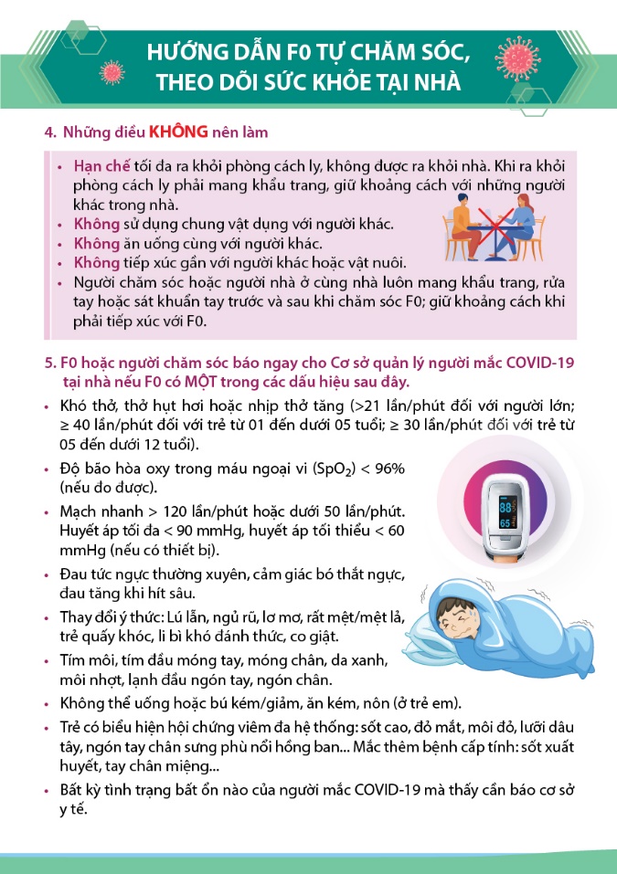 Hướng dẫn F0 tự chăm sóc và theo dõi sức khỏe tại nhà