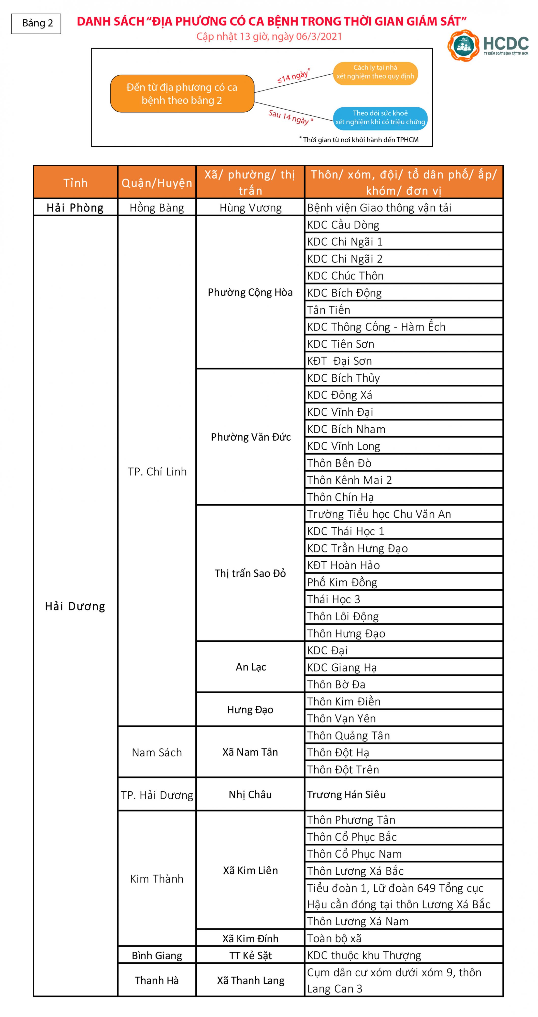 Hướng dẫn giám sát người từ vùng dịch COVID-19 đến Thành phố Hồ Chí Minh - cập nhật lúc 13 giờ, ngày 06/03/2021