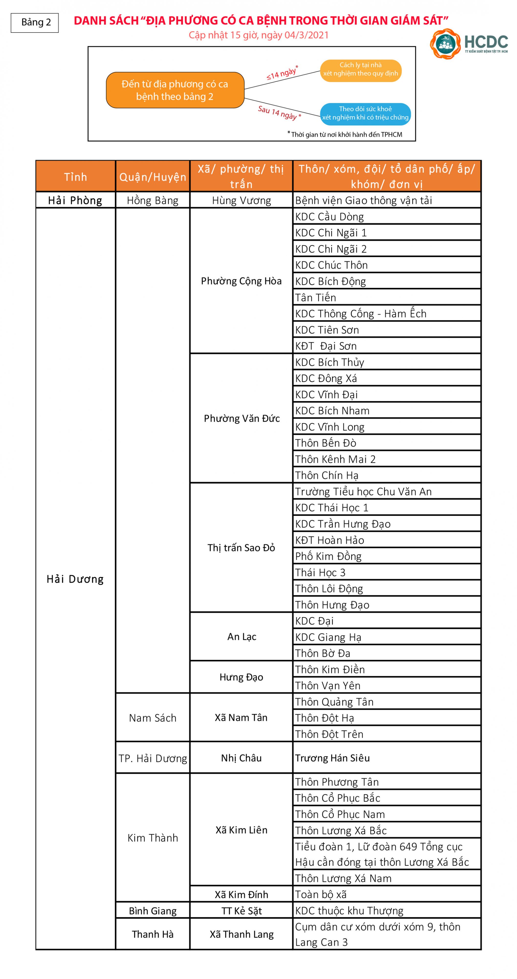 Hướng dẫn giám sát người từ vùng dịch COVID-19 đến Thành phố Hồ Chí Minh - cập nhật lúc 15 giờ, ngày 04/03/2021