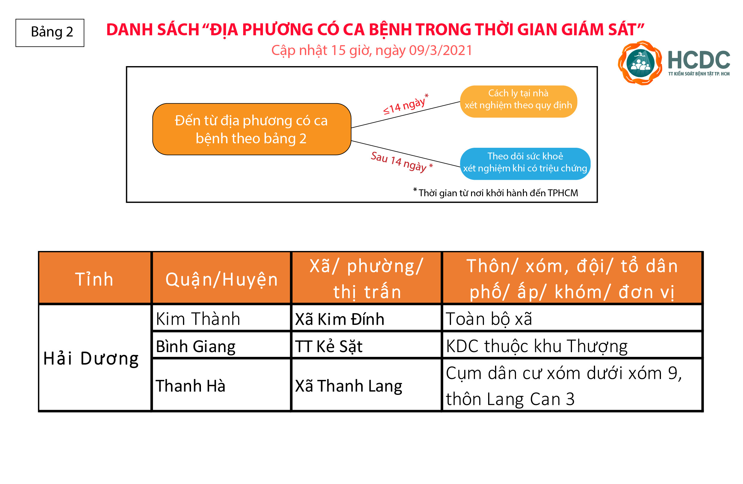 Hướng dẫn giám sát người từ vùng dịch COVID-19 đến Thành phố Hồ Chí Minh - cập nhật lúc 15 giờ, ngày 09/03/2021