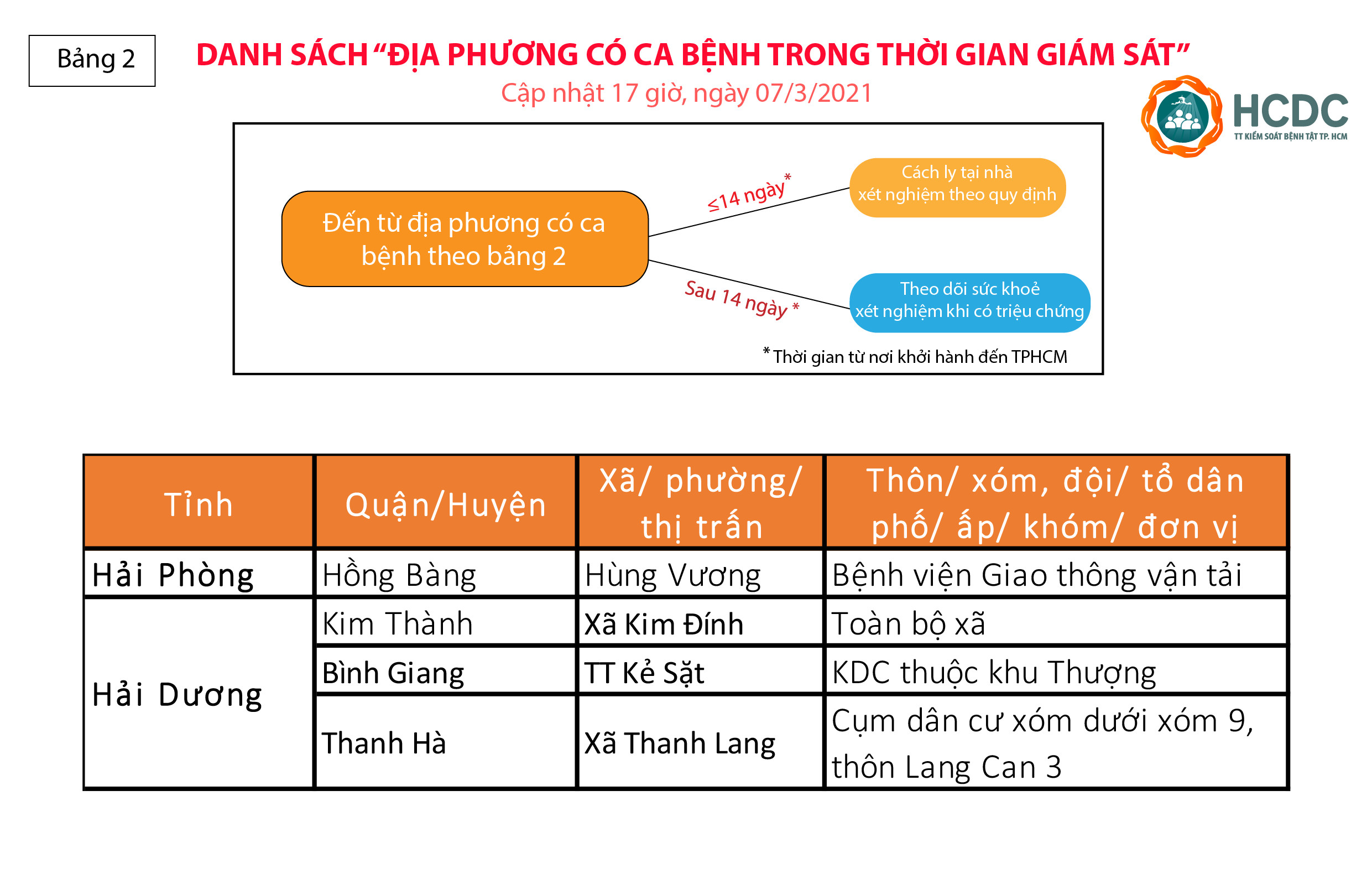 Hướng dẫn giám sát người từ vùng dịch COVID-19 đến Thành phố Hồ Chí Minh - cập nhật lúc 17 giờ, ngày 07/03/2021
