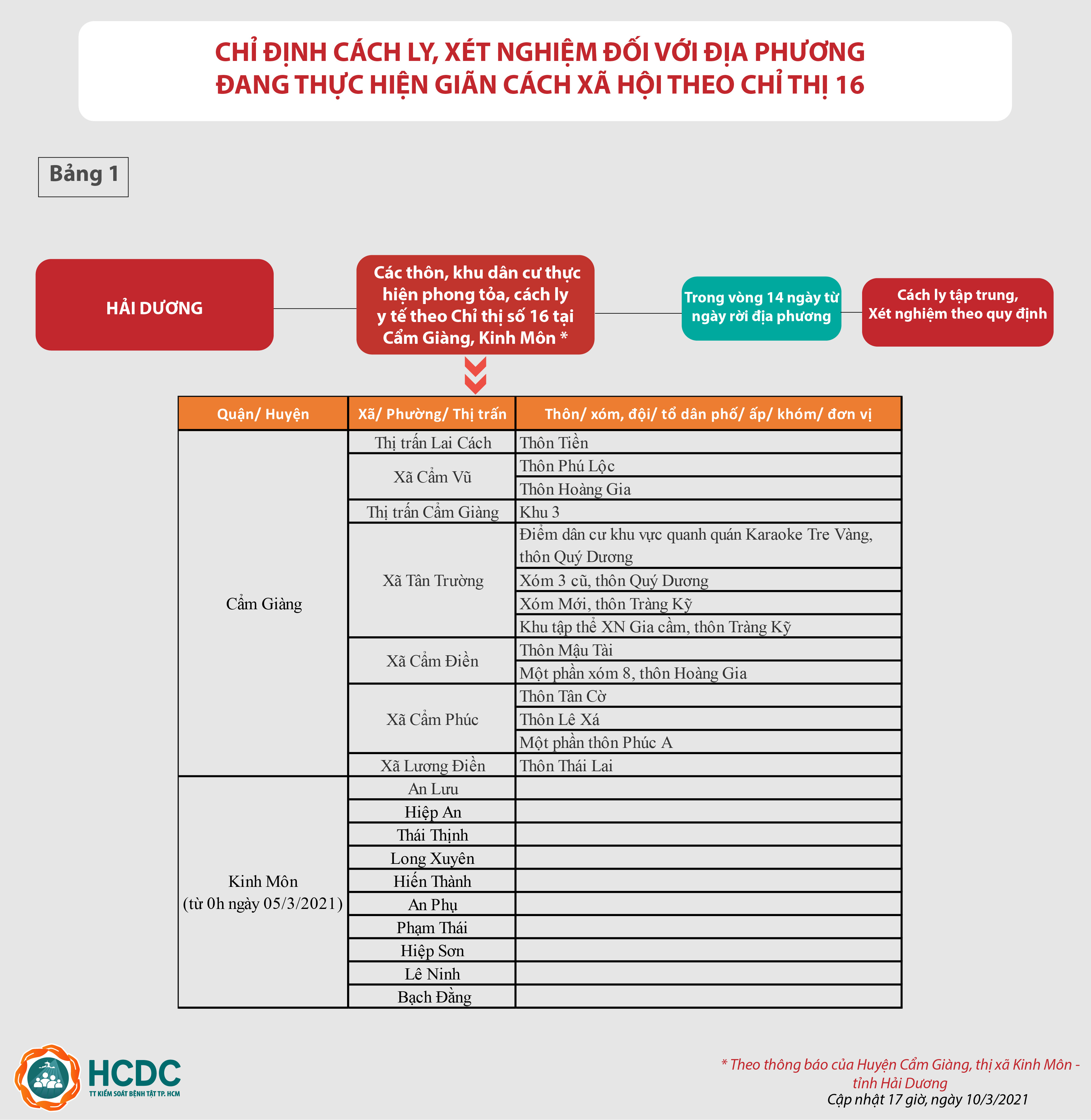Hướng dẫn giám sát người từ vùng dịch COVID-19 đến Thành phố Hồ Chí Minh - cập nhật lúc 17 giờ, ngày 10/03/2021