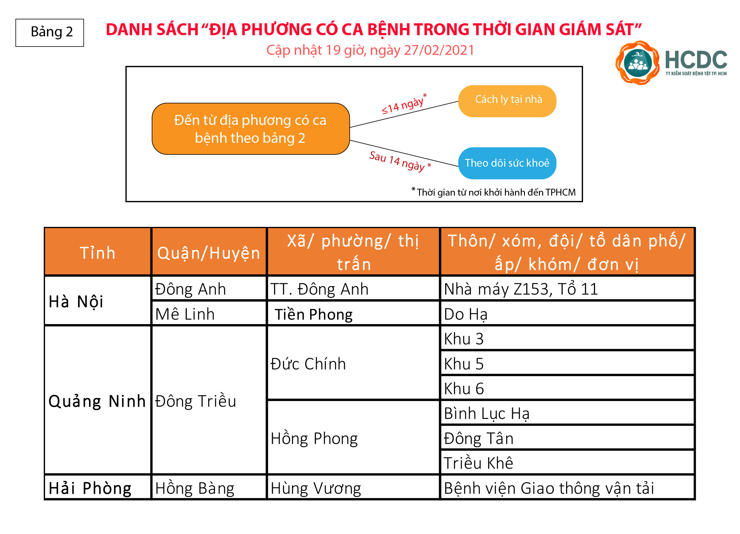 Hướng dẫn giám sát người từ vùng dịch COVID-19 đến Thành phố Hồ Chí Minh - cập nhật lúc 19 giờ, ngày 27/02/2021
