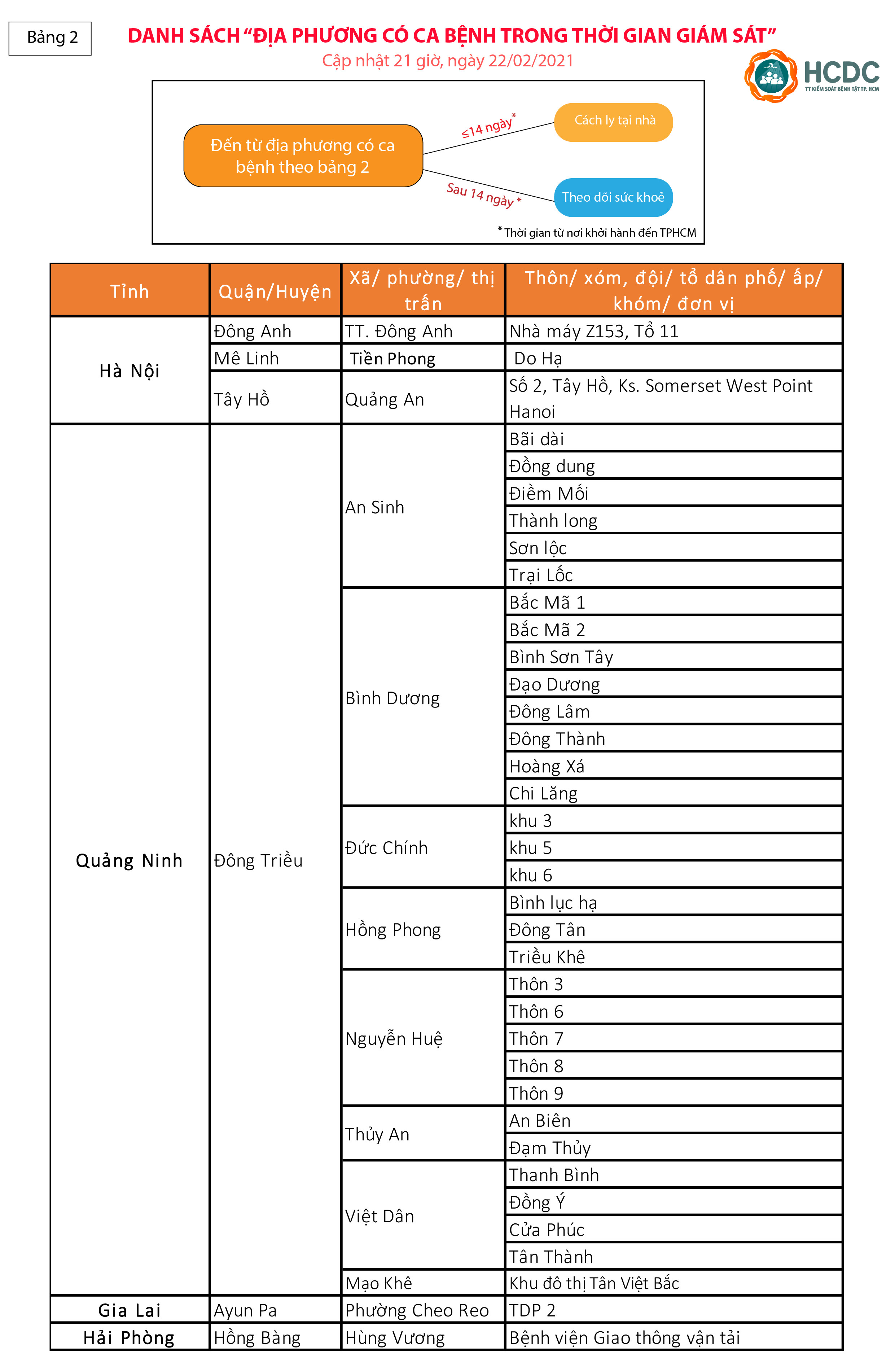 Hướng dẫn giám sát người từ vùng dịch COVID-19 đến Thành phố Hồ Chí Minh - cập nhật lúc 21 giờ, ngày 22/02/2021