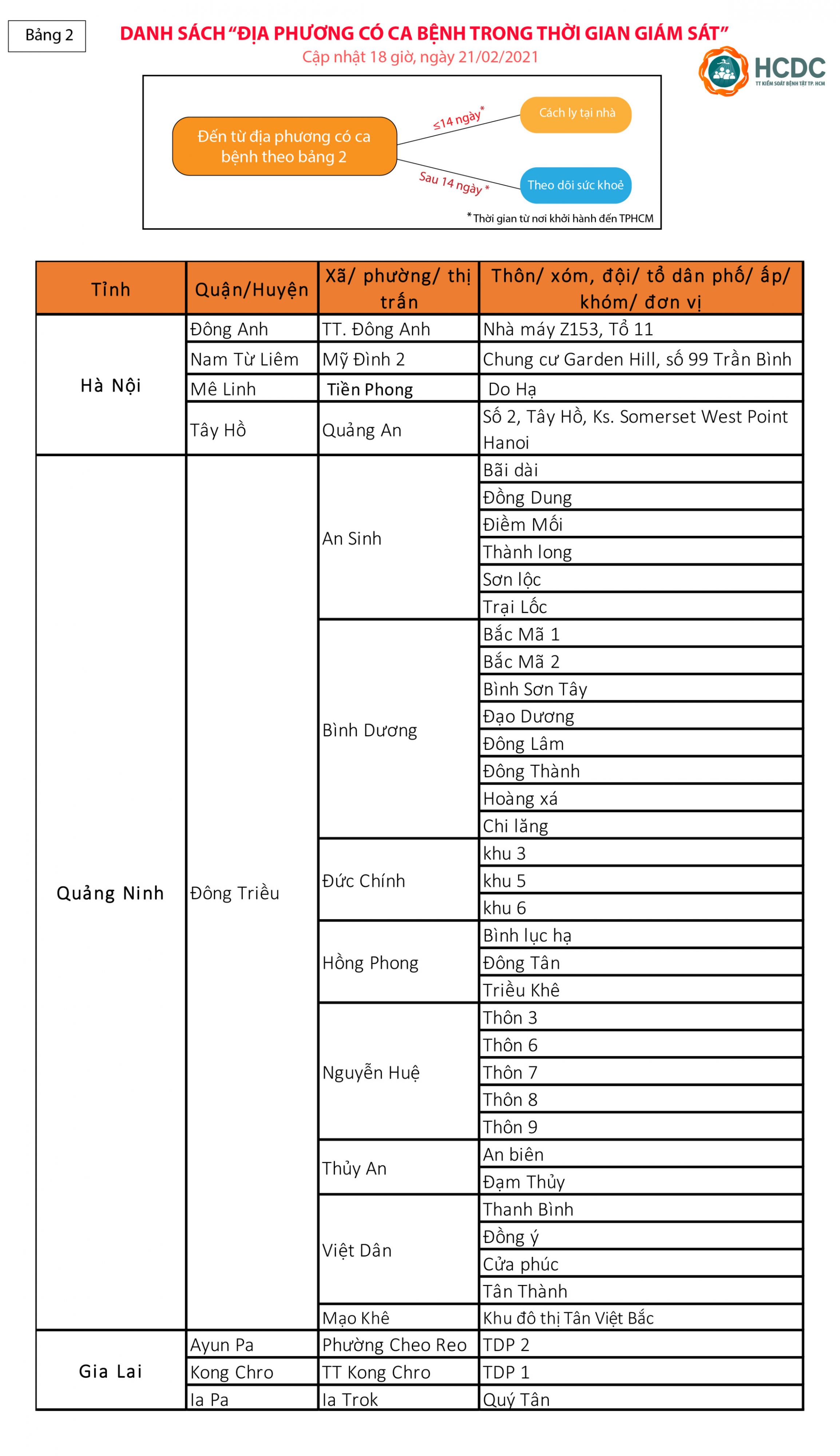 [Hướng dẫn giám sát người từ vùng dịch COVID-19 đến Thành phố Hồ Chí Minh (cập nhật lúc 12 giờ, ngày 21/02/2021)]