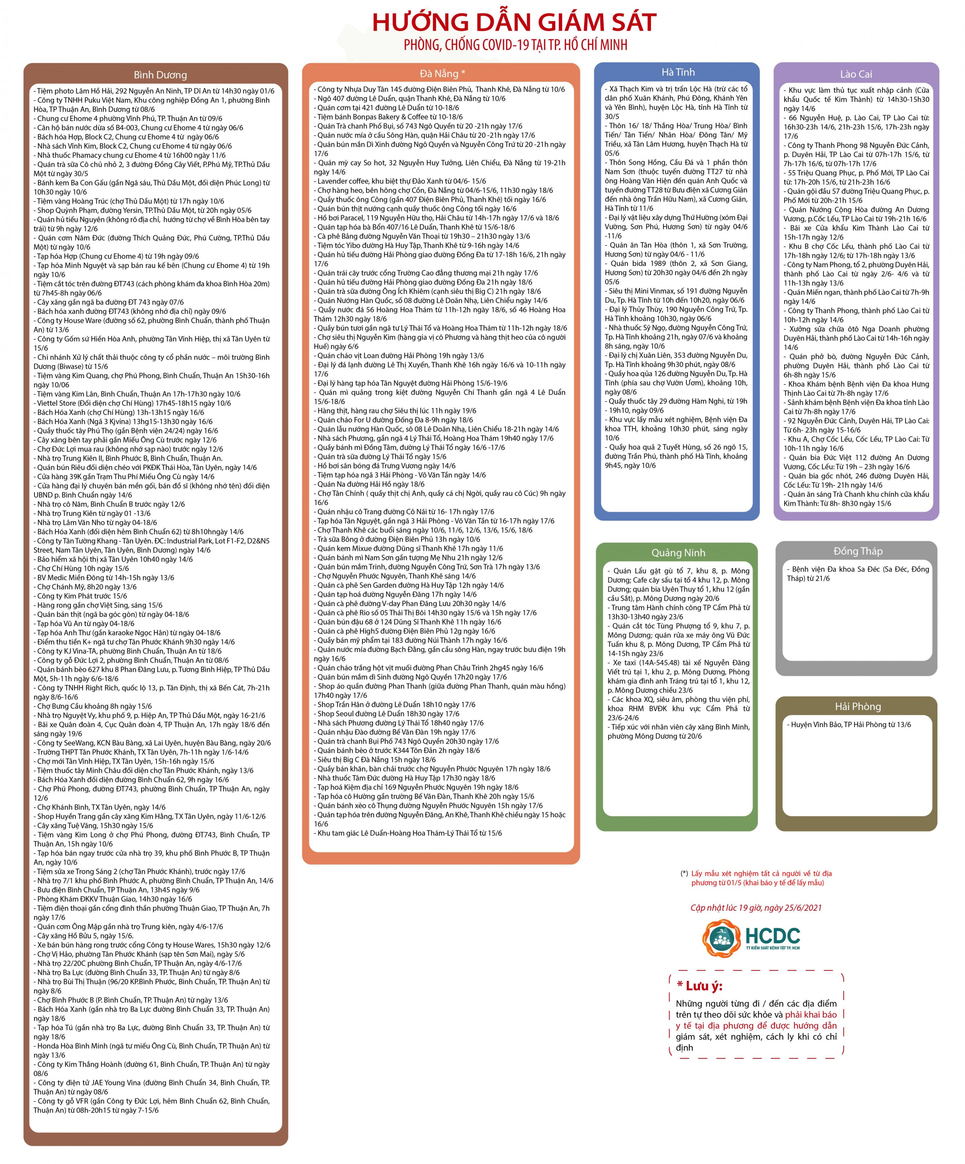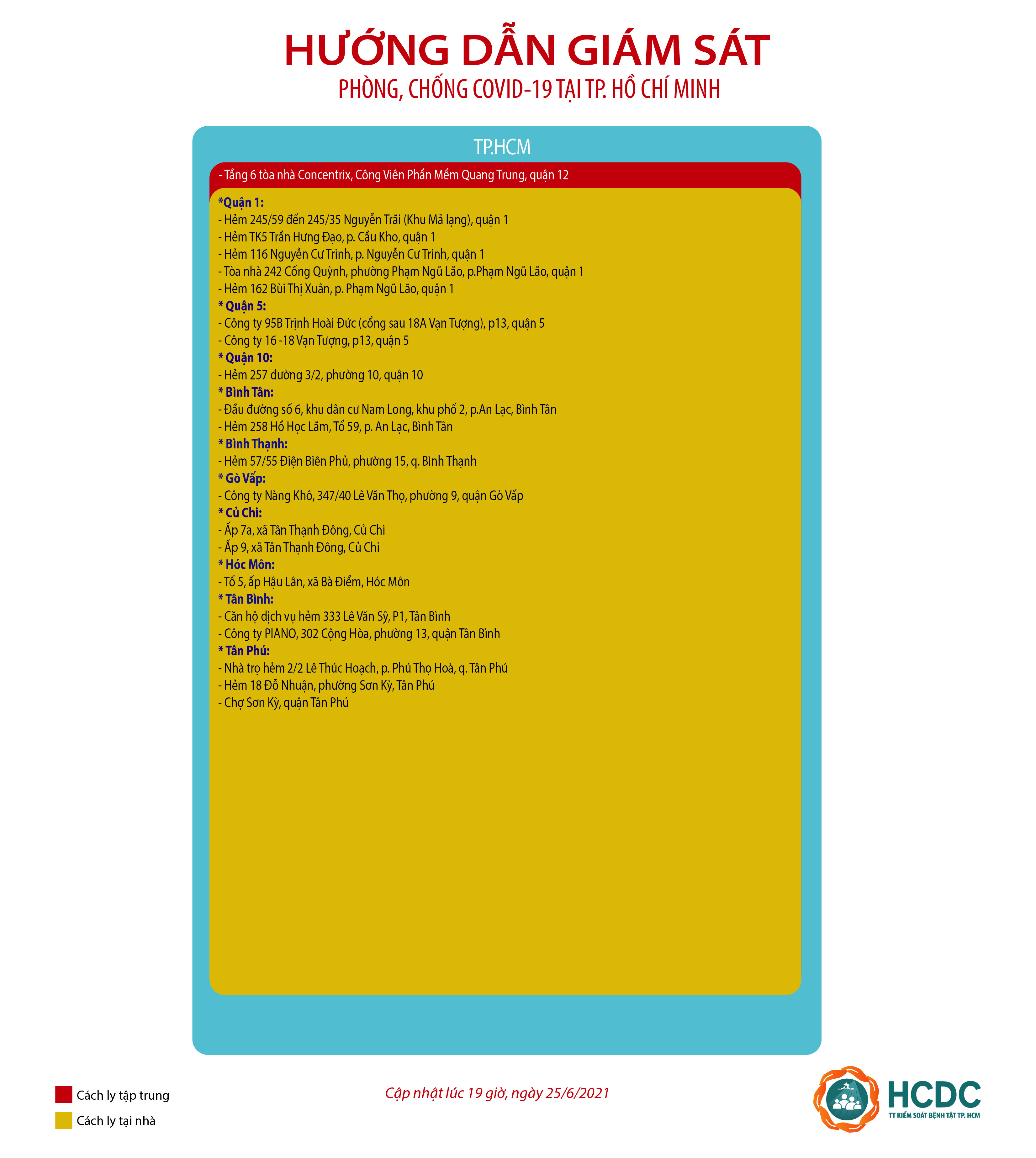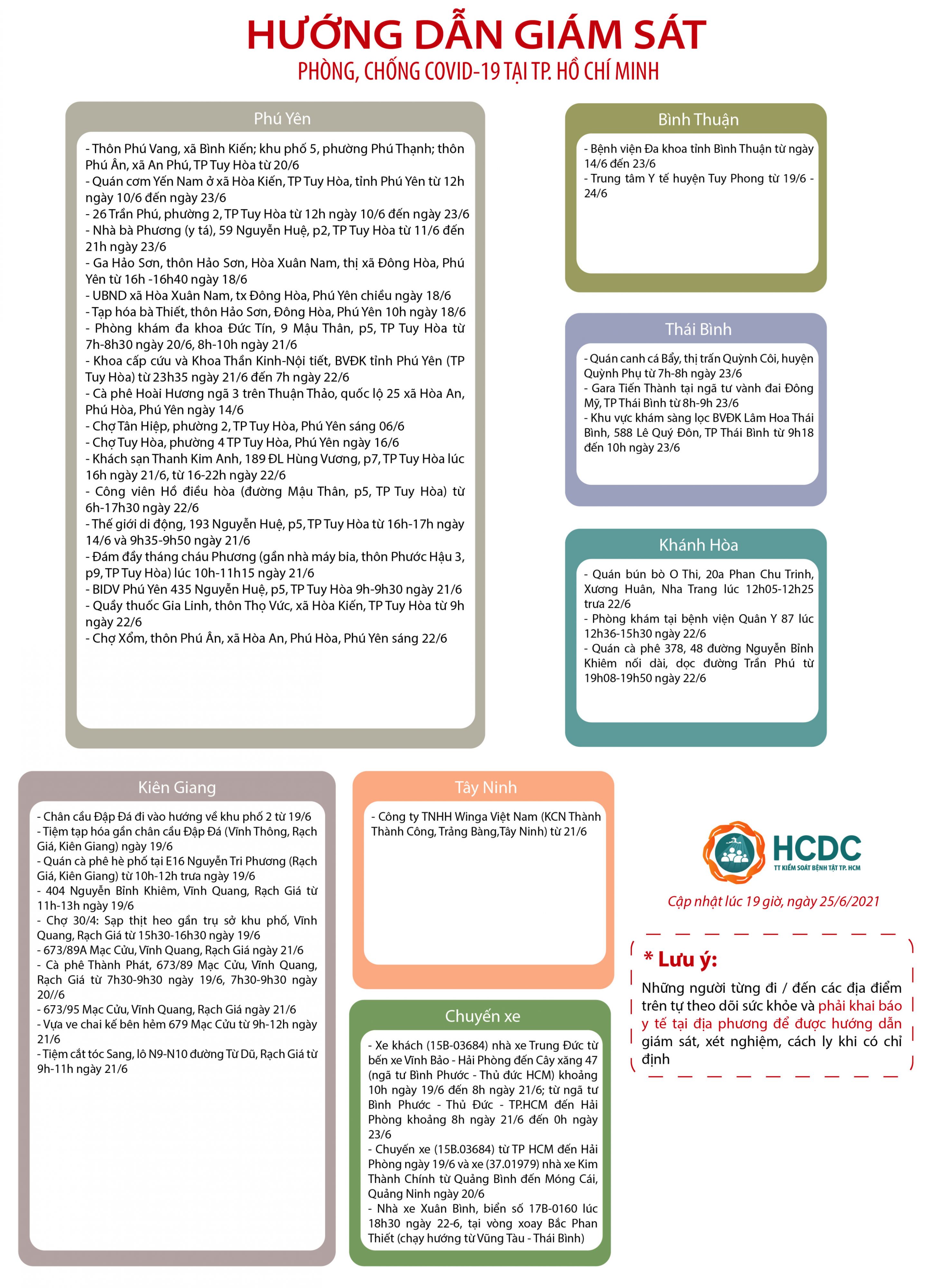 Hướng dẫn giám sát phòng, chống dịch COVID-19 tại Thành phố Hồ Chí Minh - cập nhật lúc 19 giờ, ngày 25/6/2021