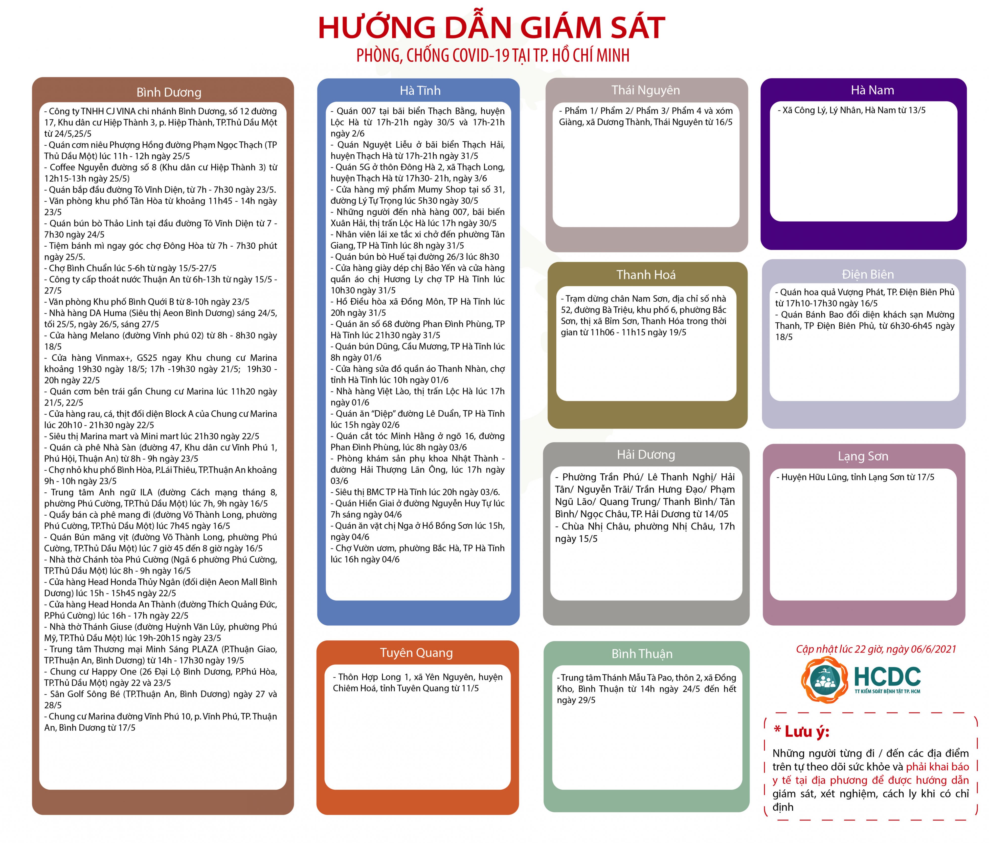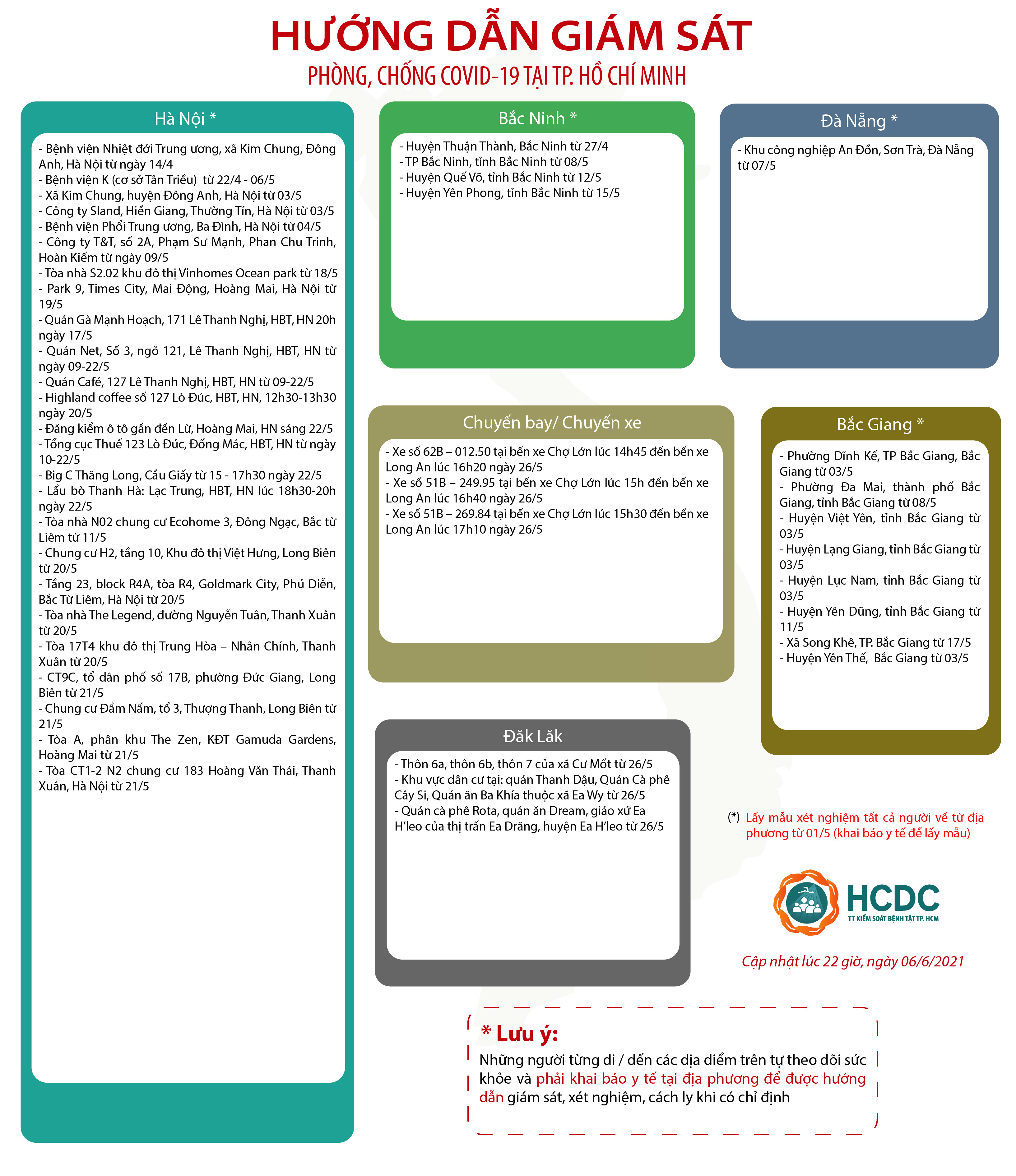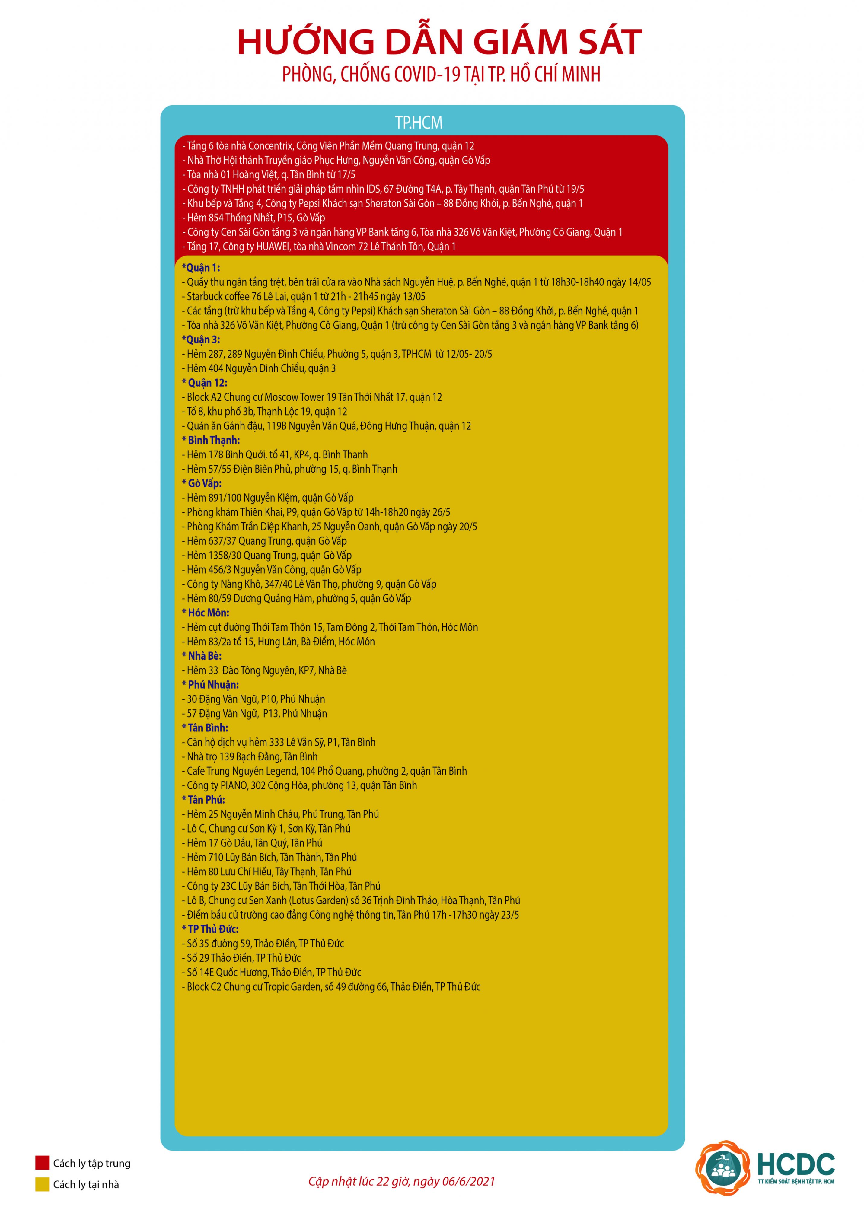 Hướng dẫn giám sát phòng, chống dịch COVID-19 tại Thành phố Hồ Chí Minh - cập nhật lúc 22 giờ, ngày 6/6/2021