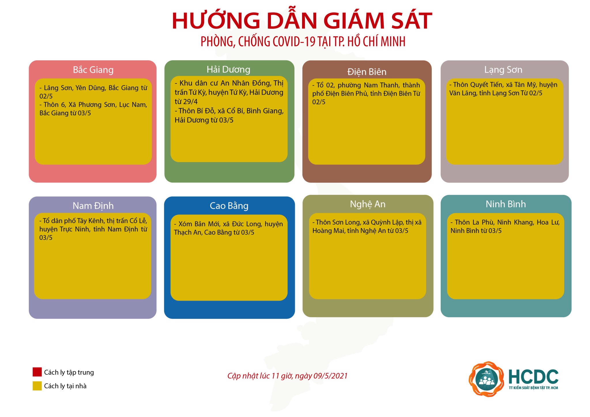 HƯỚNG DẪN GIÁM SÁT PHÒNG, CHỐNG DỊCH COVID-19 TẠI TP. HỒ CHÍ MINH (cập nhật 11 giờ 00 phút, ngày 09/5/2021)