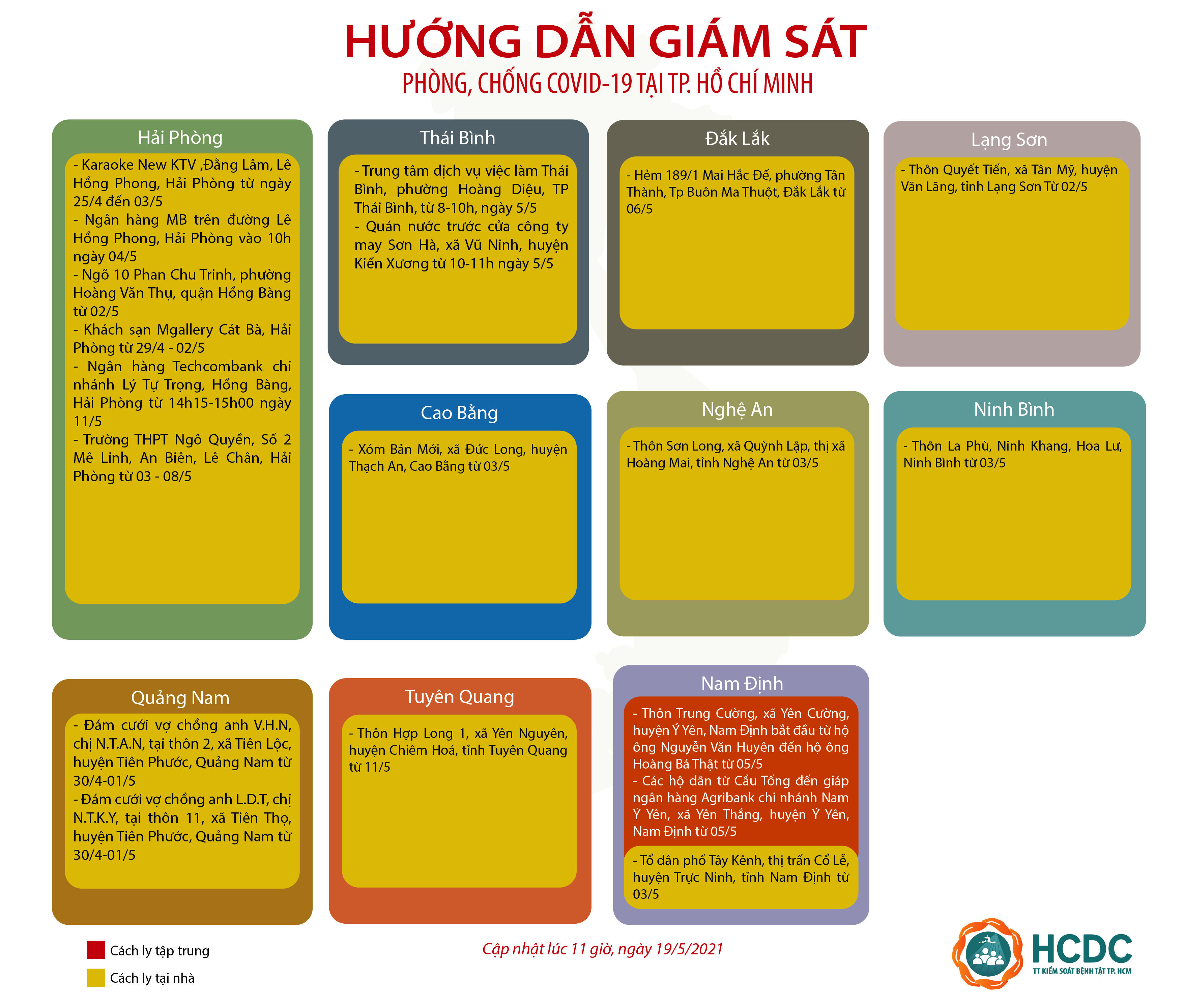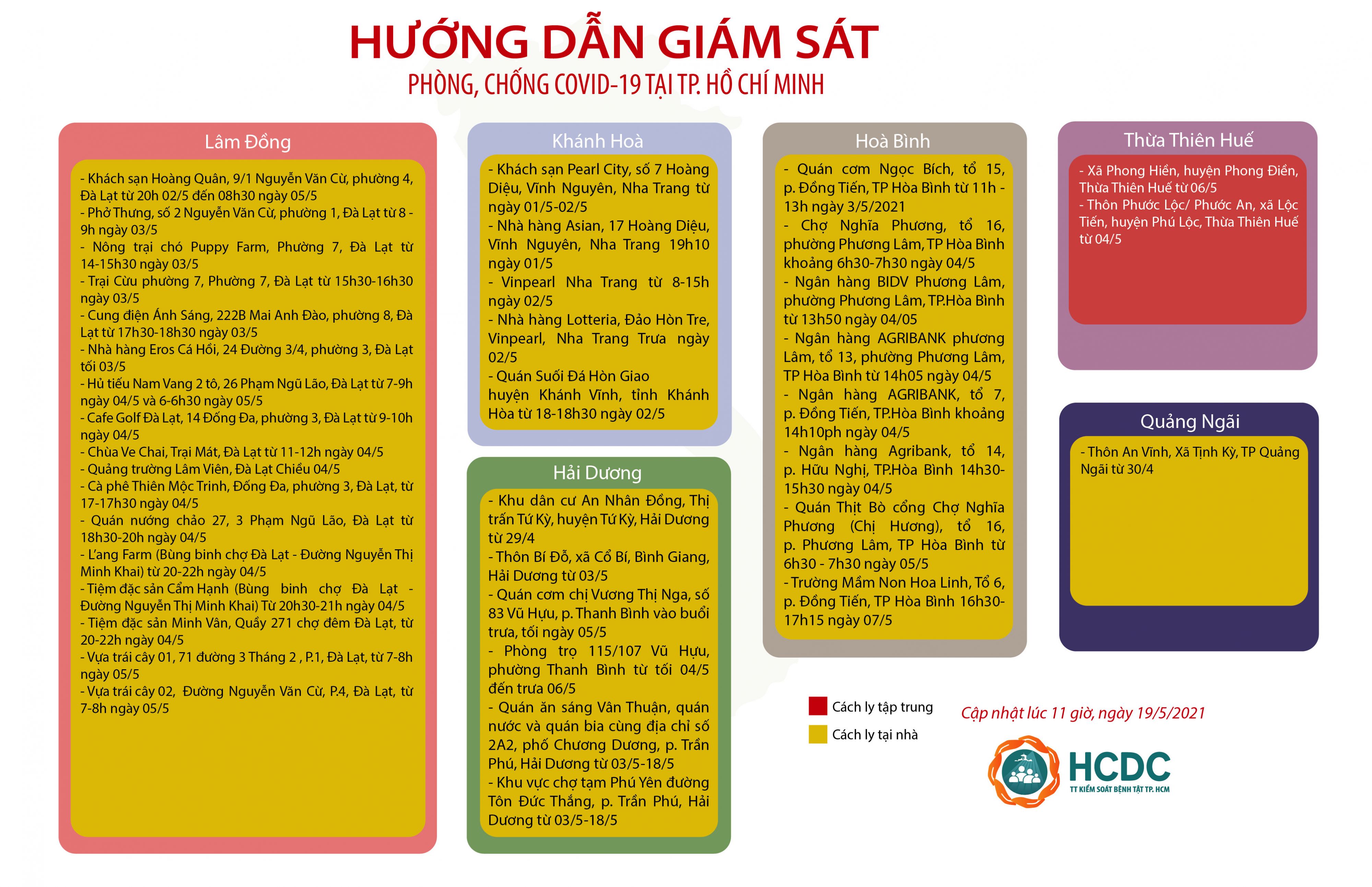 HƯỚNG DẪN GIÁM SÁT PHÒNG, CHỐNG DỊCH COVID-19 TẠI TP. HỒ CHÍ MINH (cập nhật 11 giờ 00 phút, ngày 19/5/2021)