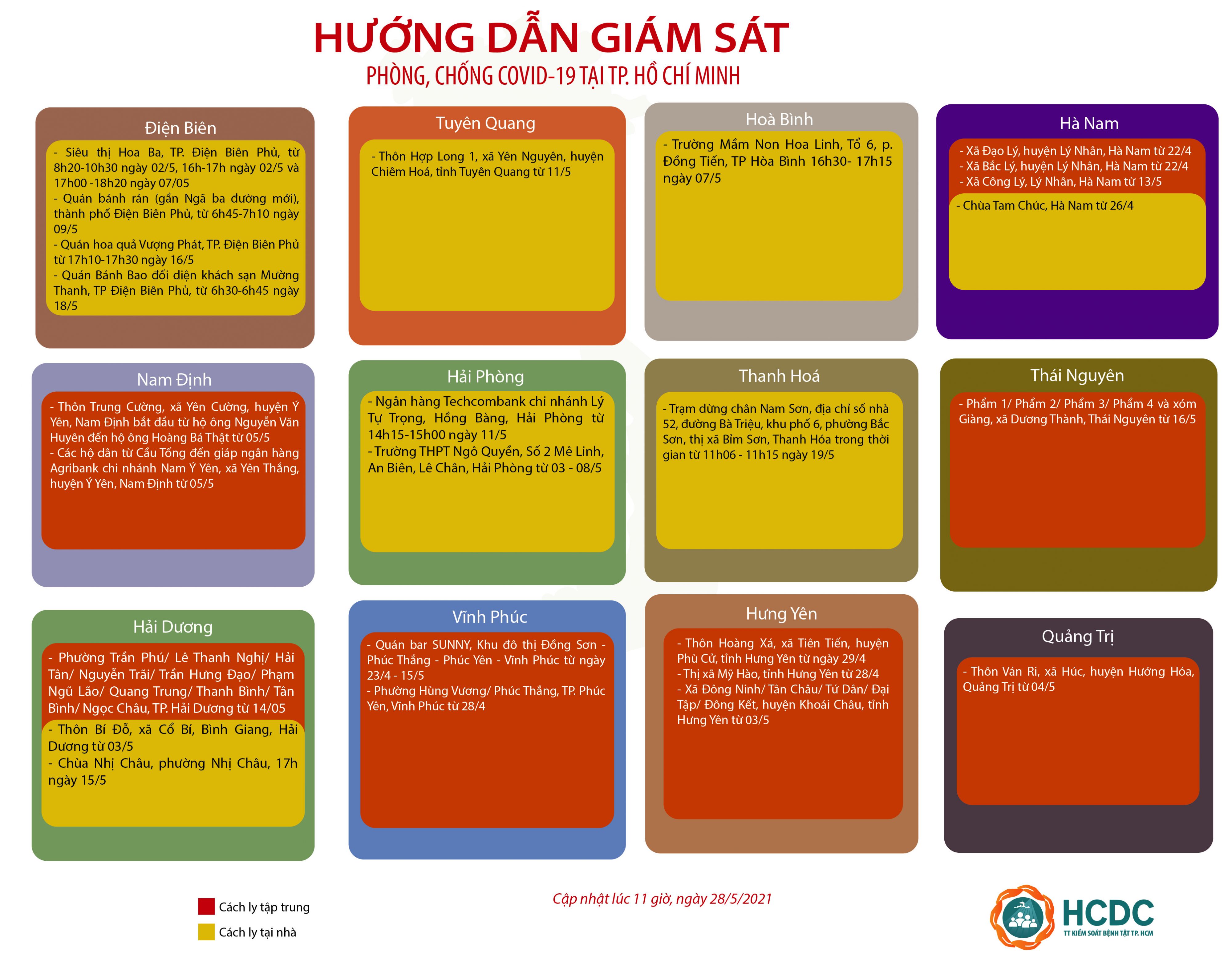 HƯỚNG DẪN GIÁM SÁT PHÒNG, CHỐNG DỊCH COVID-19 TẠI TP. HỒ CHÍ MINH (cập nhật 11 giờ 00 phút, ngày 28/5/2021)