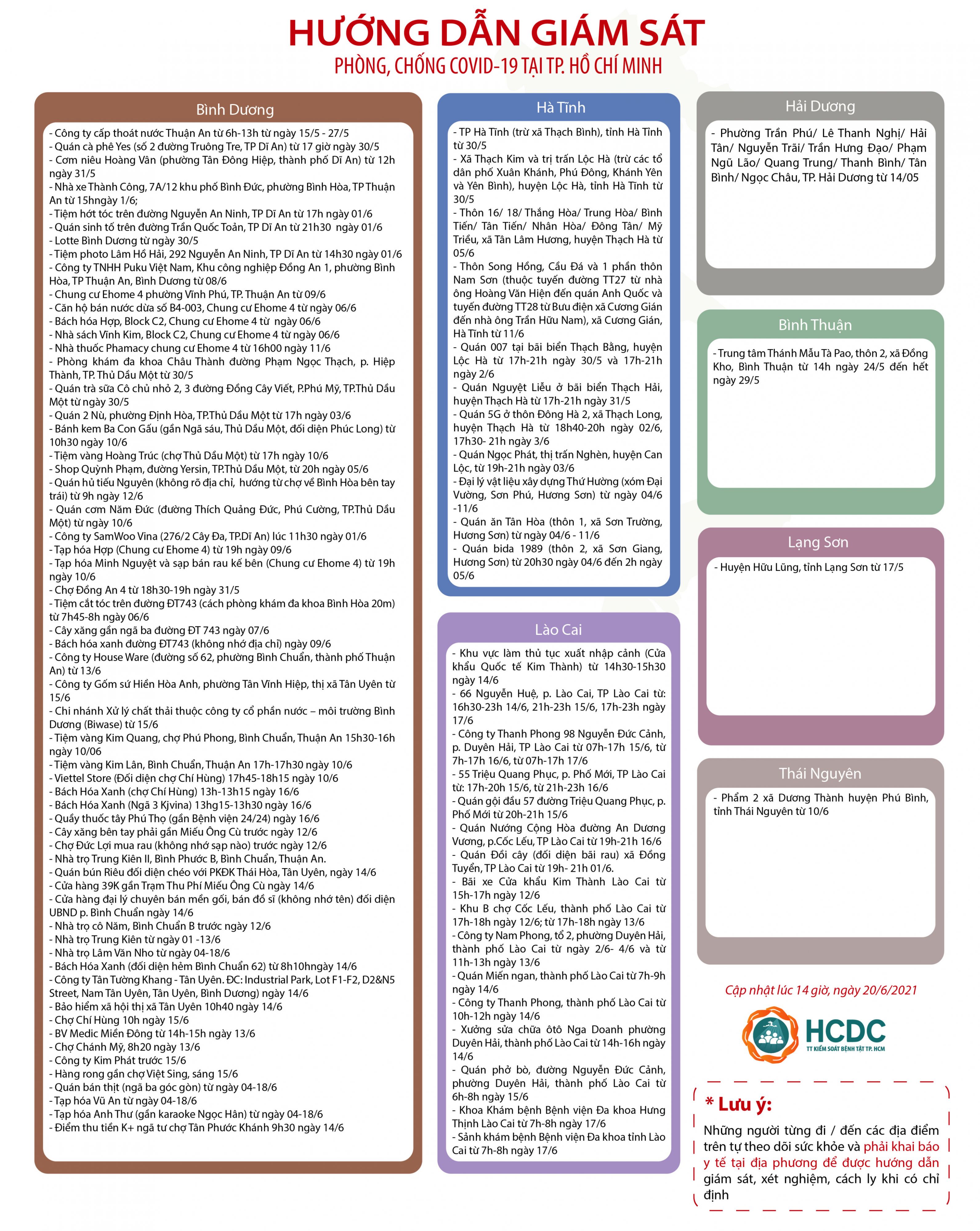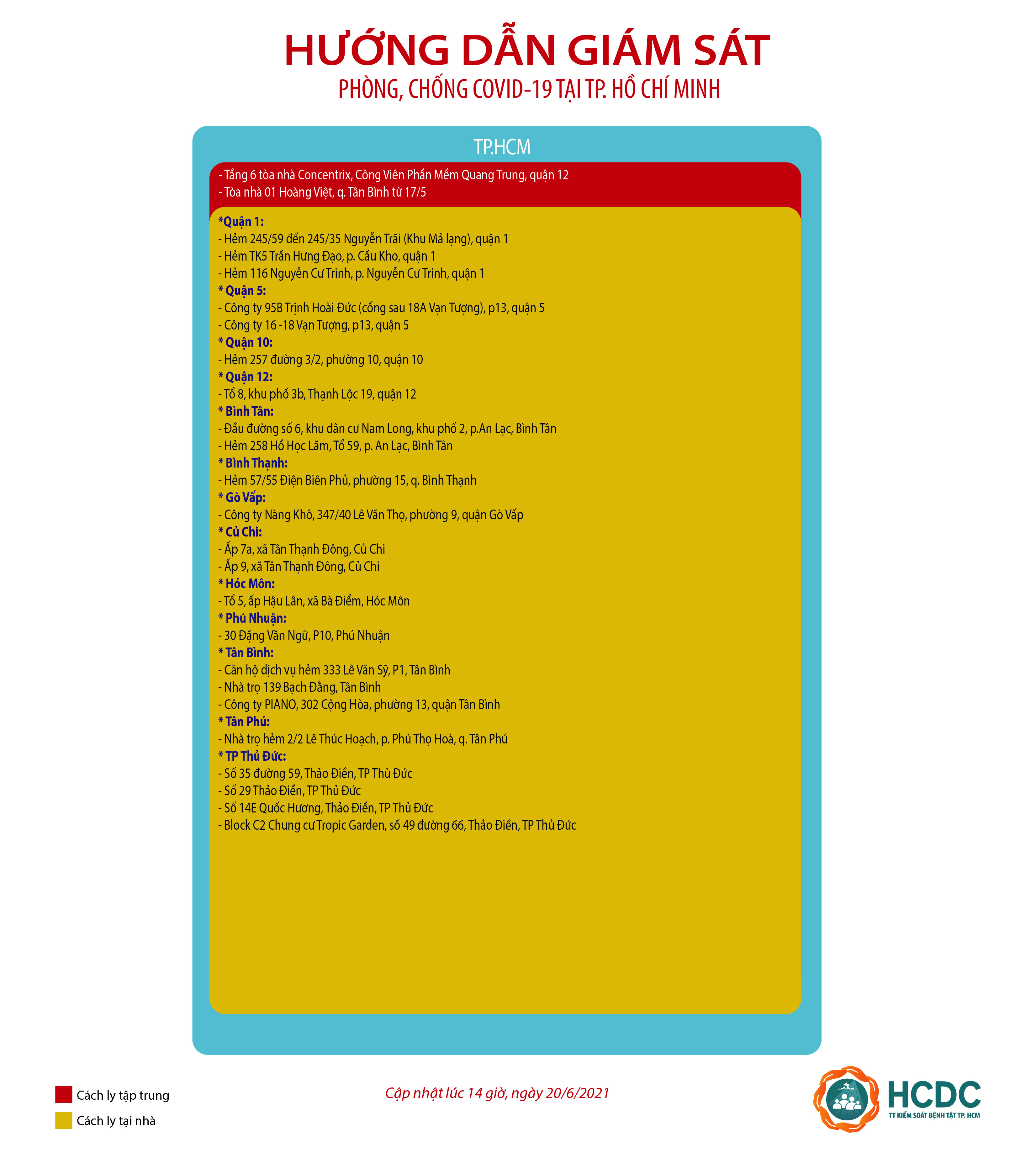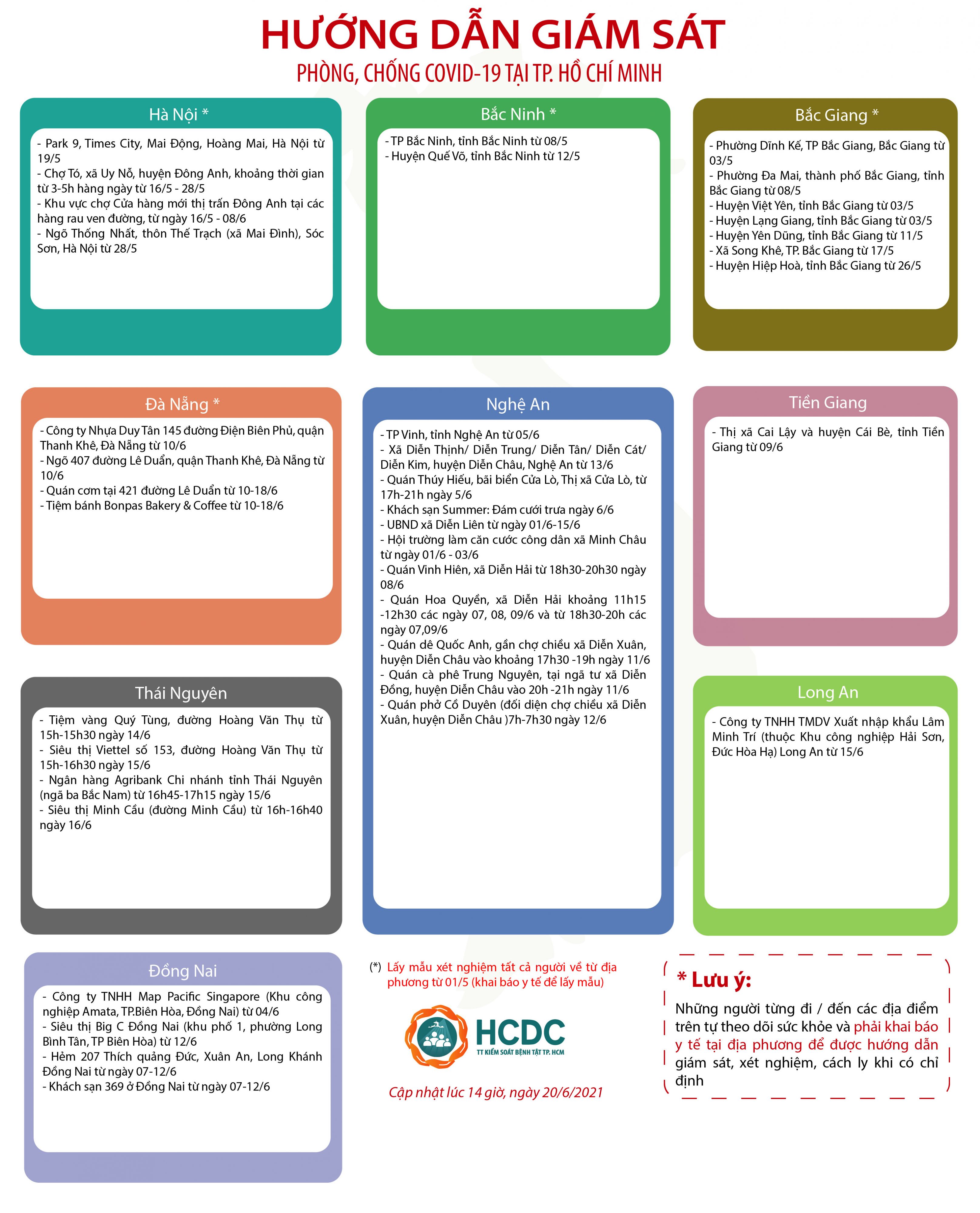 HƯỚNG DẪN GIÁM SÁT PHÒNG, CHỐNG DỊCH COVID-19 TẠI TP. HỒ CHÍ MINH (cập nhật 14 giờ 00 phút, ngày 20/6/2021)