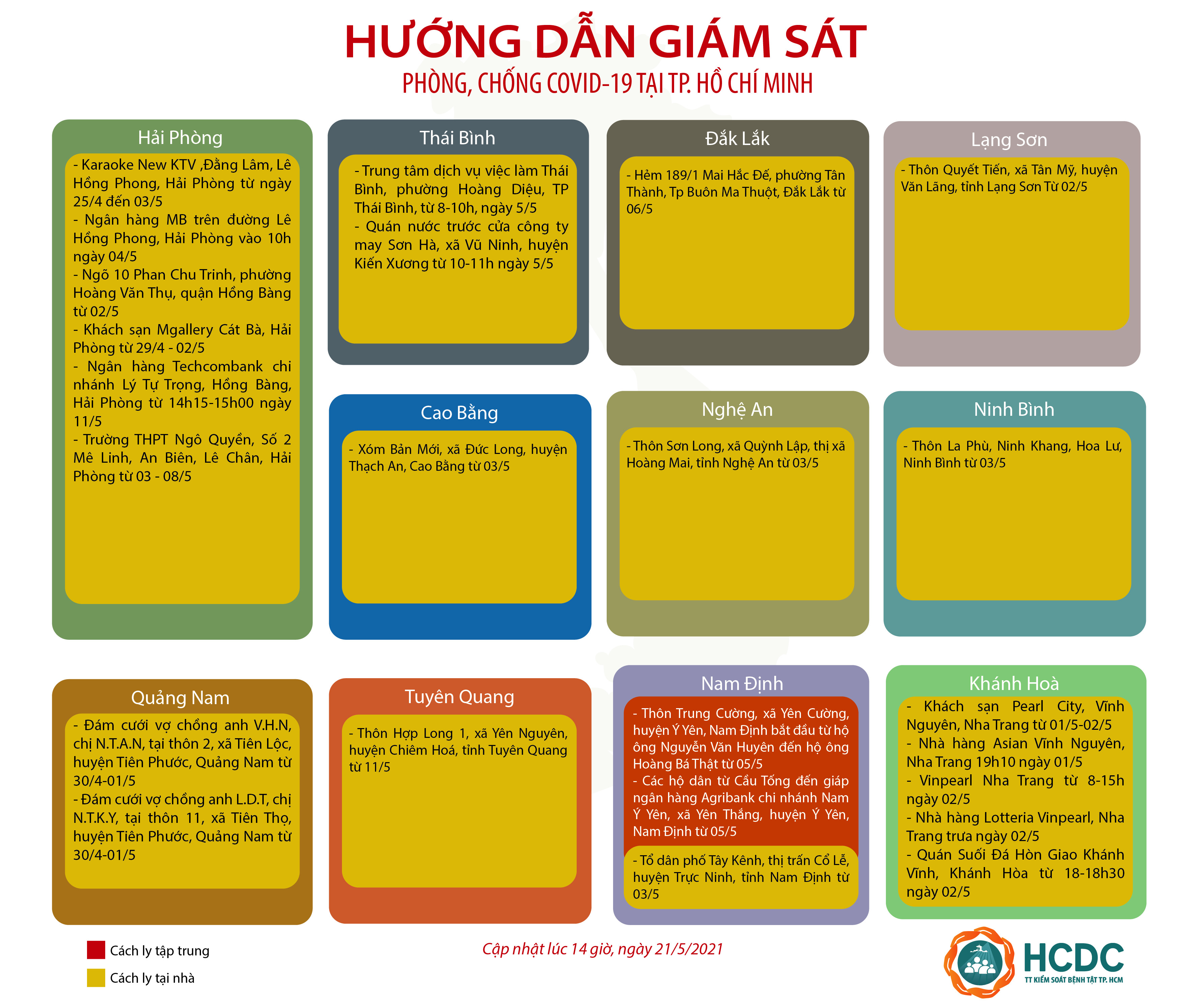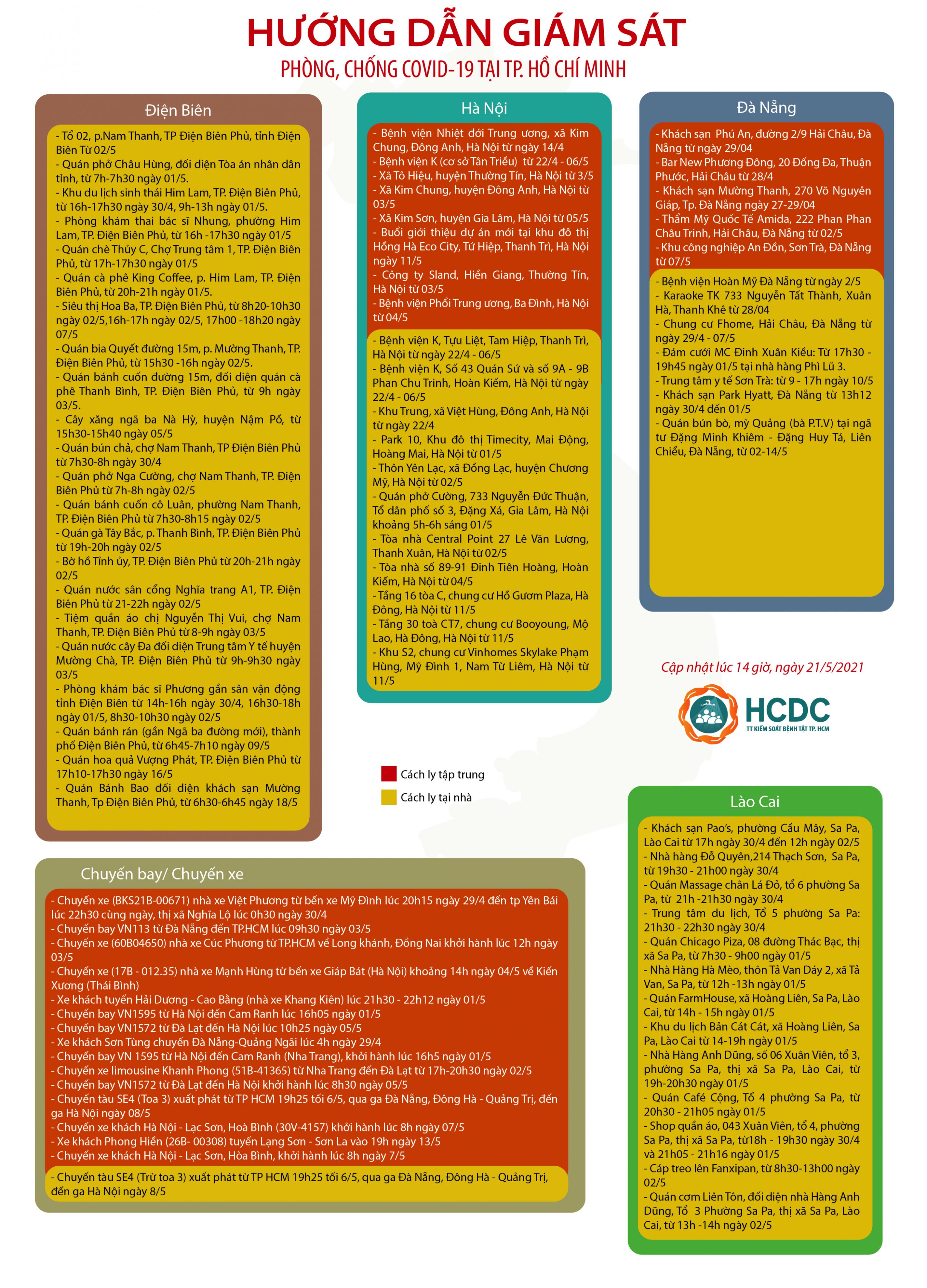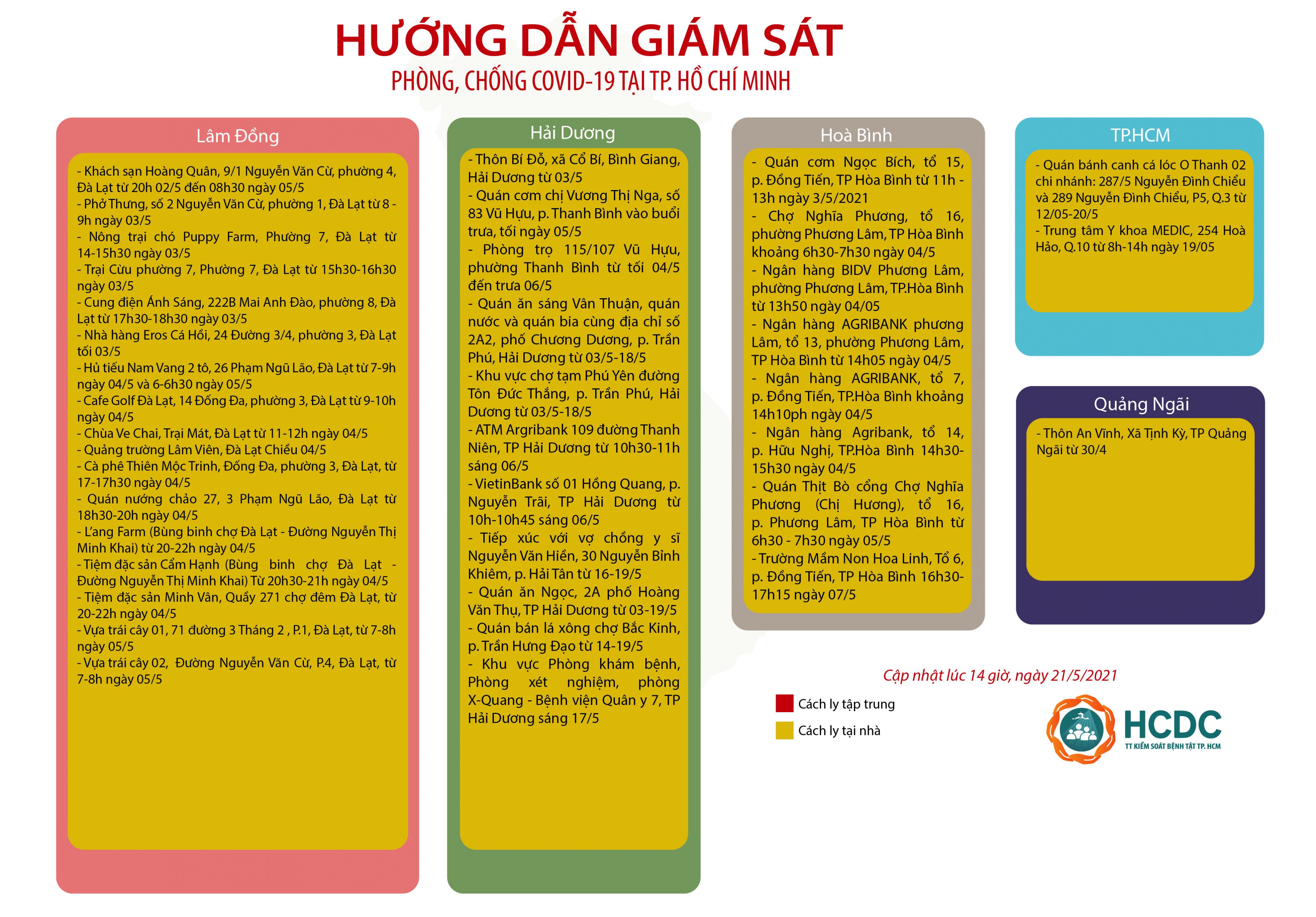 HƯỚNG DẪN GIÁM SÁT PHÒNG, CHỐNG DỊCH COVID-19 TẠI TP. HỒ CHÍ MINH (cập nhật 14 giờ 00 phút, ngày 21/5/2021)