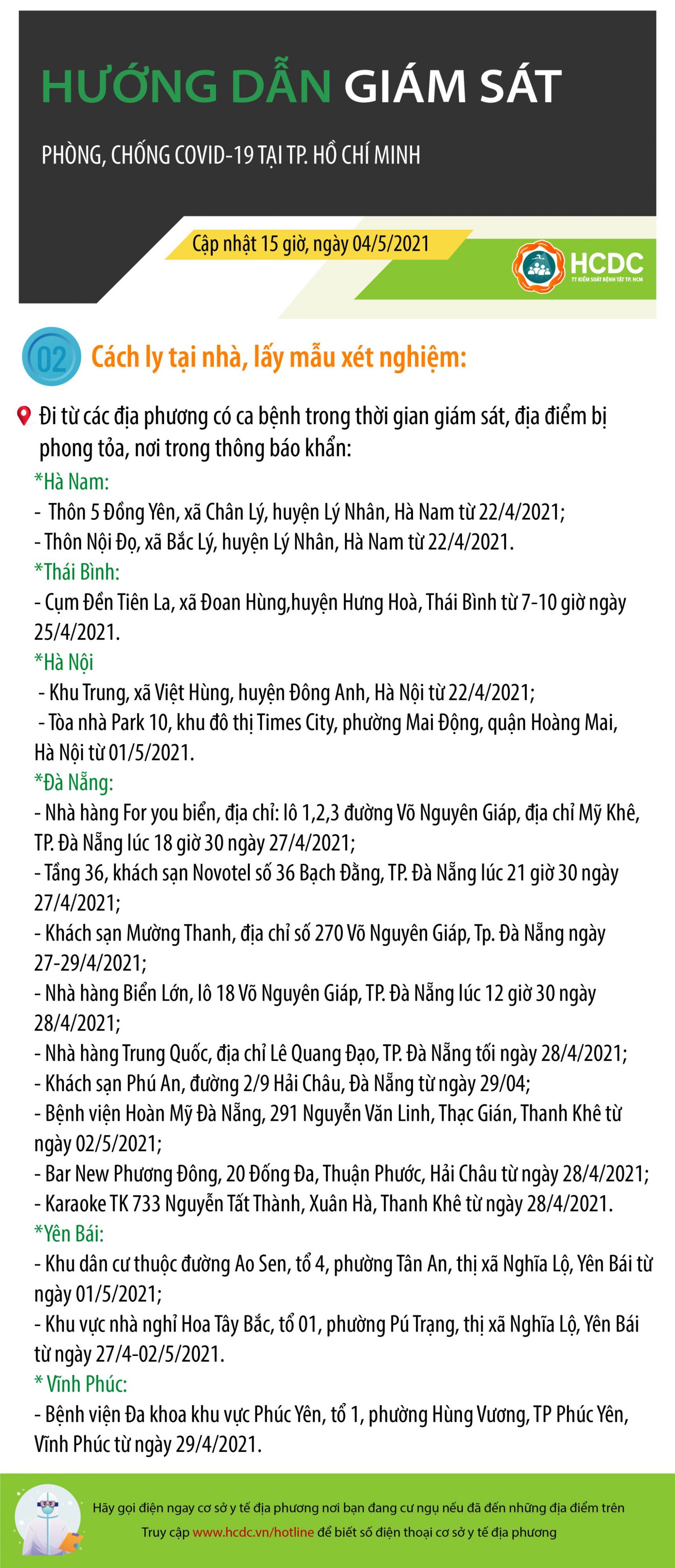 HƯỚNG DẪN GIÁM SÁT PHÒNG, CHỐNG DỊCH COVID-19 TẠI TP. HỒ CHÍ MINH (cập nhật 15 giờ 00 phút, ngày 04/5/2021)
