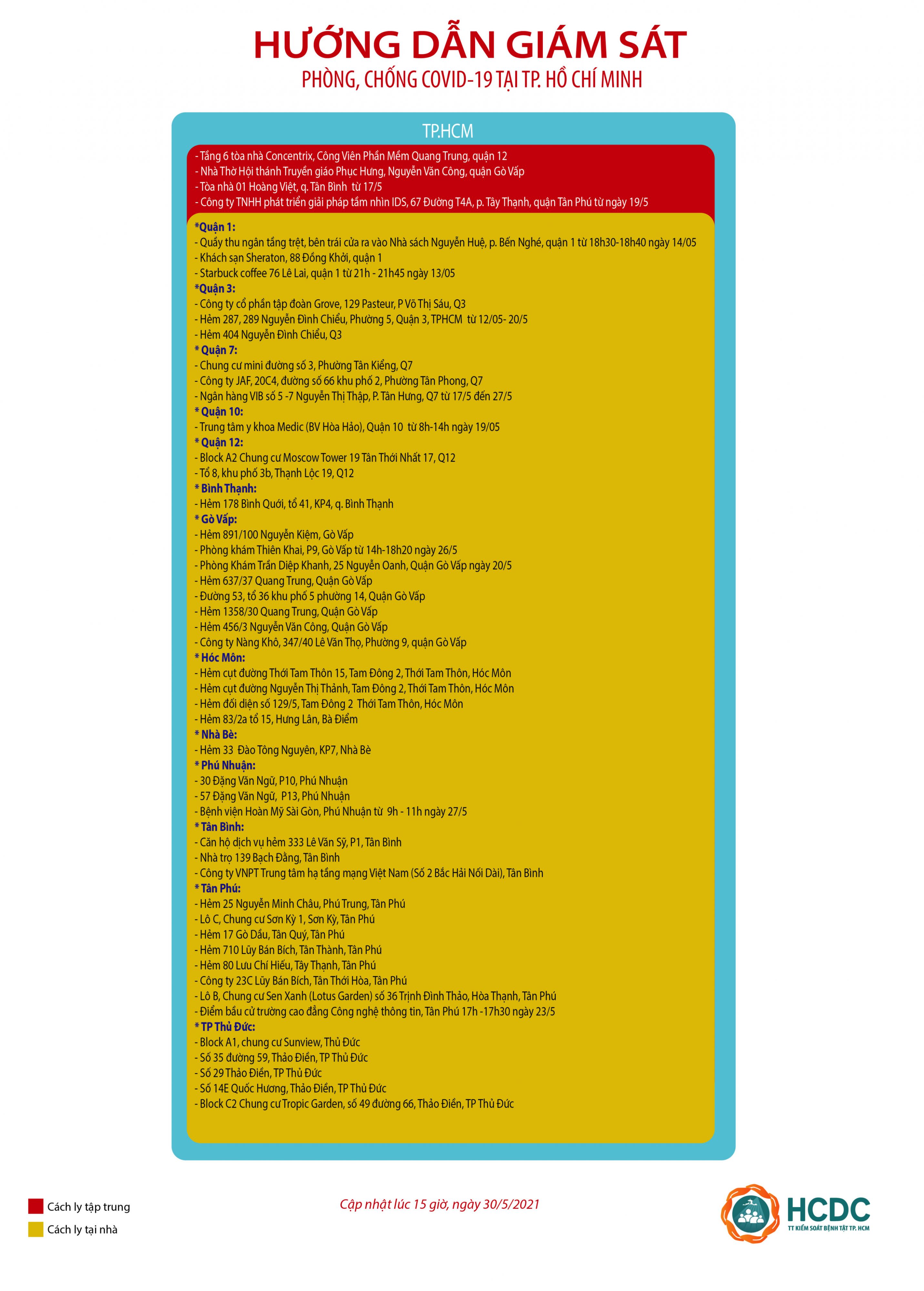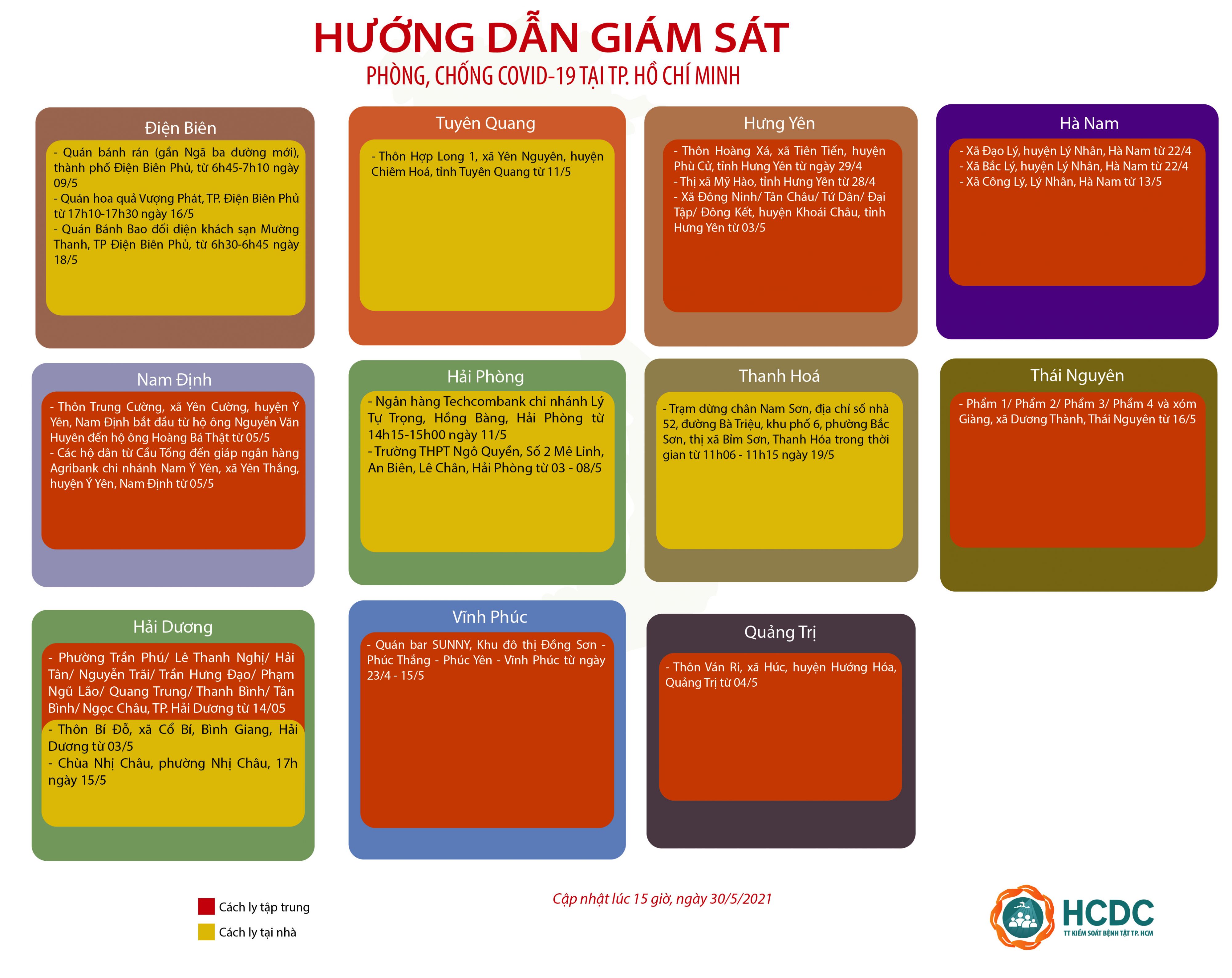 HƯỚNG DẪN GIÁM SÁT PHÒNG, CHỐNG DỊCH COVID-19 TẠI TP. HỒ CHÍ MINH (cập nhật 15 giờ 00 phút, ngày 30/5/2021)
