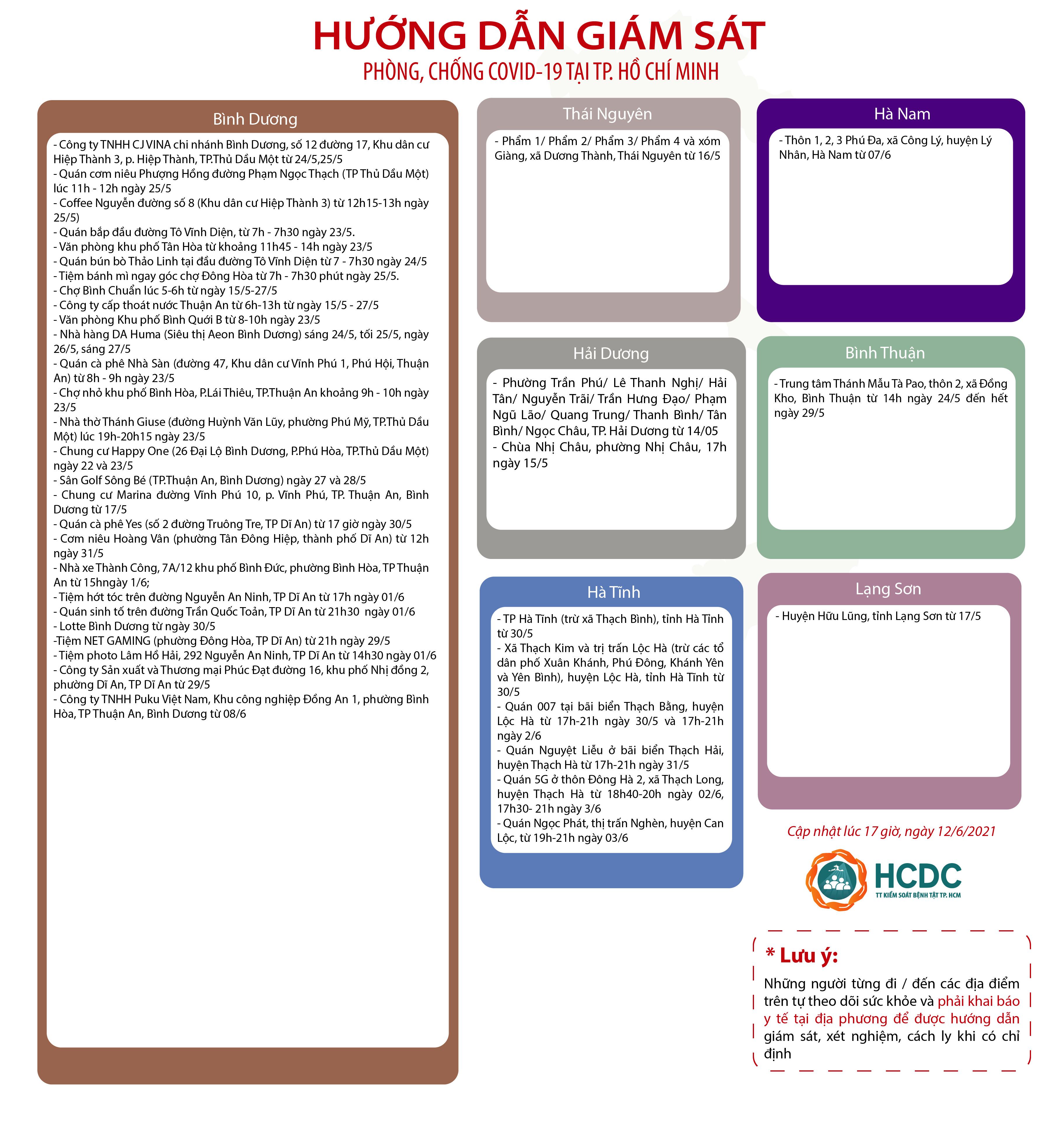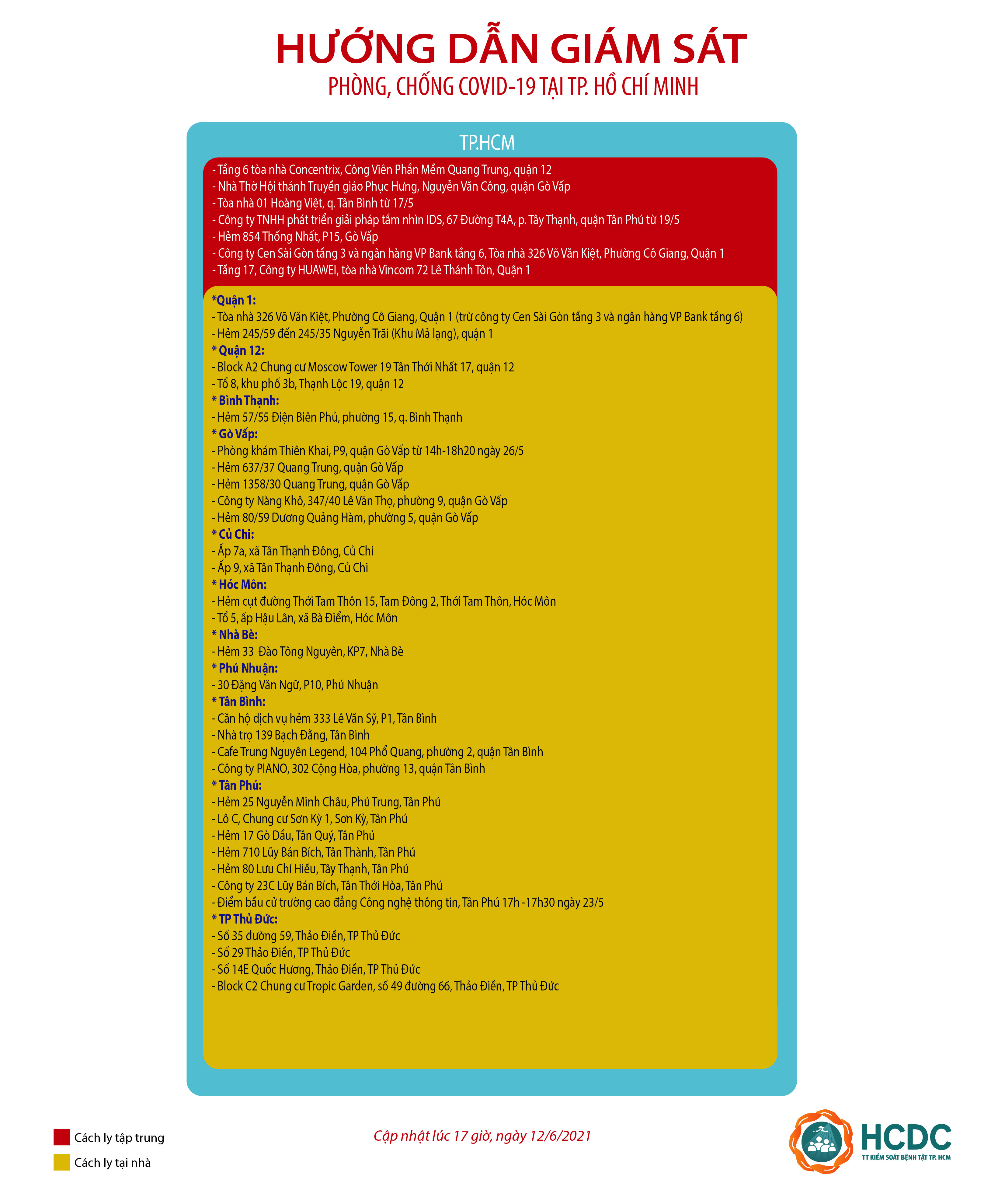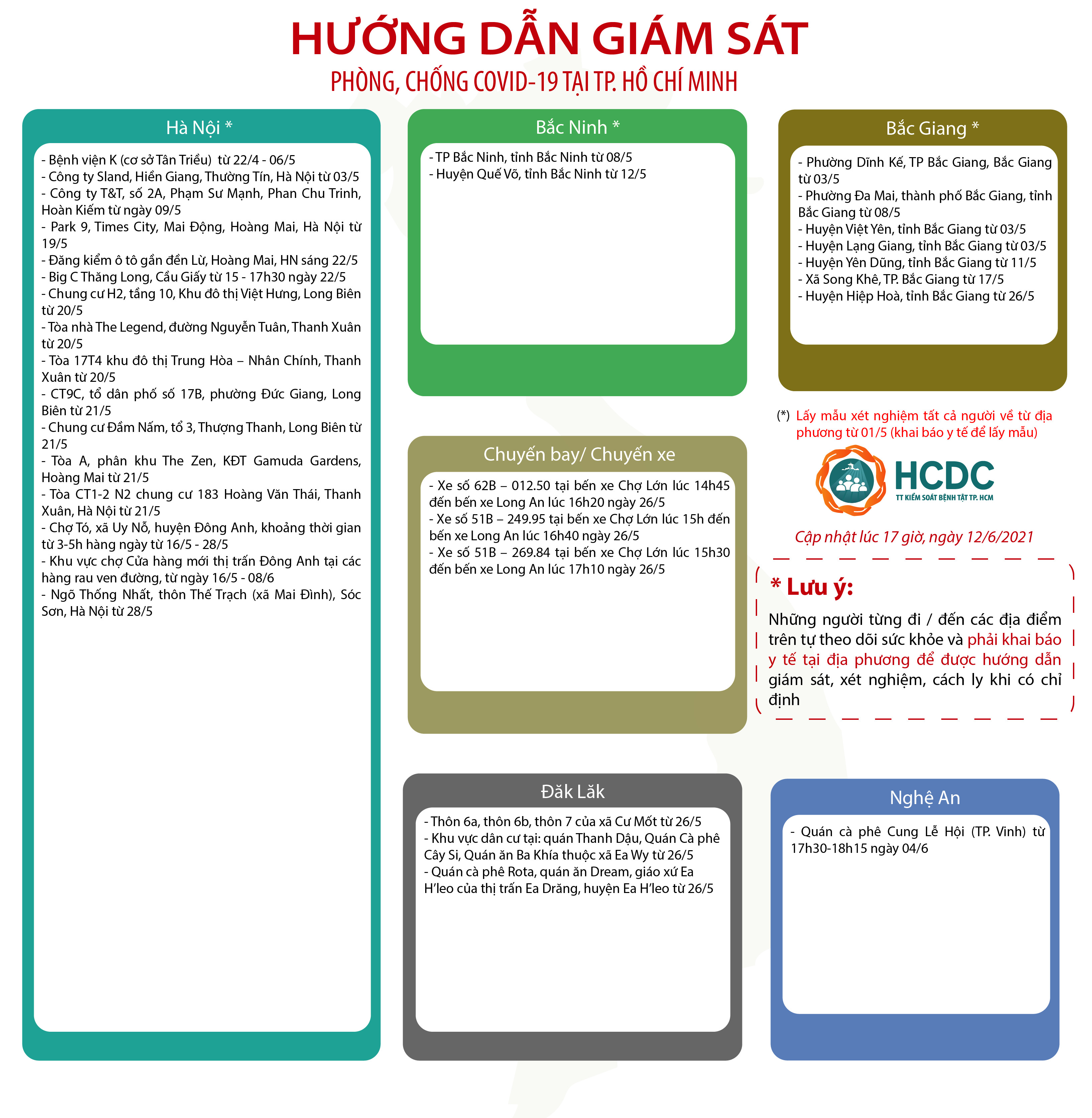 HƯỚNG DẪN GIÁM SÁT PHÒNG, CHỐNG DỊCH COVID-19 TẠI TP. HỒ CHÍ MINH (cập nhật 17 giờ 00 phút, ngày 12/6/2021)