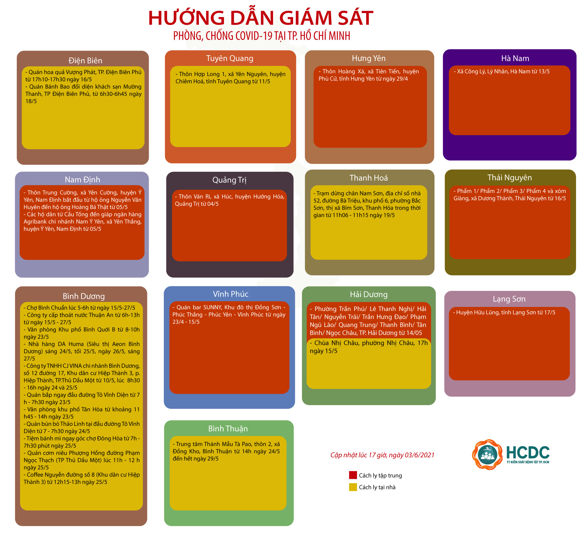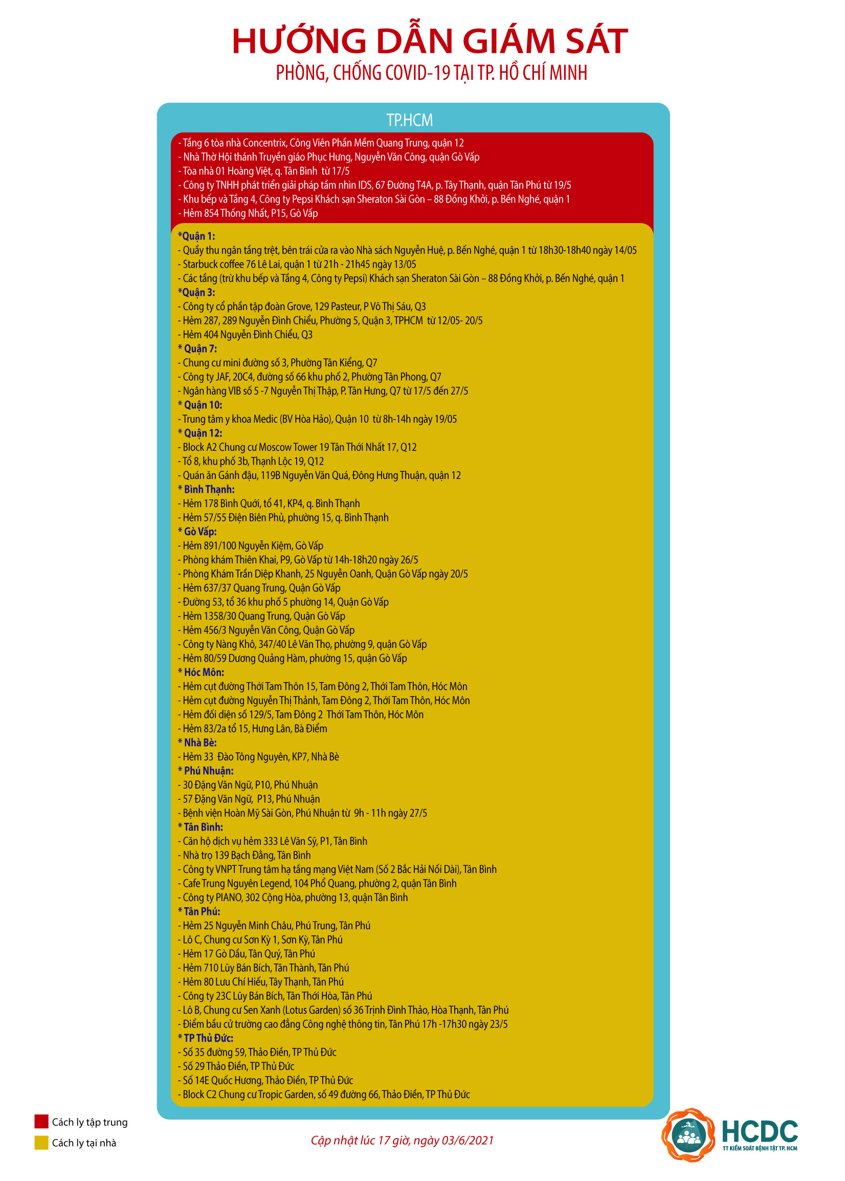 HƯỚNG DẪN GIÁM SÁT PHÒNG, CHỐNG DỊCH COVID-19 TẠI TP. HỒ CHÍ MINH (cập nhật 17 giờ 00 phút, ngày 3/6/2021)