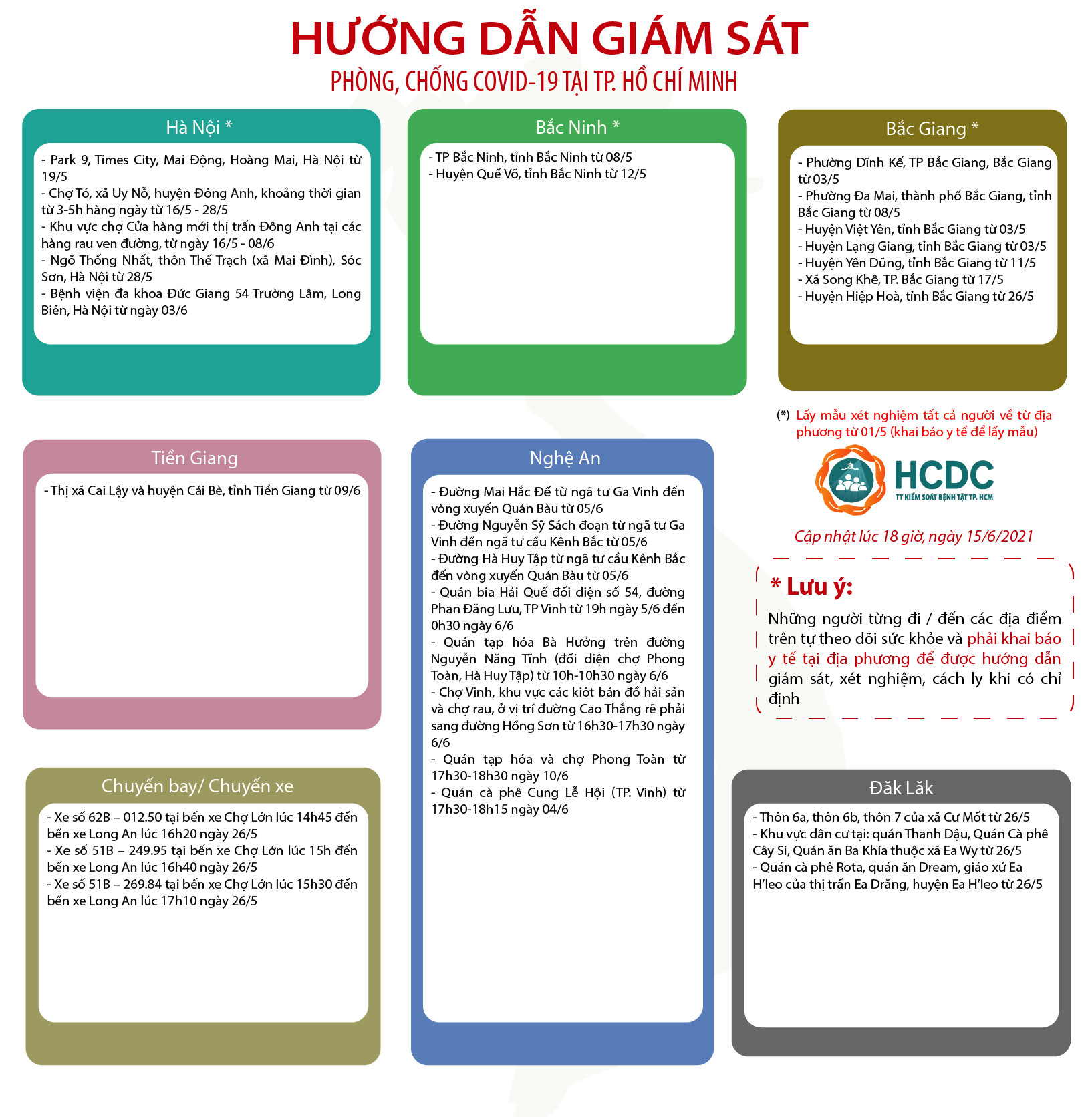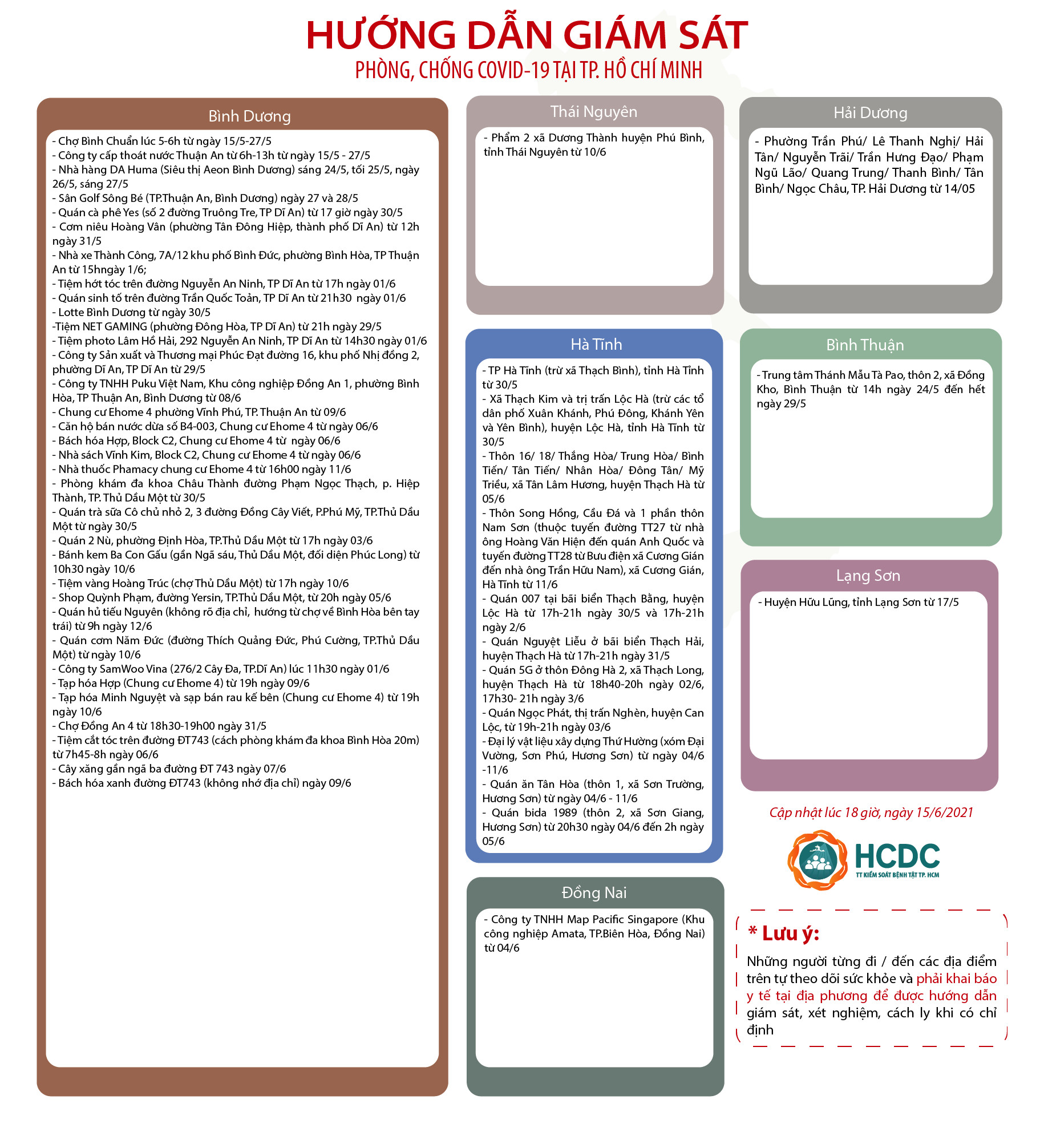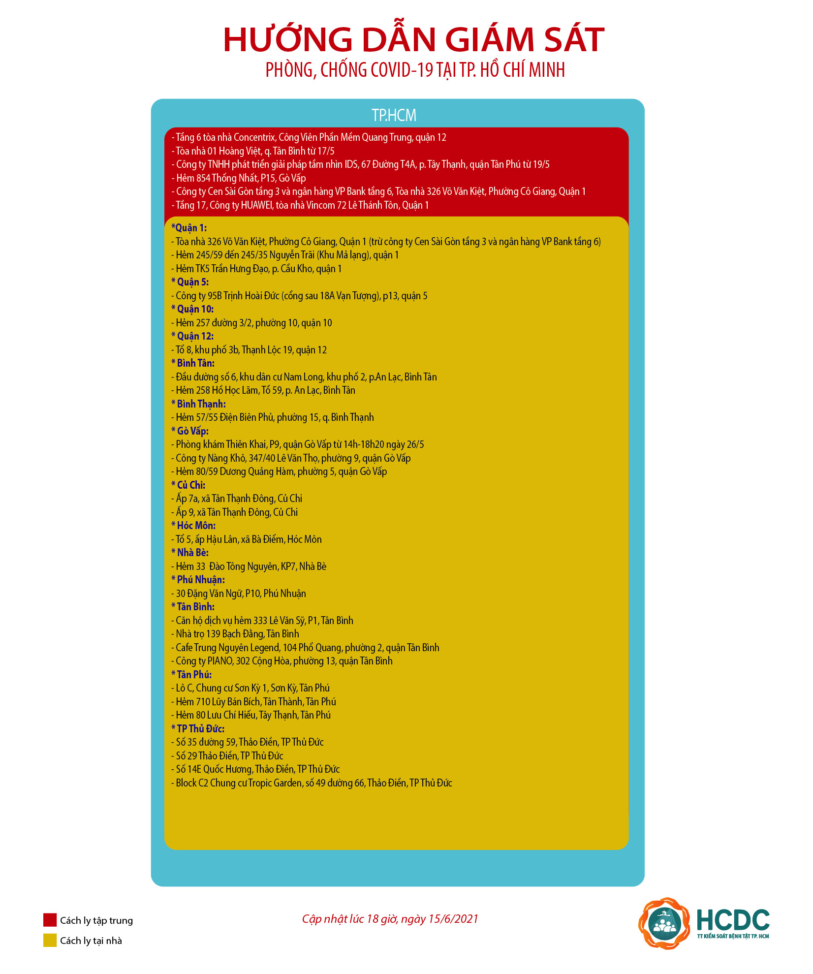 HƯỚNG DẪN GIÁM SÁT PHÒNG, CHỐNG DỊCH COVID-19 TẠI TP. HỒ CHÍ MINH (cập nhật 18 giờ 00 phút, ngày 15/6/2021)