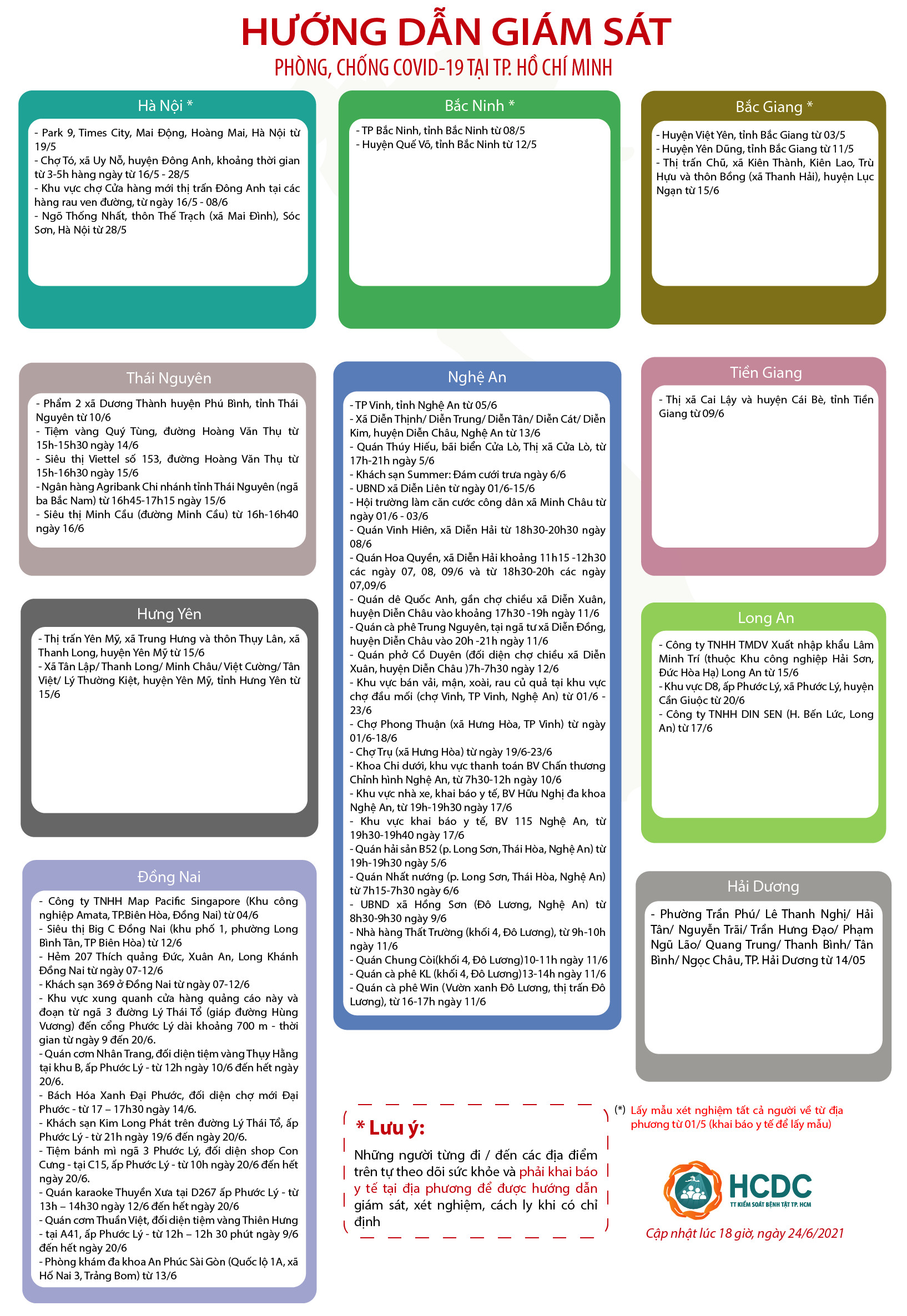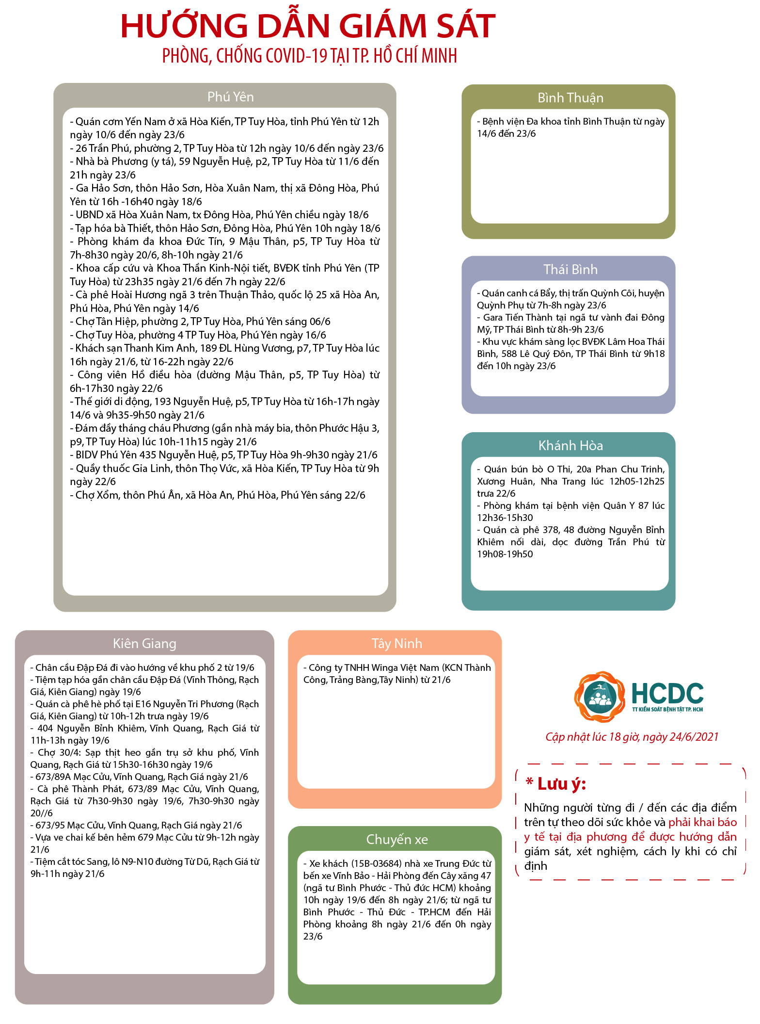 HƯỚNG DẪN GIÁM SÁT PHÒNG, CHỐNG DỊCH COVID-19 TẠI TP. HỒ CHÍ MINH (cập nhật 18 giờ 00 phút, ngày 24/6/2021)