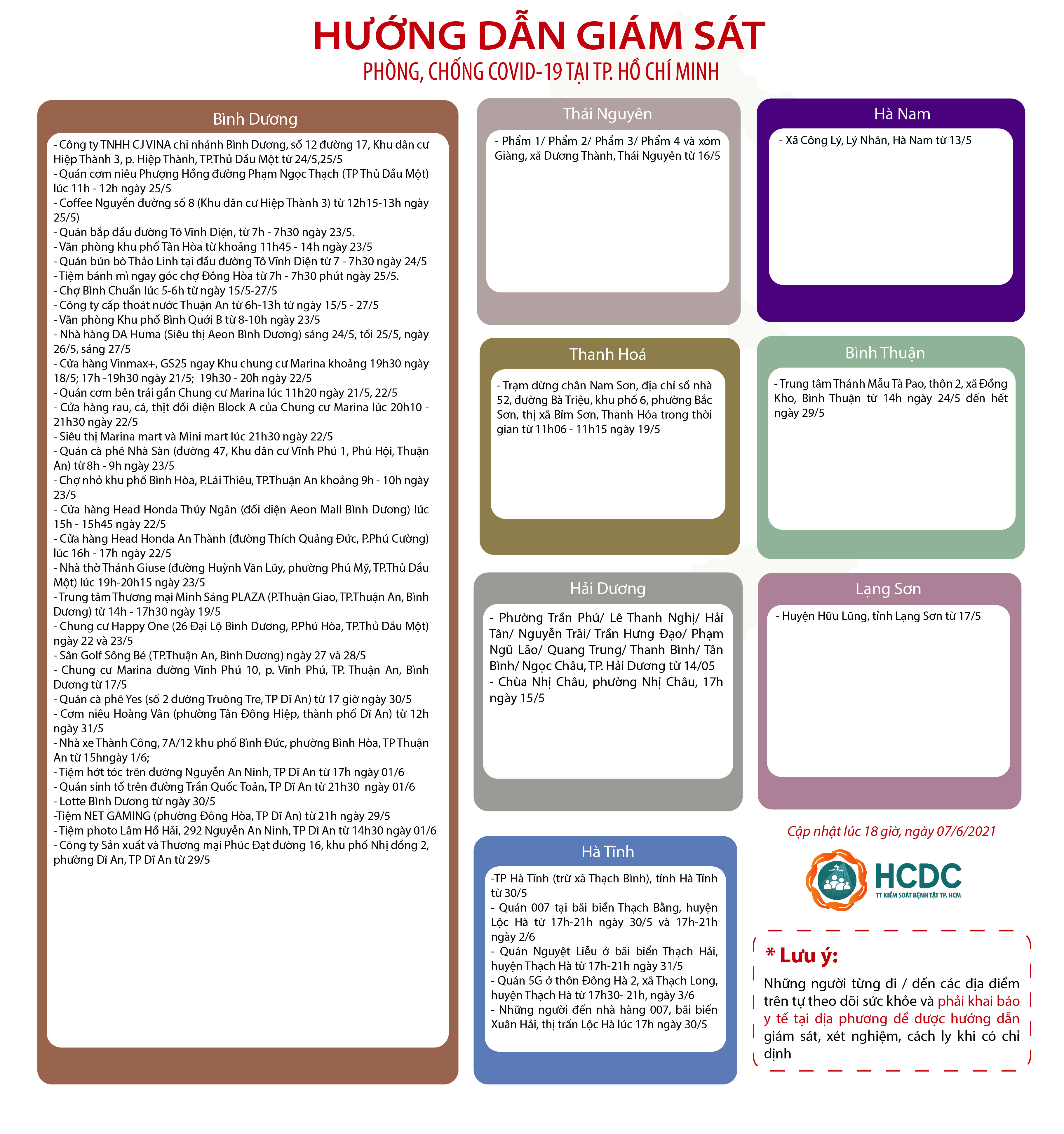 HƯỚNG DẪN GIÁM SÁT PHÒNG, CHỐNG DỊCH COVID-19 TẠI TP. HỒ CHÍ MINH (cập nhật 18 giờ 00 phút, ngày 7/6/2021)