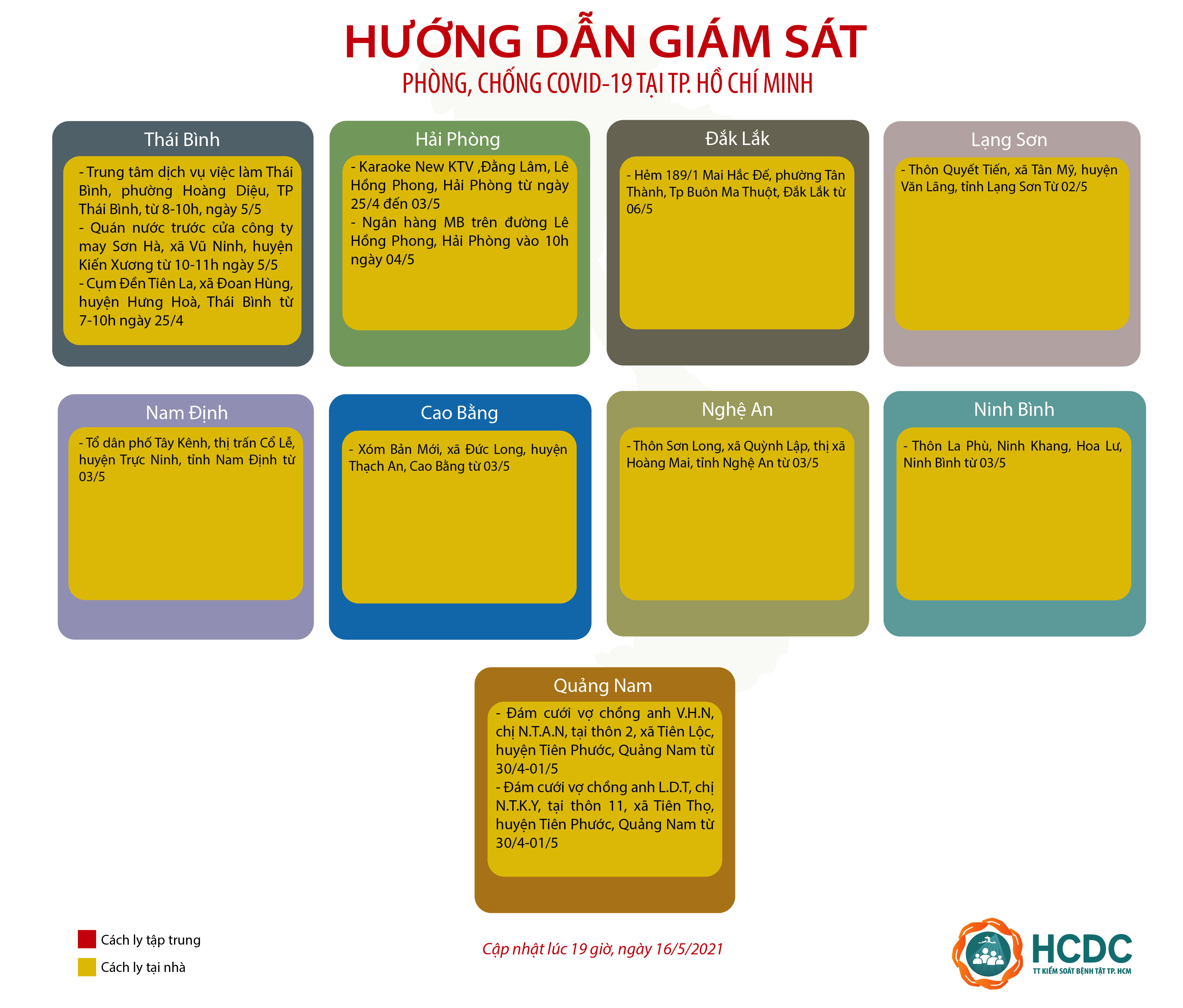 HƯỚNG DẪN GIÁM SÁT PHÒNG, CHỐNG DỊCH COVID-19 TẠI TP. HỒ CHÍ MINH (cập nhật 19 giờ 00 phút, ngày 16/5/2021)