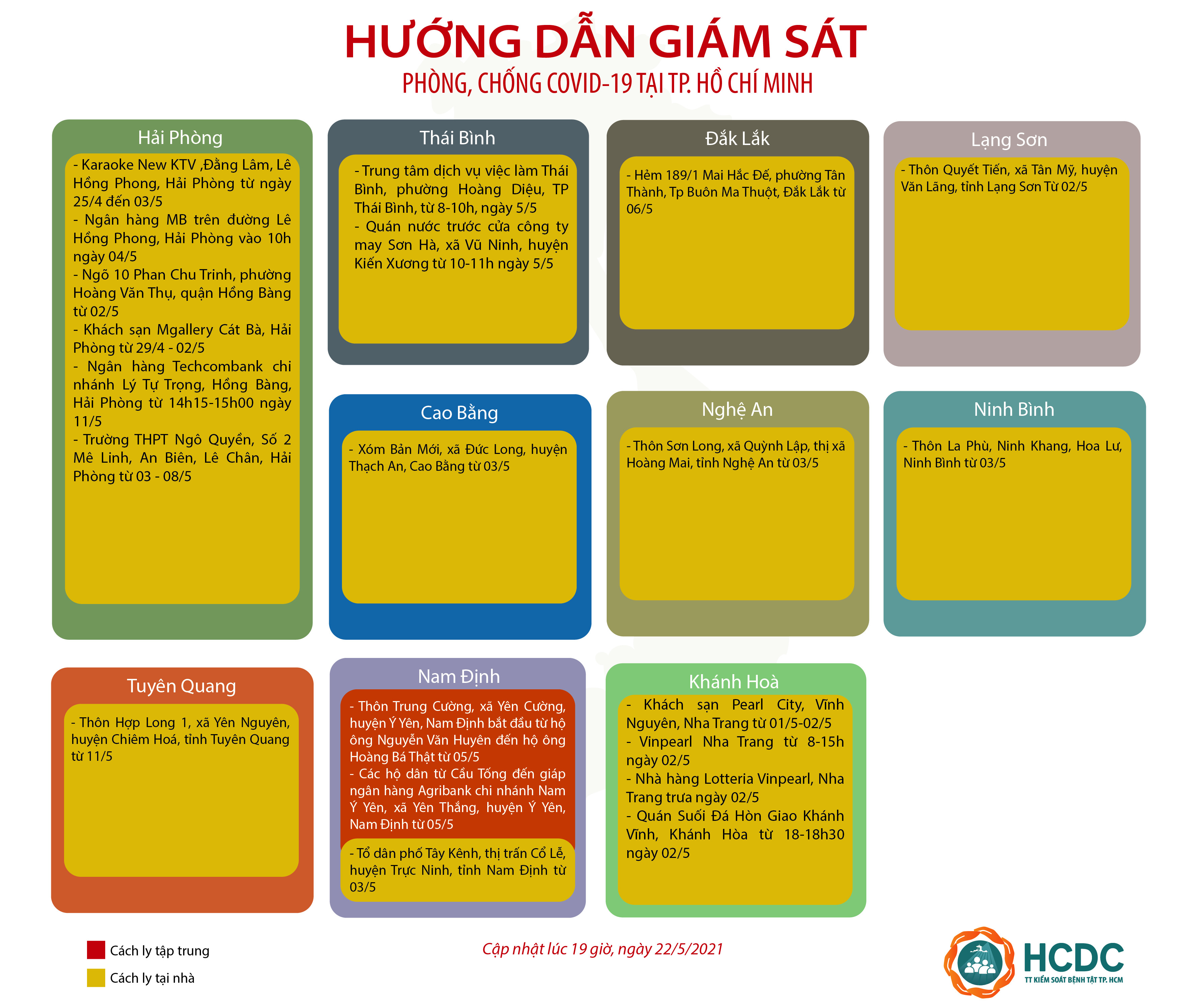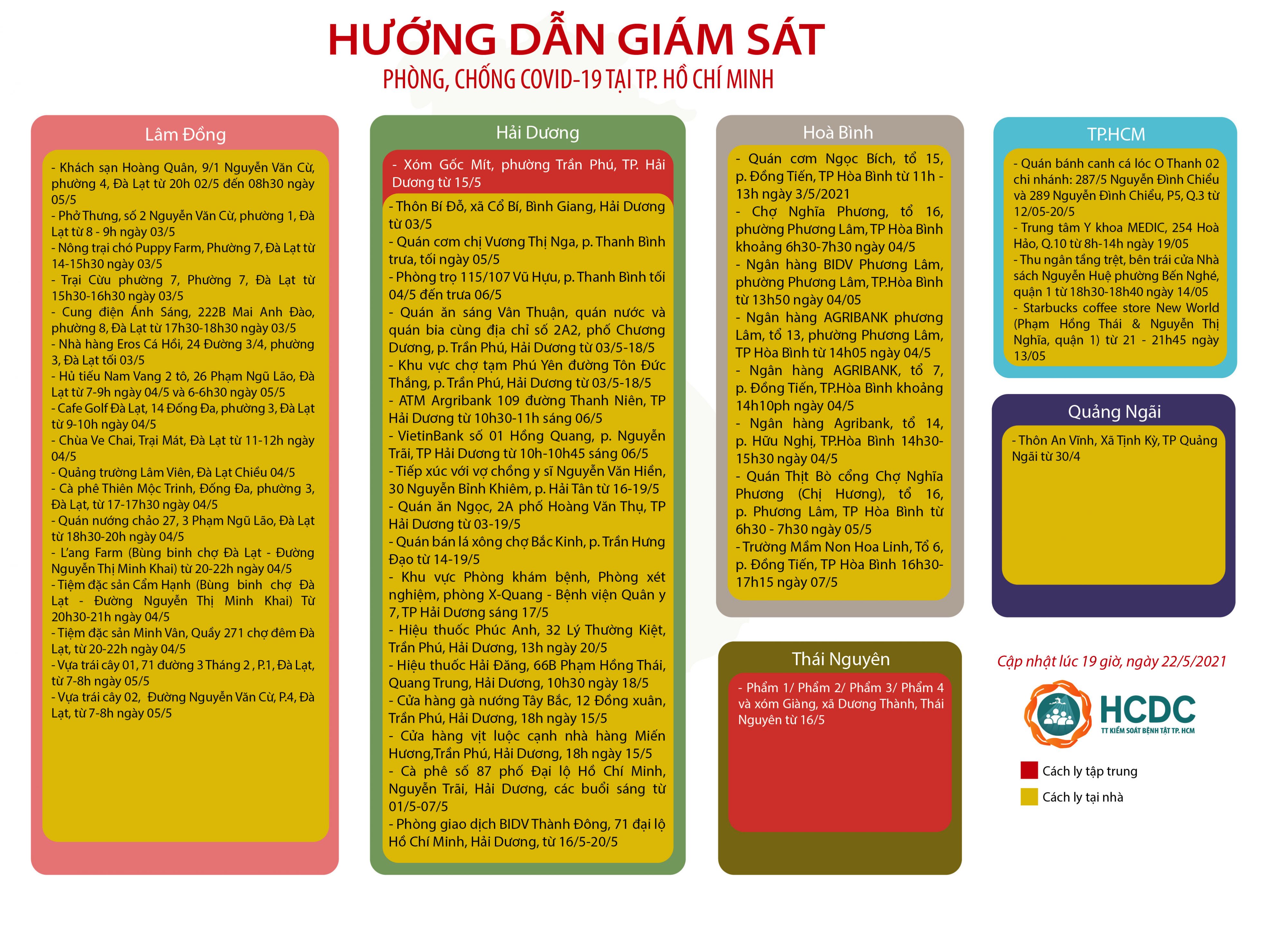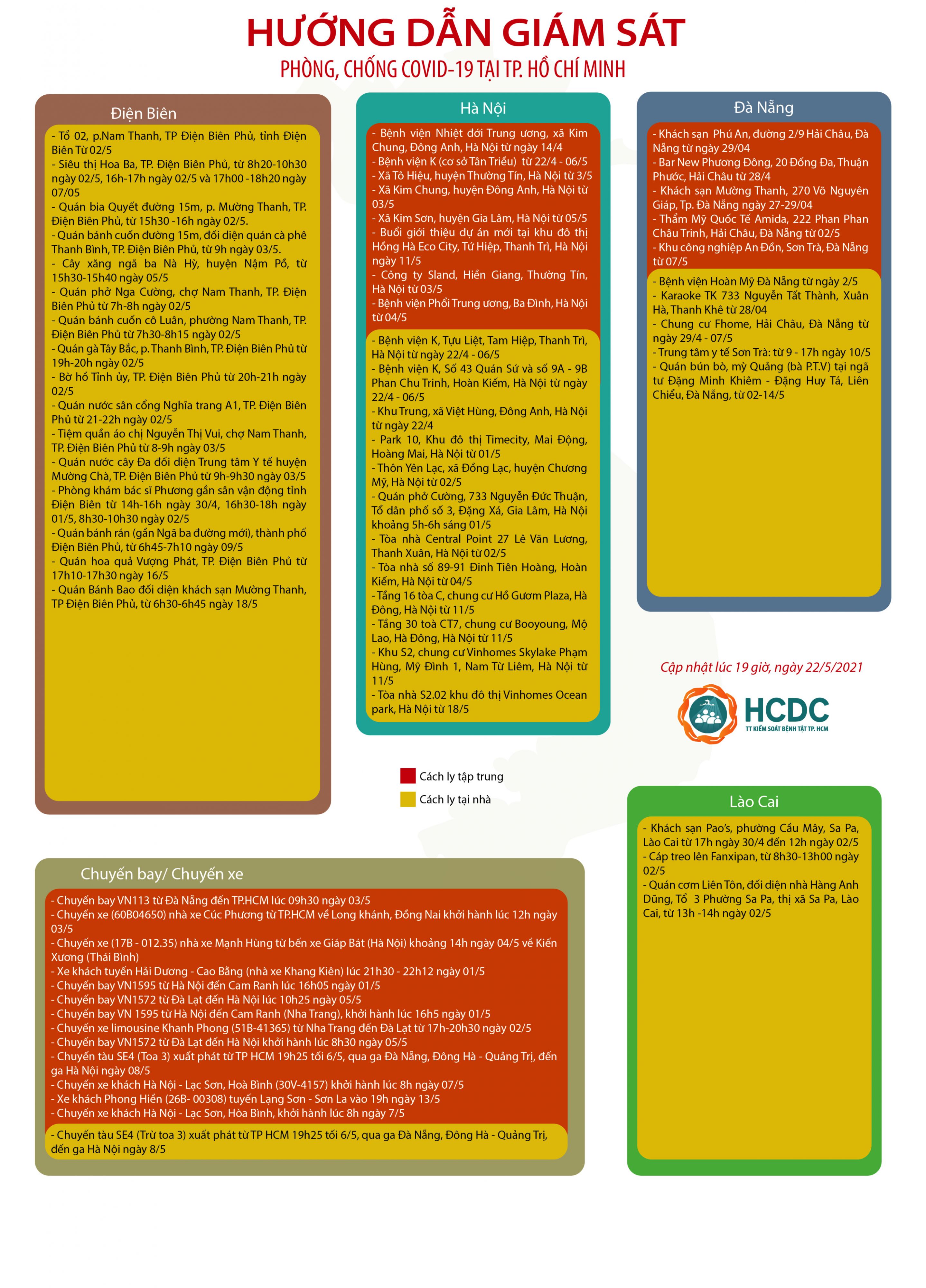 HƯỚNG DẪN GIÁM SÁT PHÒNG, CHỐNG DỊCH COVID-19 TẠI TP. HỒ CHÍ MINH (cập nhật 19 giờ 00 phút, ngày 22/5/2021)