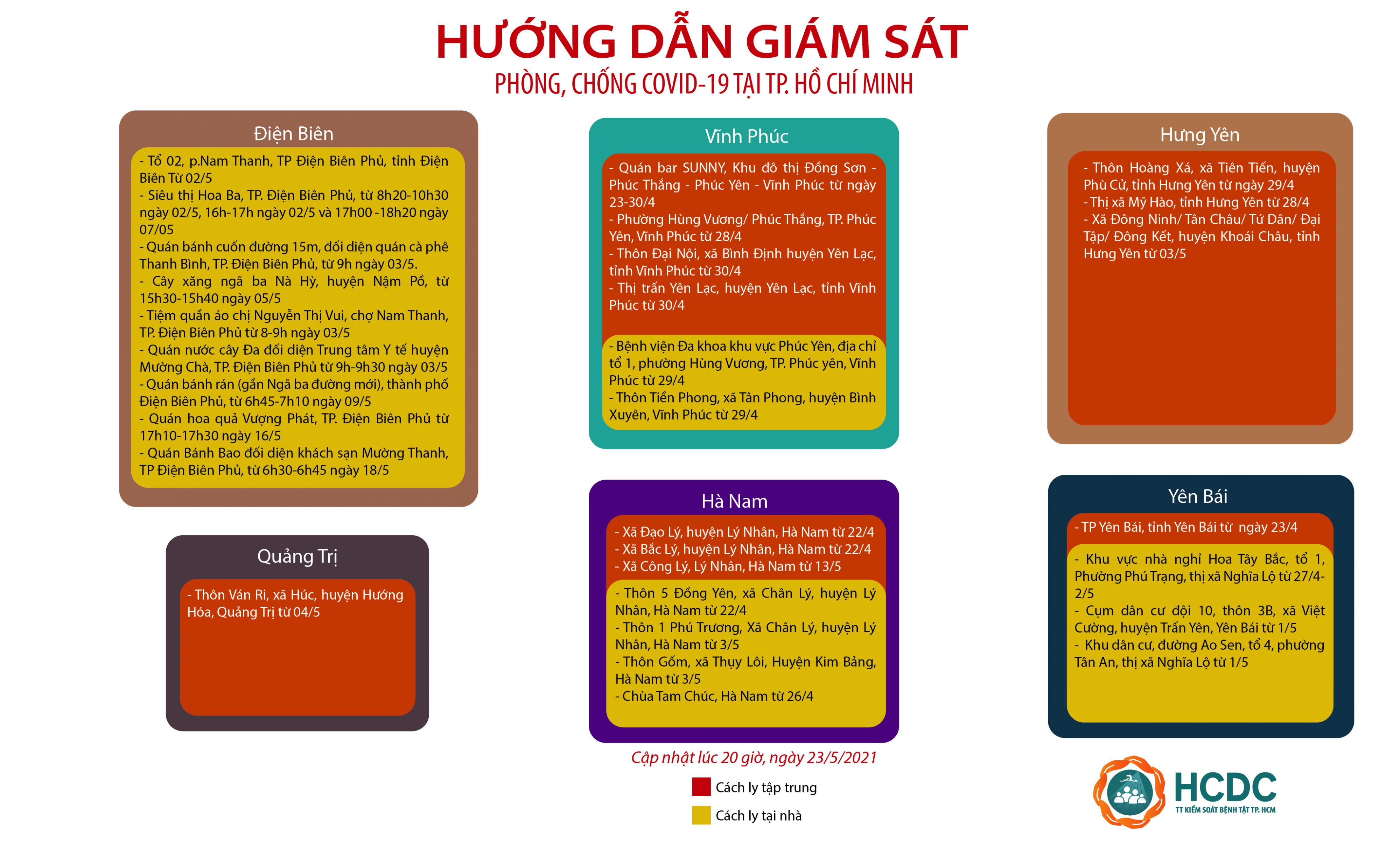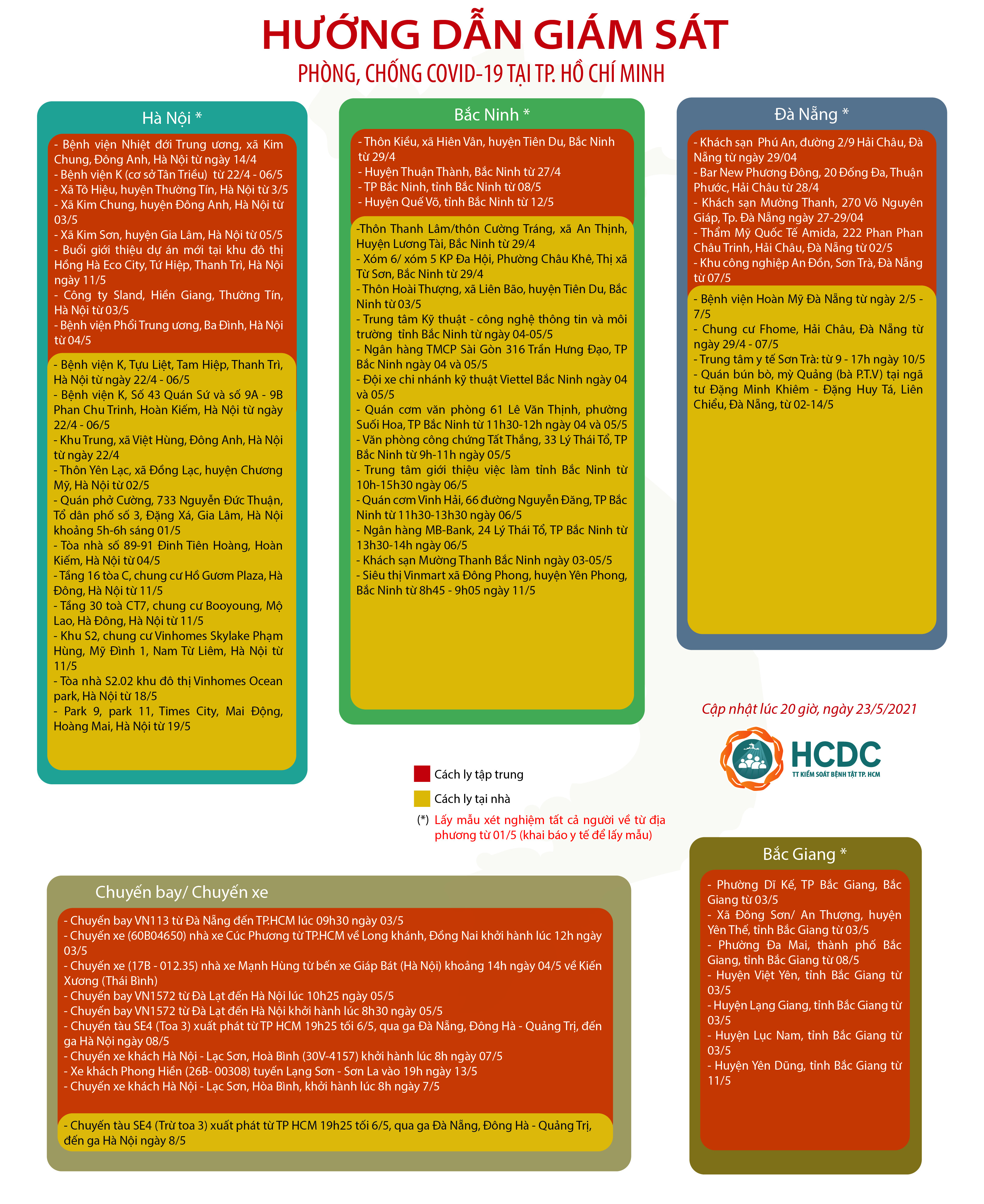 HƯỚNG DẪN GIÁM SÁT PHÒNG, CHỐNG DỊCH COVID-19 TẠI TP. HỒ CHÍ MINH (cập nhật 20 giờ 00 phút, ngày 23/5/2021)