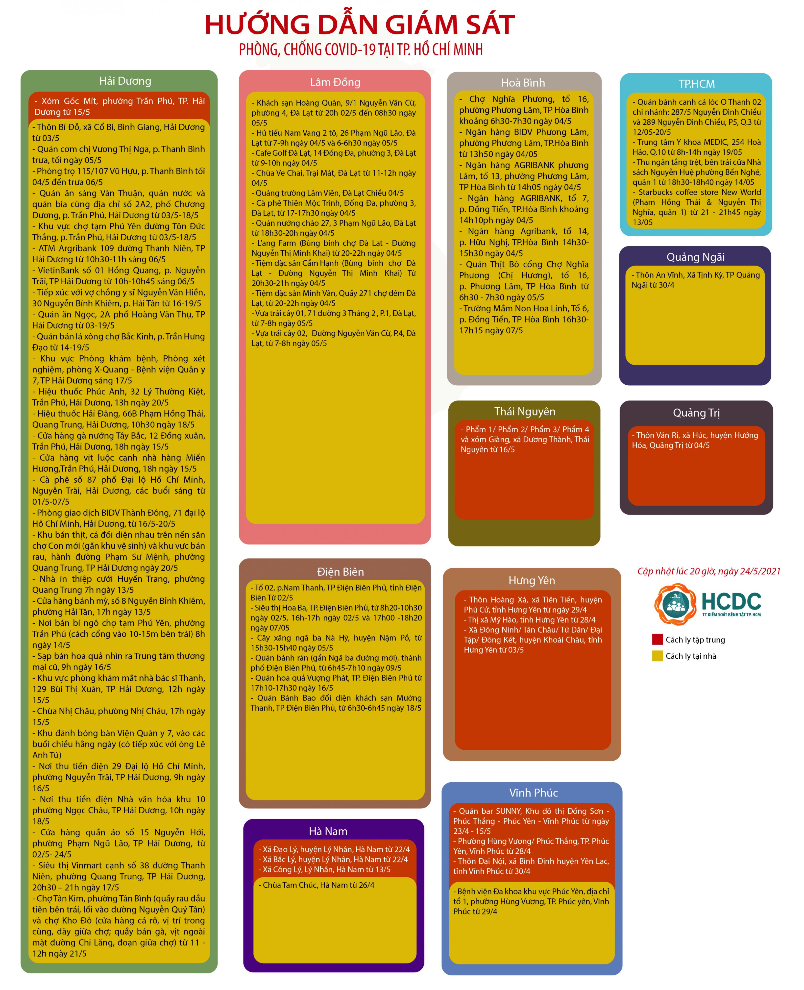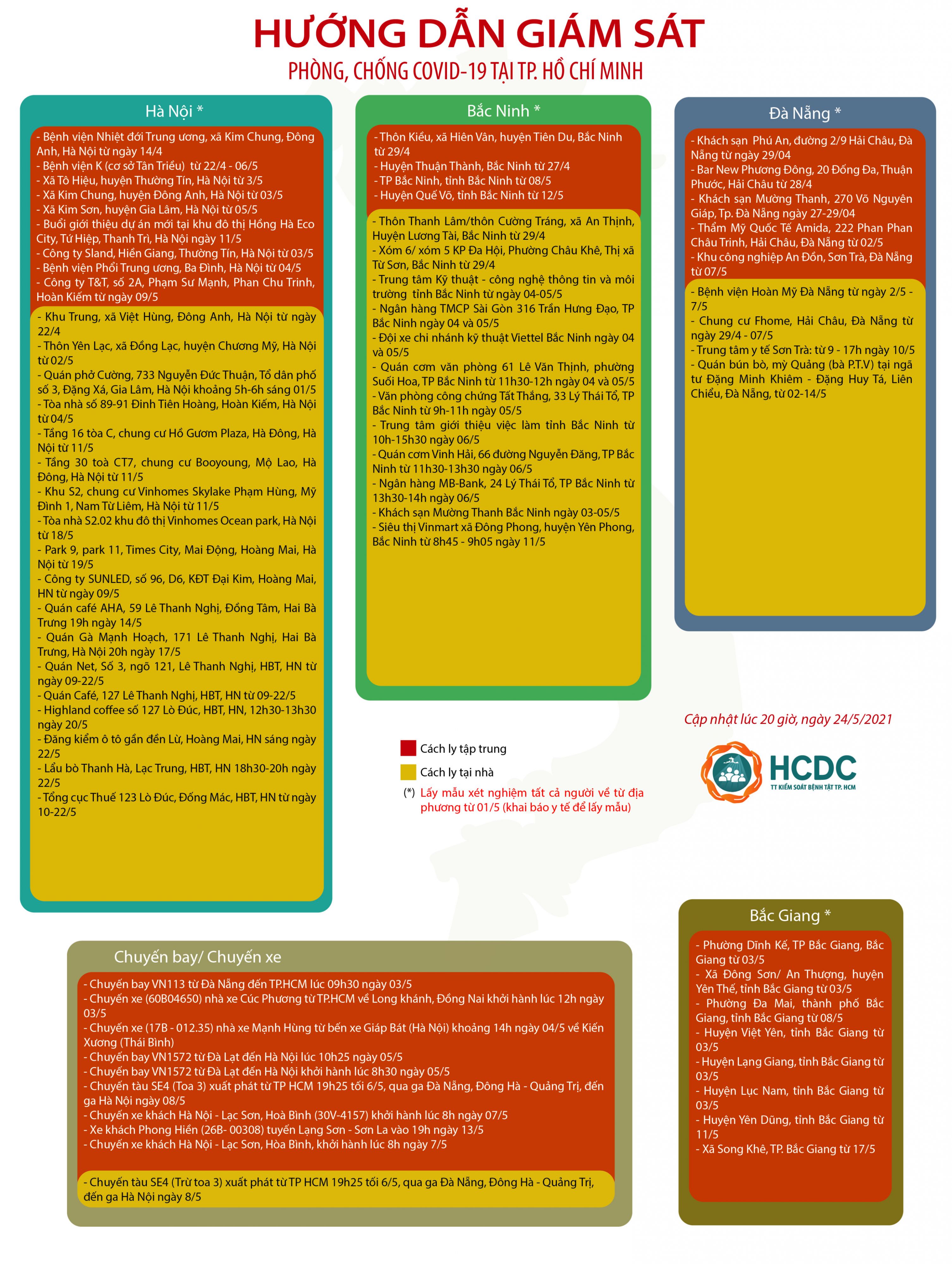 HƯỚNG DẪN GIÁM SÁT PHÒNG, CHỐNG DỊCH COVID-19 TẠI TP. HỒ CHÍ MINH (cập nhật 20 giờ 00 phút, ngày 24/5/2021)