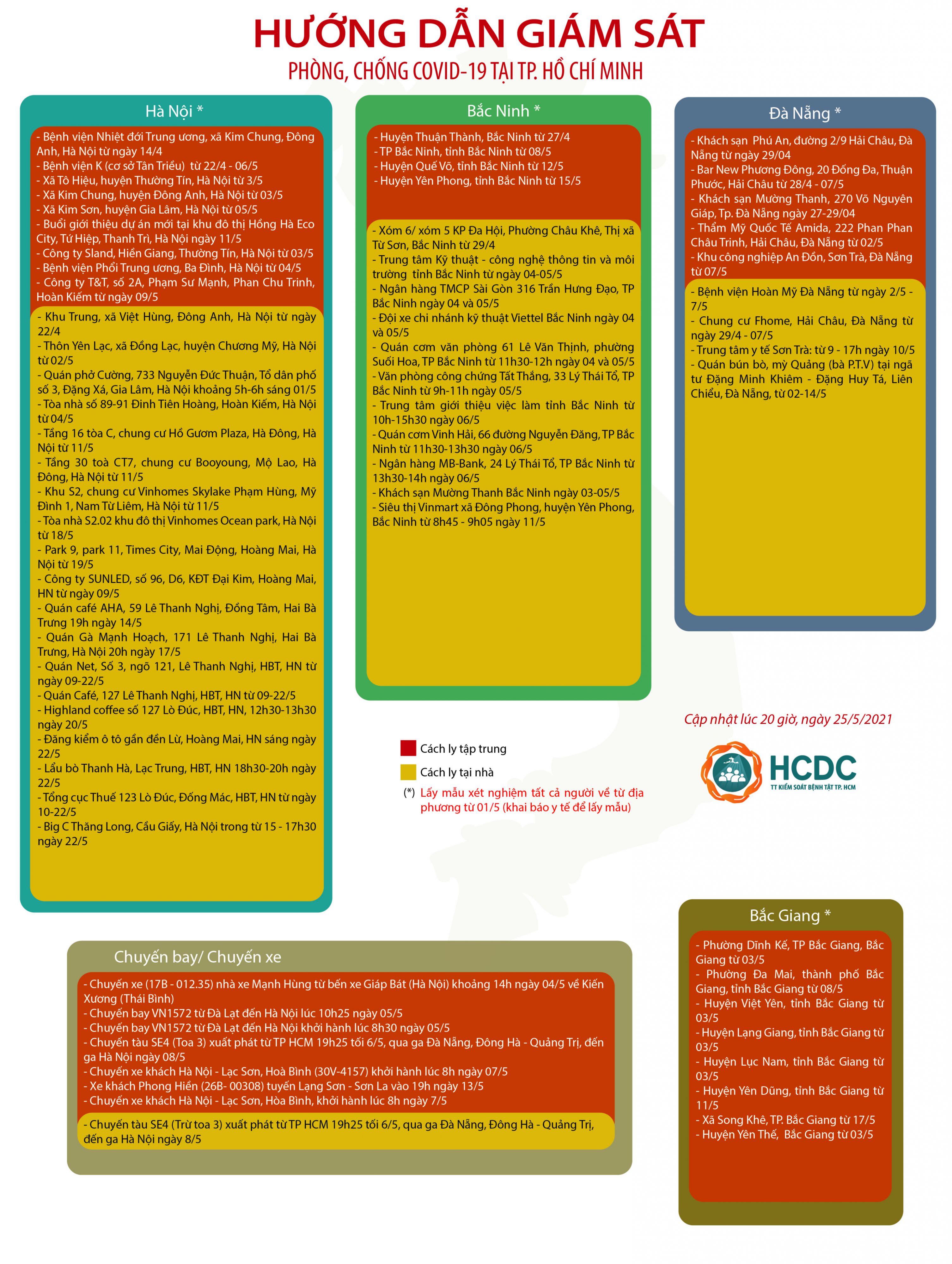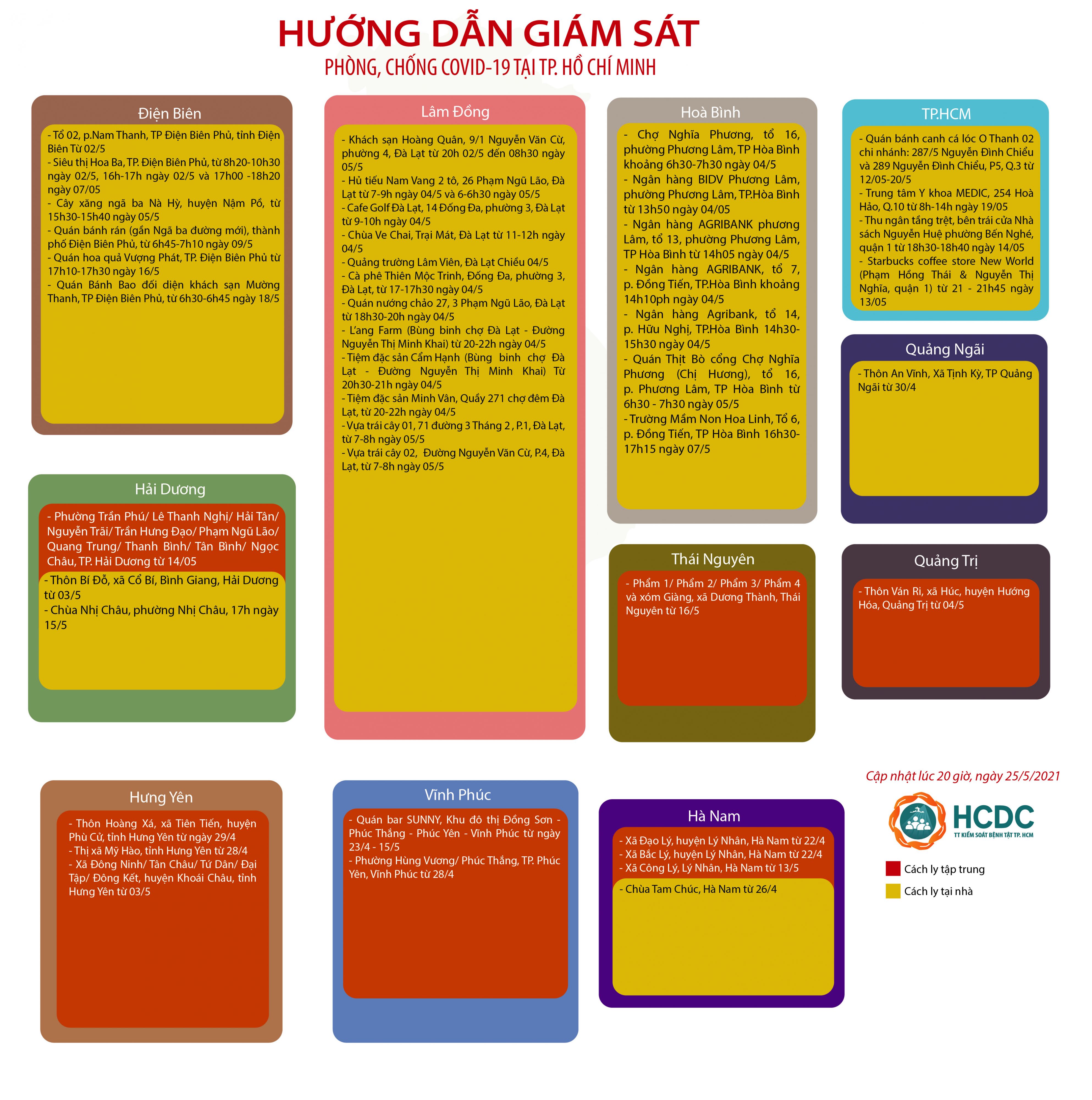 HƯỚNG DẪN GIÁM SÁT PHÒNG, CHỐNG DỊCH COVID-19 TẠI TP. HỒ CHÍ MINH (cập nhật 20 giờ 00 phút, ngày 25/5/2021)