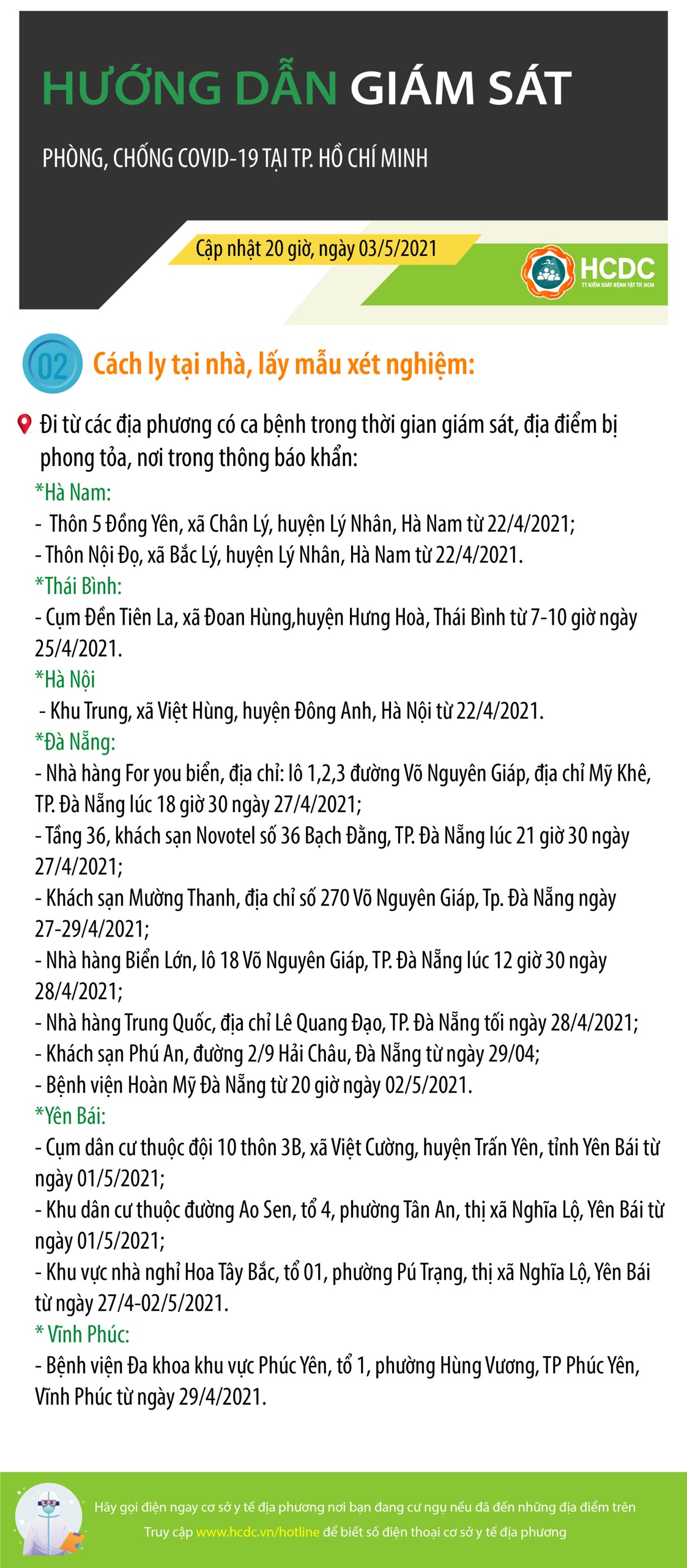 HƯỚNG DẪN GIÁM SÁT PHÒNG, CHỐNG DỊCH COVID-19 TẠI TP. HỒ CHÍ MINH (cập nhật 20 giờ, ngày 03/5/2021)