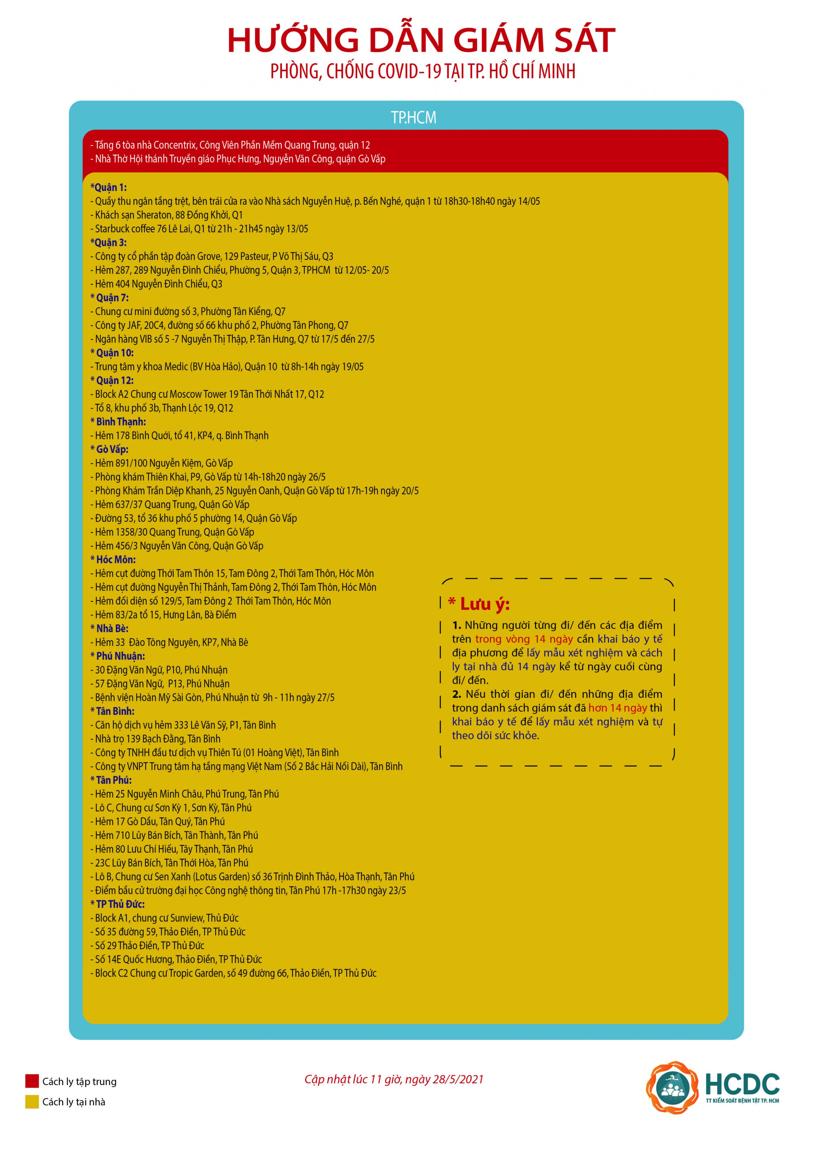 HƯỚNG DẪN GIÁM SÁT PHÒNG, CHỐNG DỊCH COVID-19 TẠI TP. HỒ CHÍ MINH (cập nhật 22 giờ 00 phút, ngày 28/5/2021)