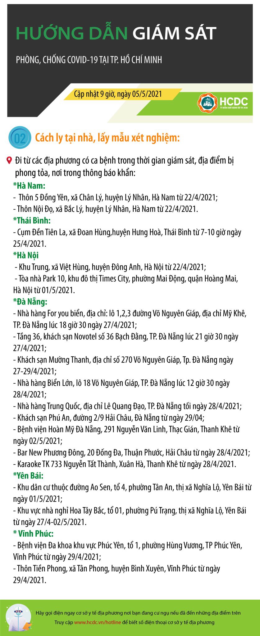 HƯỚNG DẪN GIÁM SÁT PHÒNG, CHỐNG DỊCH COVID-19 TẠI TP. HỒ CHÍ MINH (cập nhật 9 giờ 00 phút, ngày 05/5/2021)