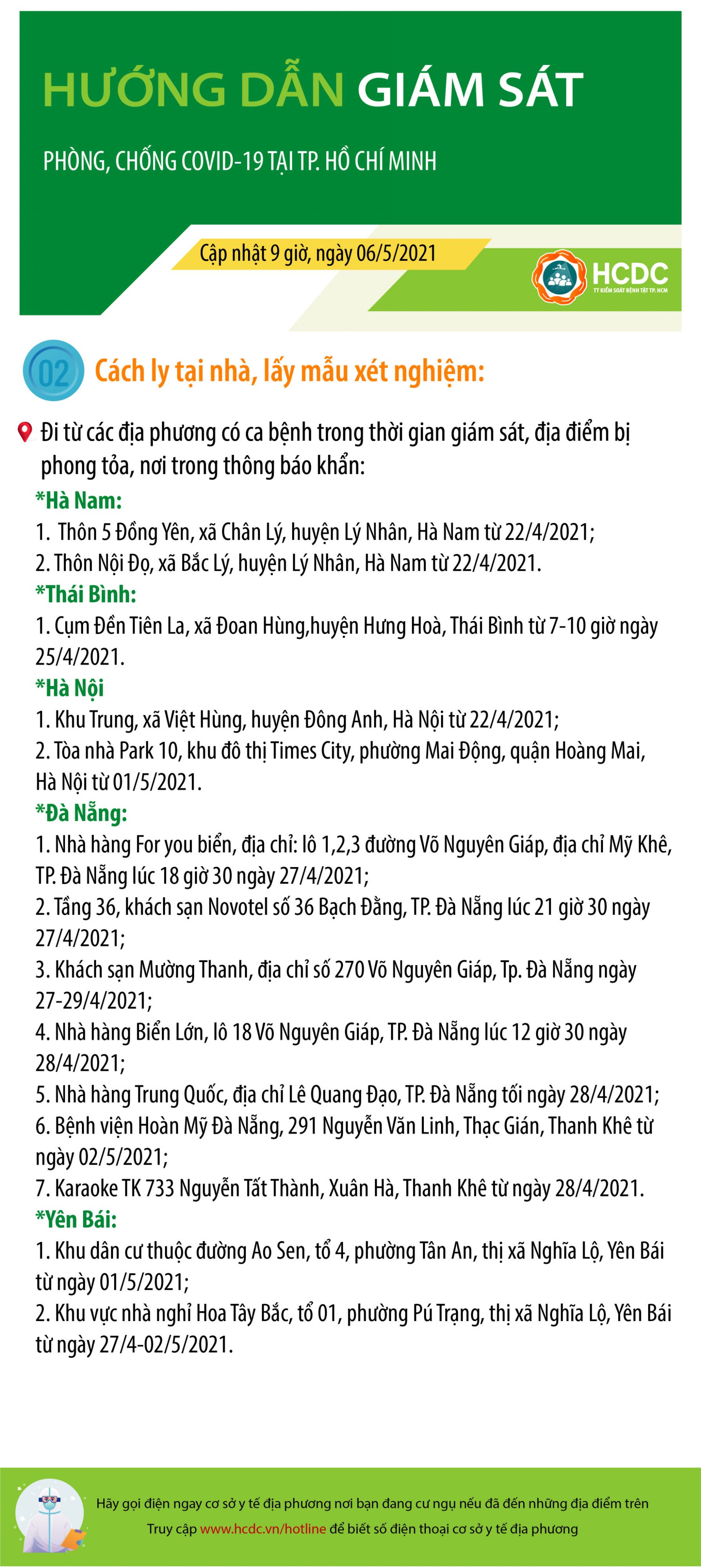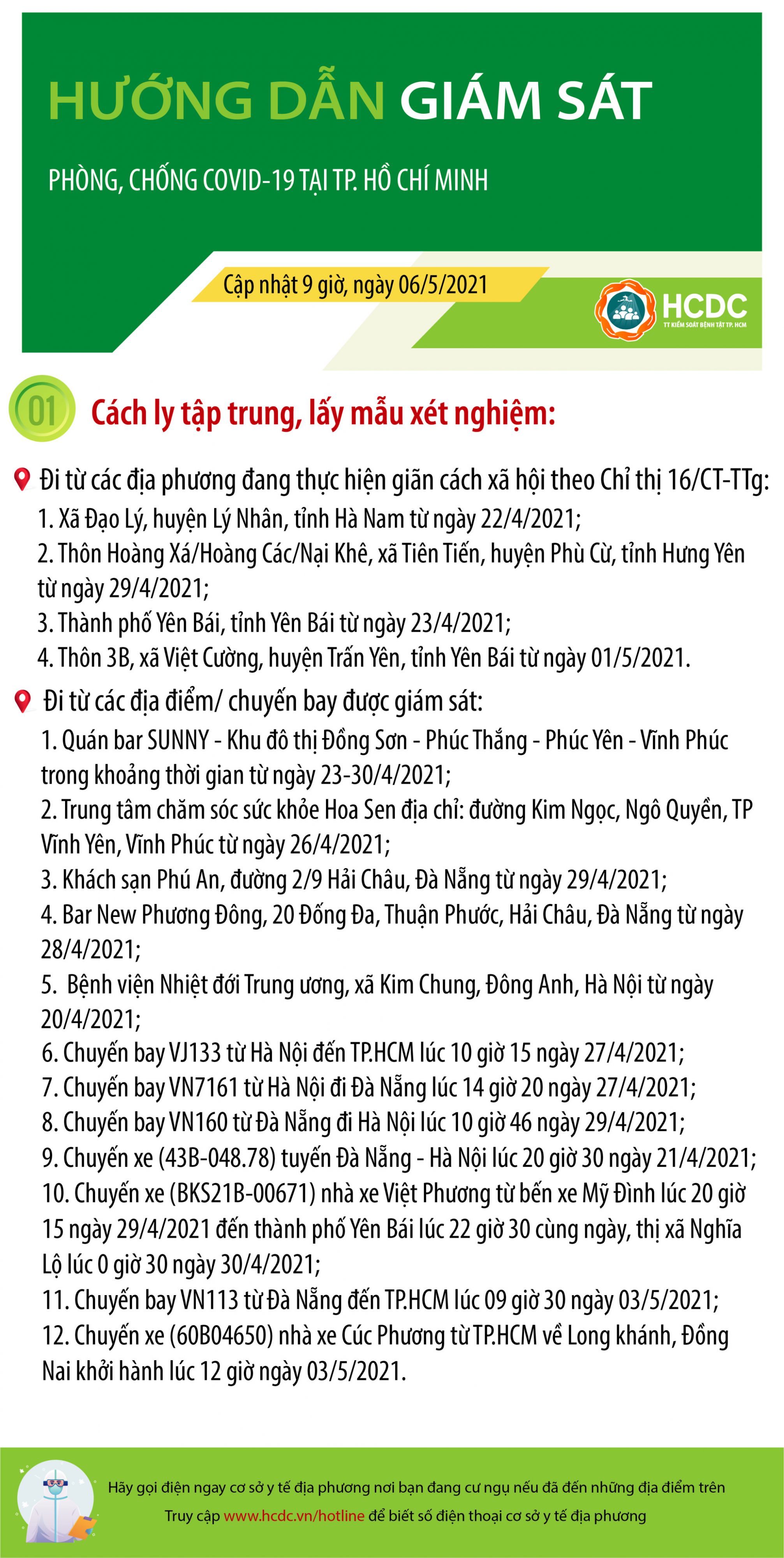HƯỚNG DẪN GIÁM SÁT PHÒNG, CHỐNG DỊCH COVID-19 TẠI TP. HỒ CHÍ MINH (cập nhật 9 giờ 00 phút, ngày 06/5/2021)