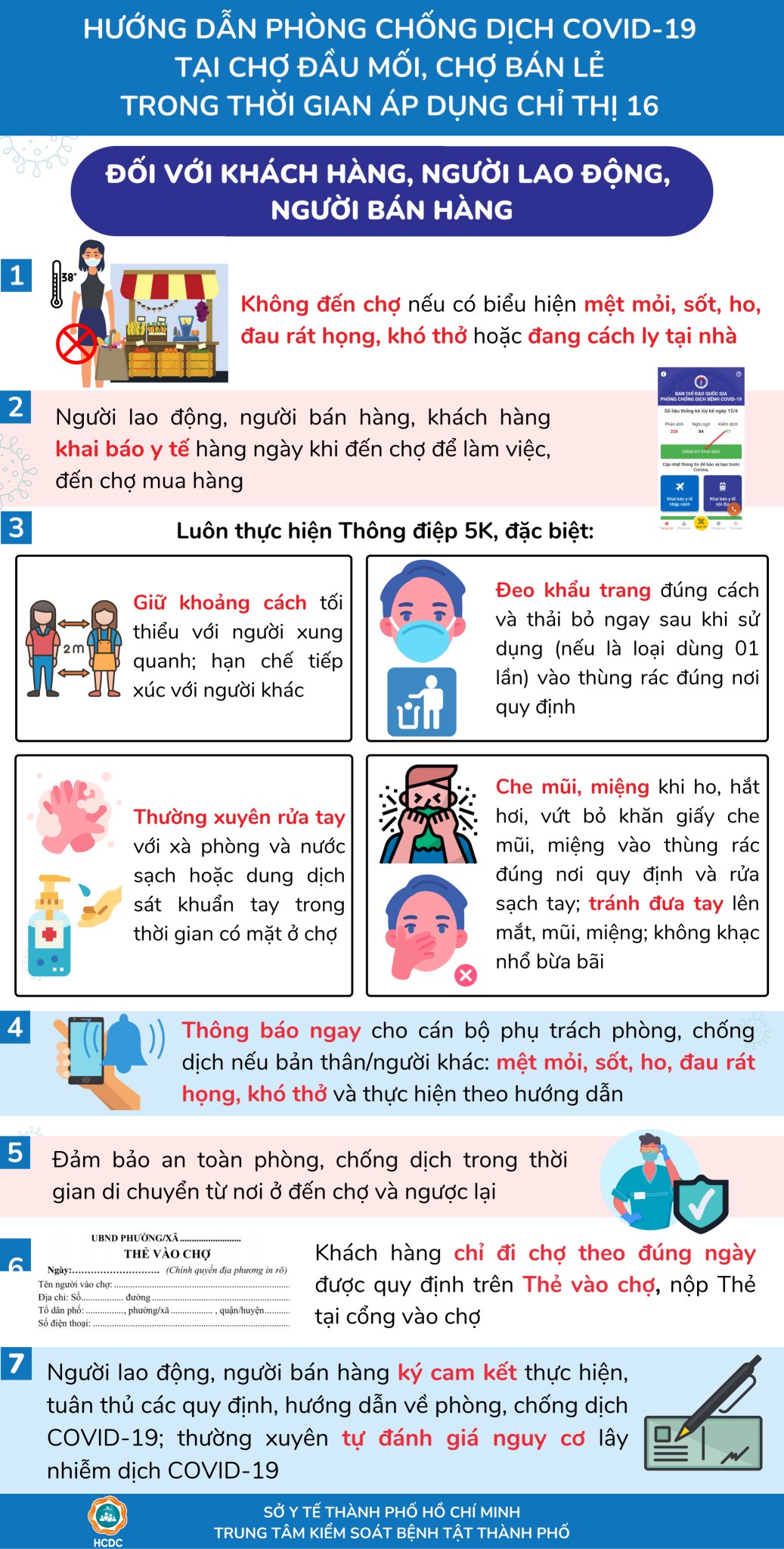 Hướng dẫn phòng chống dịch COVID-19 tại chợ đầu mối, chợ bán lẻ trong thời gian áp dụng Chỉ thị 16 của Thủ tướng Chính phủ